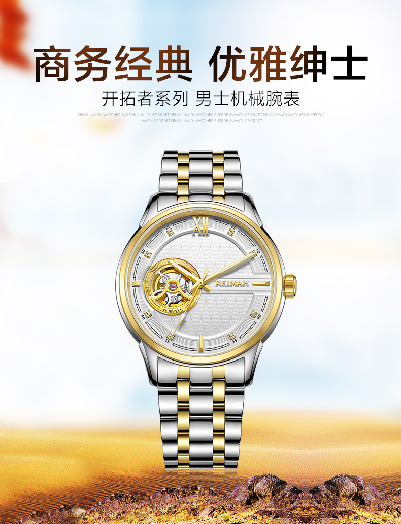 雷迈:新款镂空钢带男士全自动机械表8108M