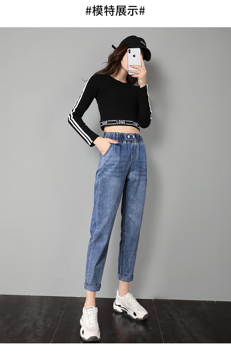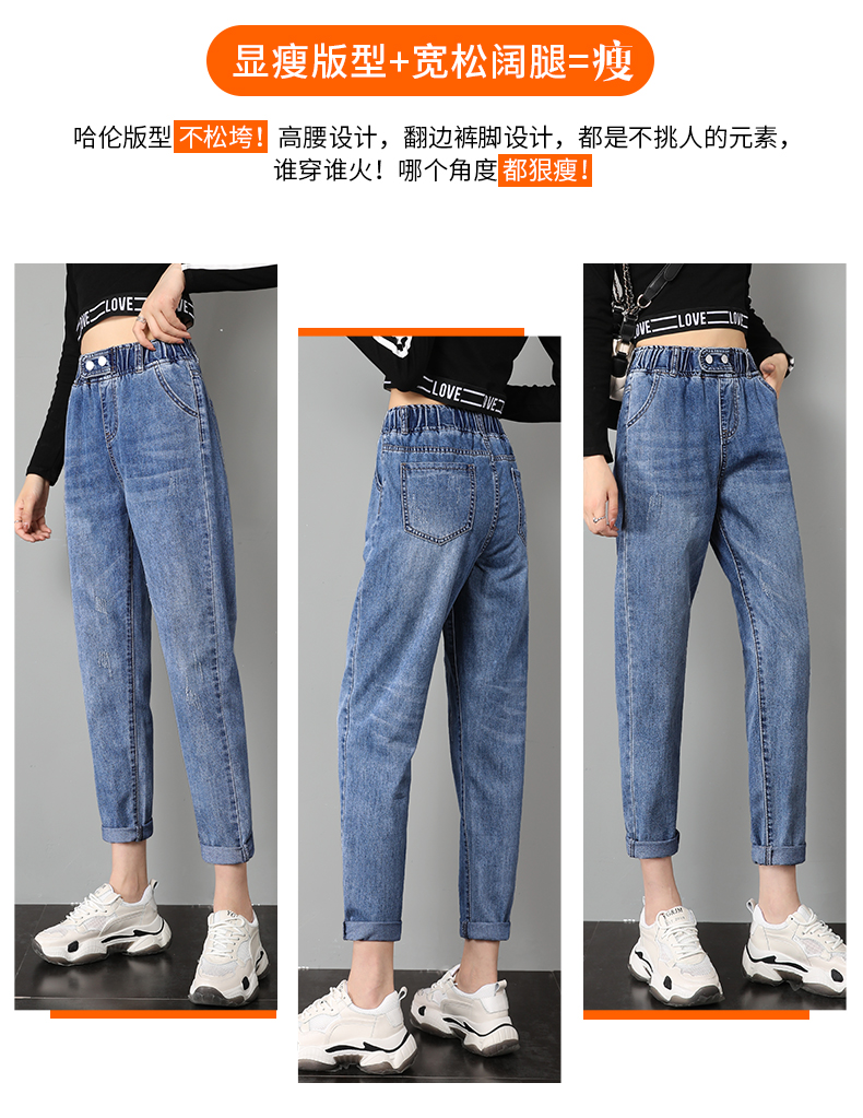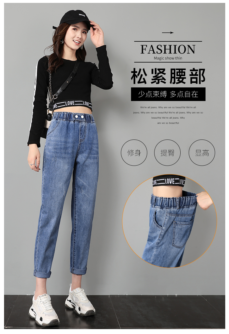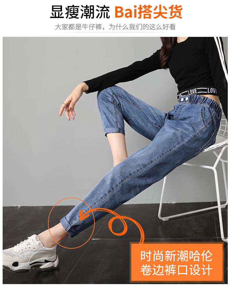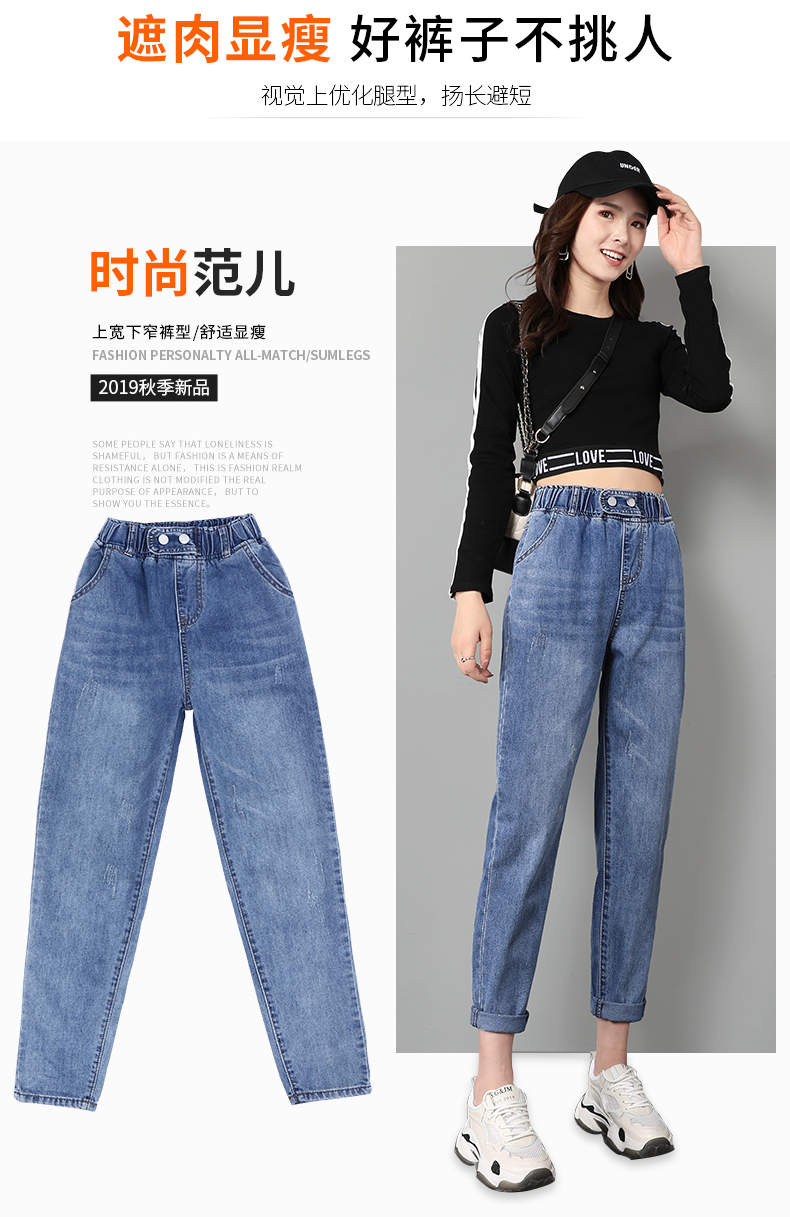 商品名称:筱环牛仔裤女2019新款秋季韩版修身显瘦破洞高腰紧身九分弹力显瘦小脚铅笔长裤子牛仔裤阔腿裤女 图片色 L