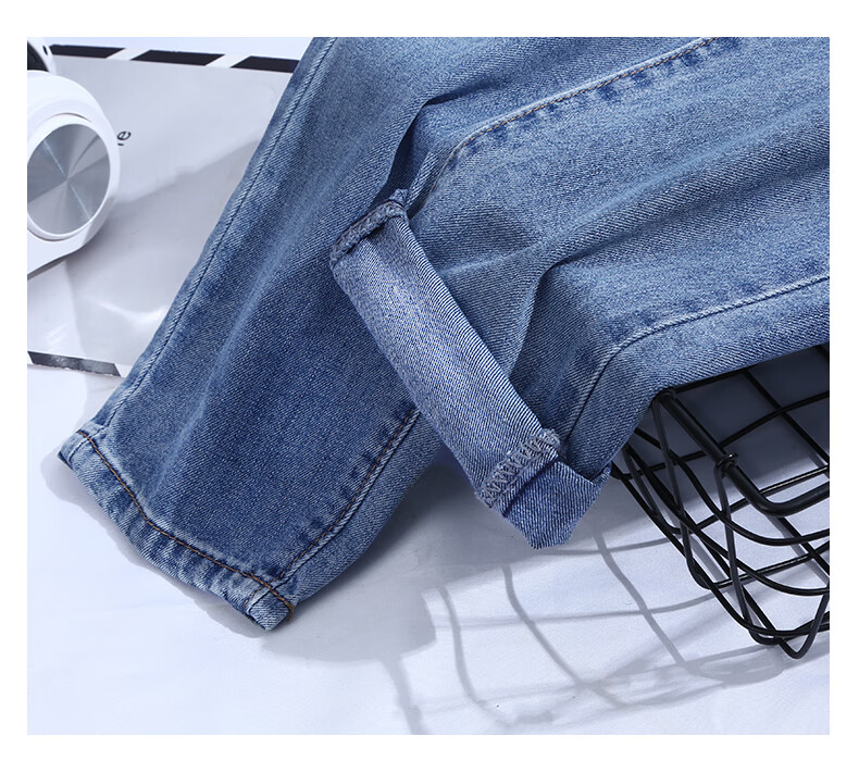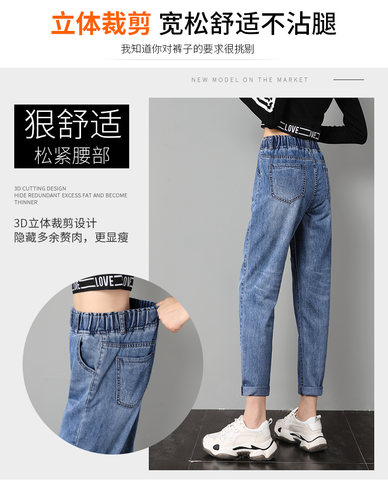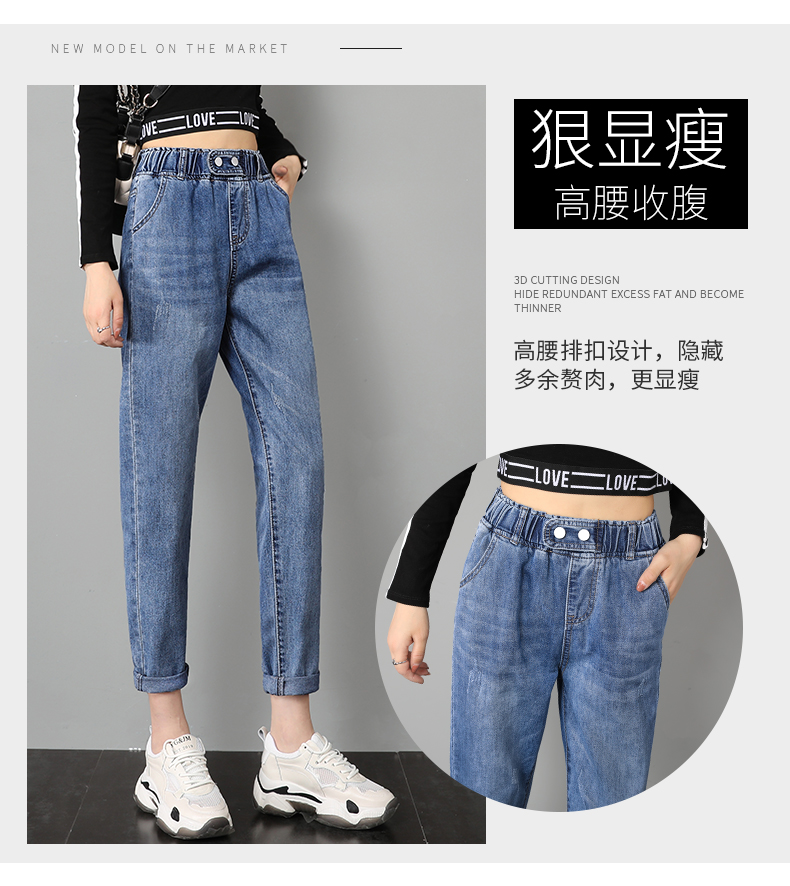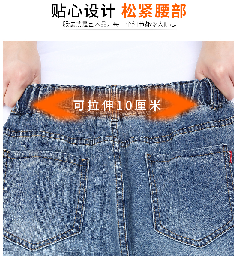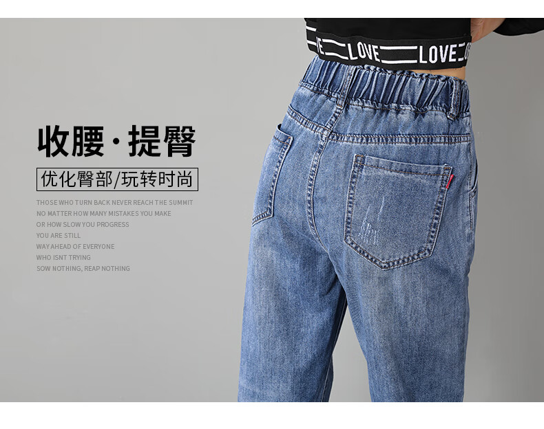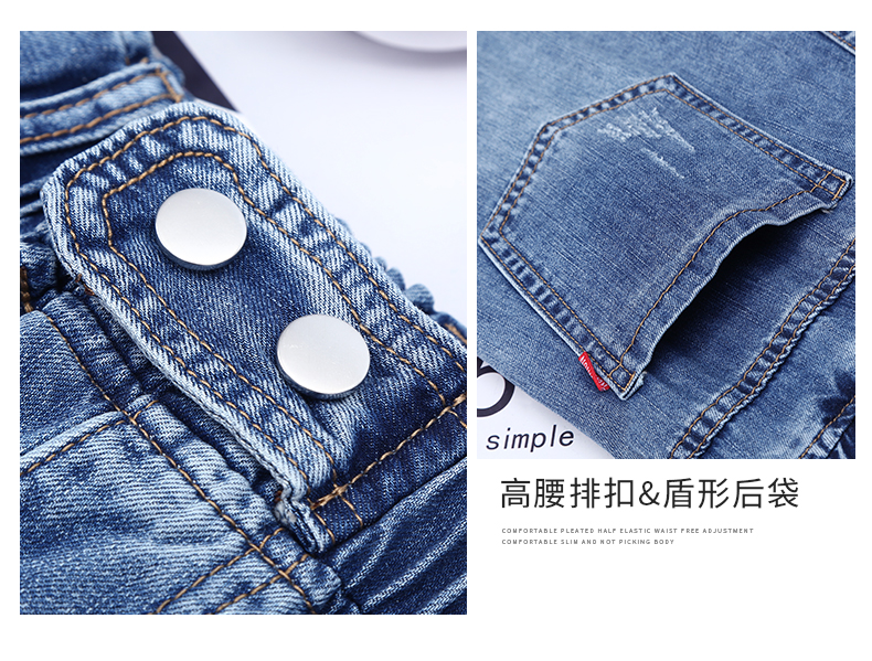 商品名称:筱环牛仔裤女2019新款秋季韩版修身显瘦破洞高腰紧身九分弹力显瘦小脚铅笔长裤子牛仔裤阔腿裤女 图片色 L