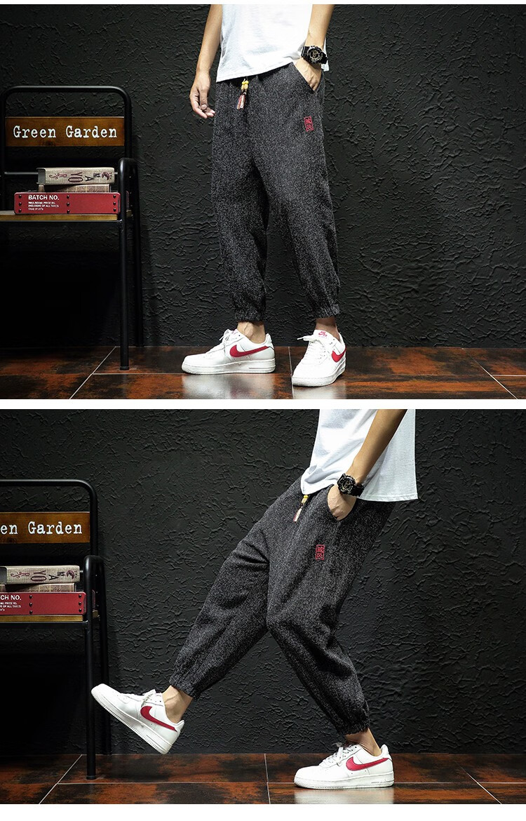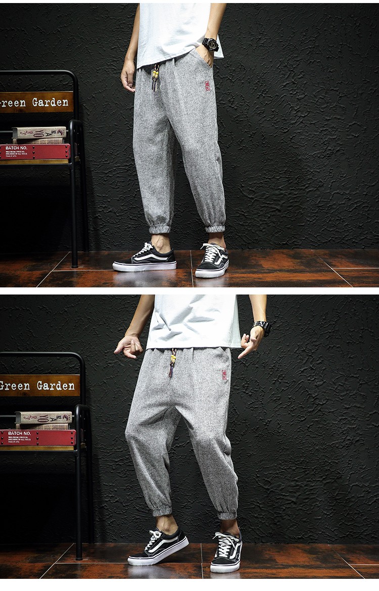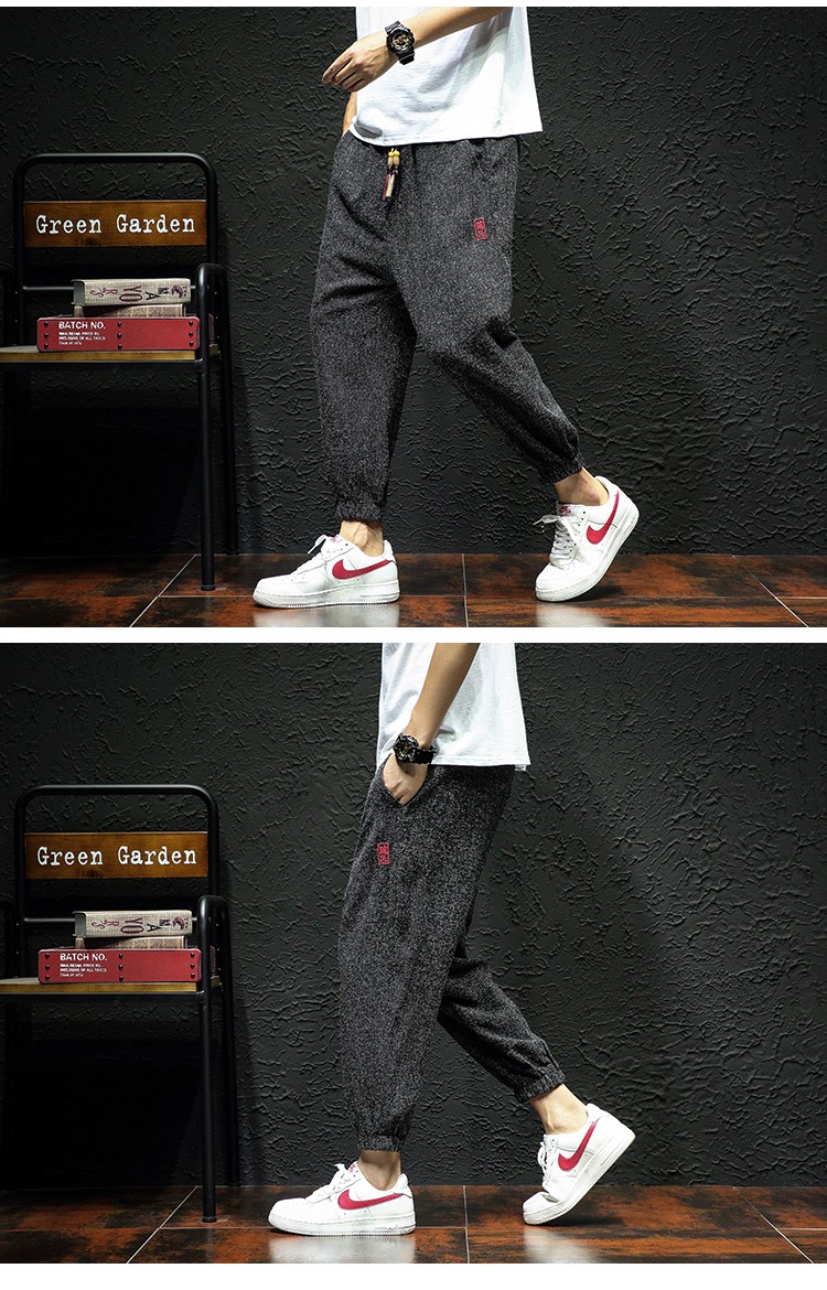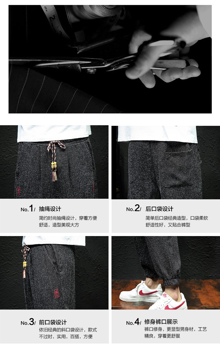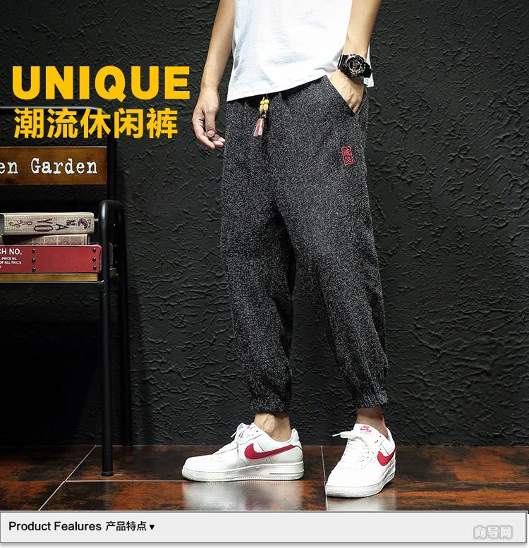 商品名称:古莱登休闲裤男2019夏季新款韩版潮流男士裤子薄款宽松九分运动裤学生百搭哈伦小脚裤束脚裤男裤 黑色 M