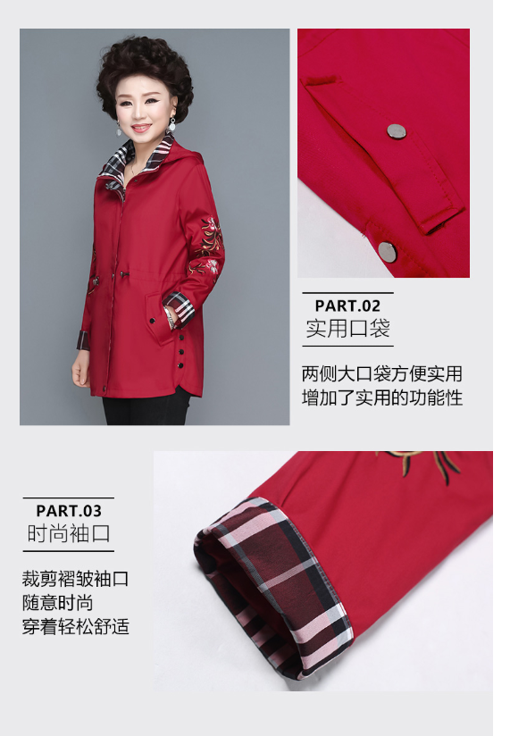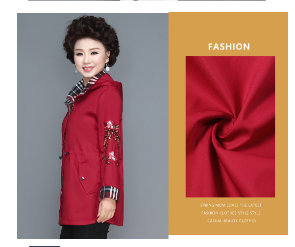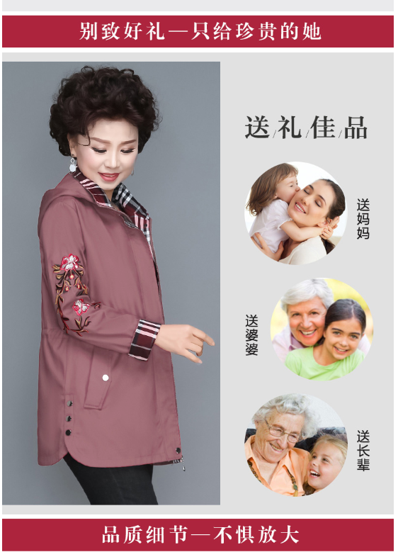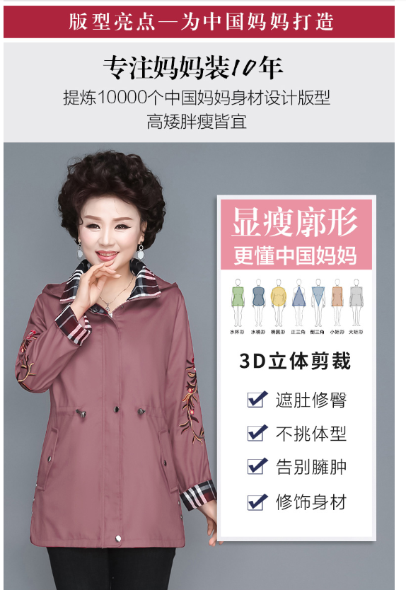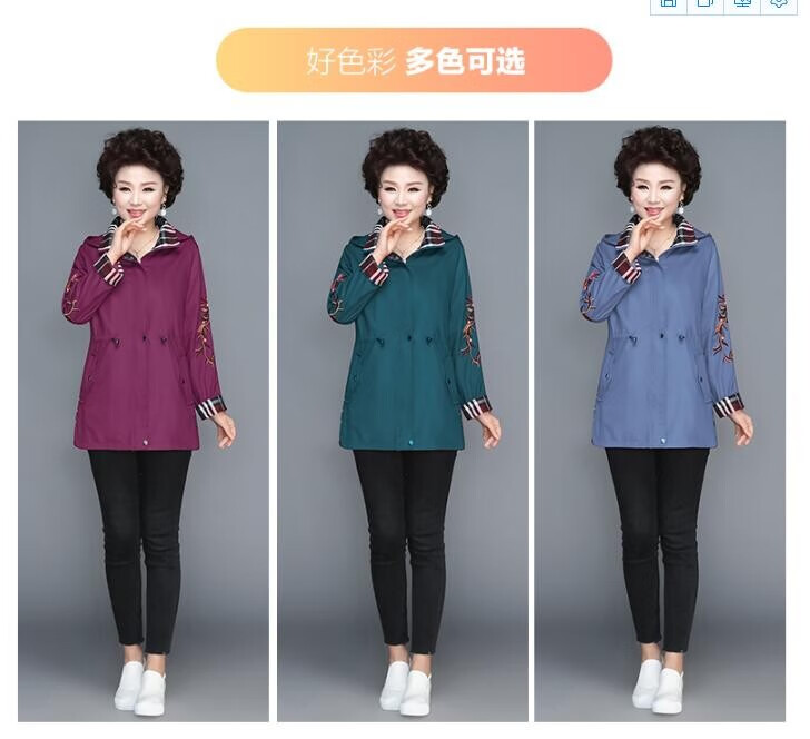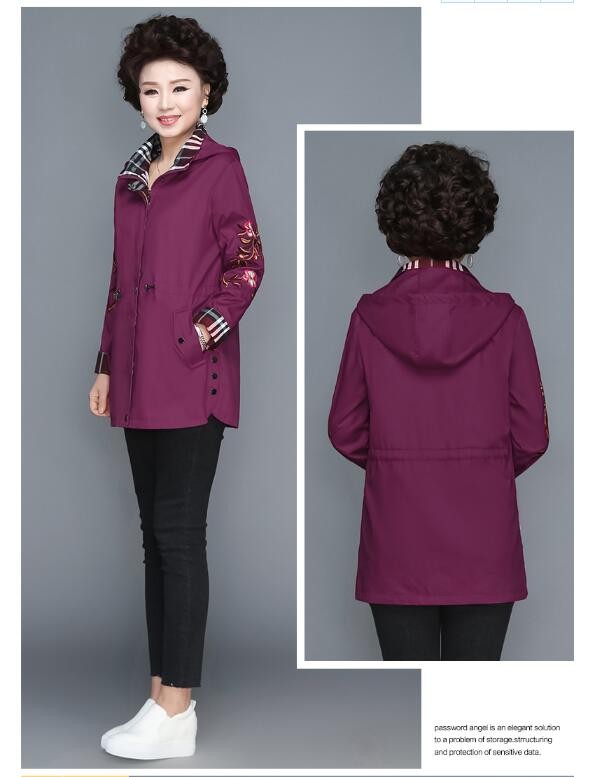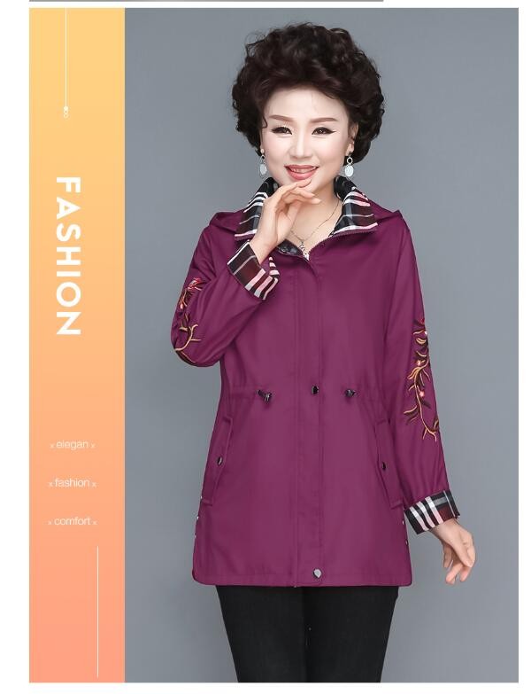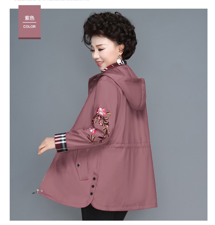 商品名称:颐图娅妈妈秋装外套2019新品中年女装春秋上衣服中老年人洋气风衣1902 紫色 XL(建议穿110-120斤左右)