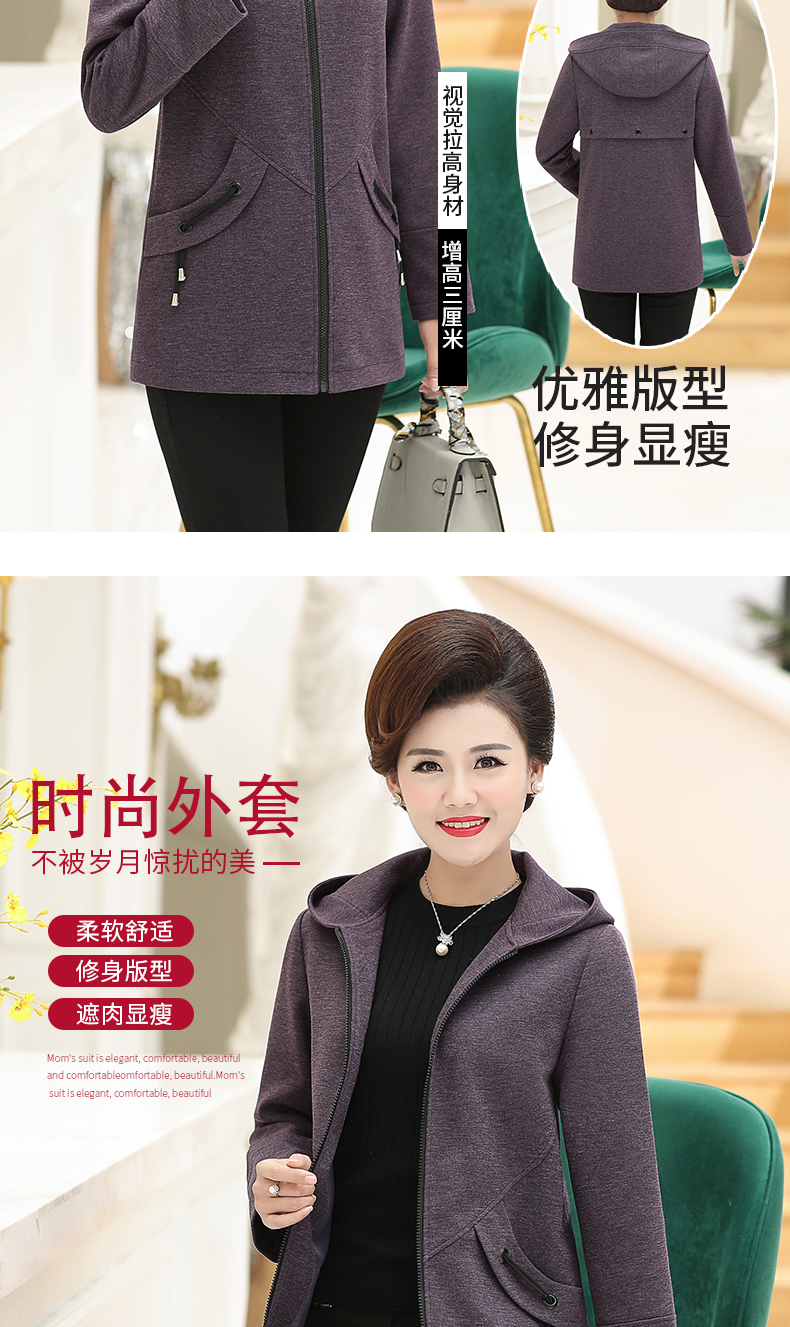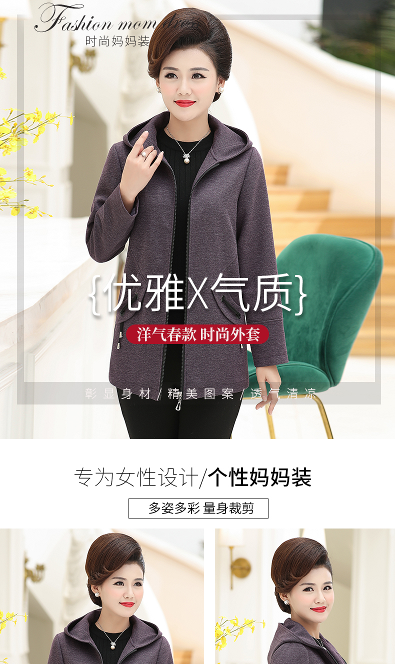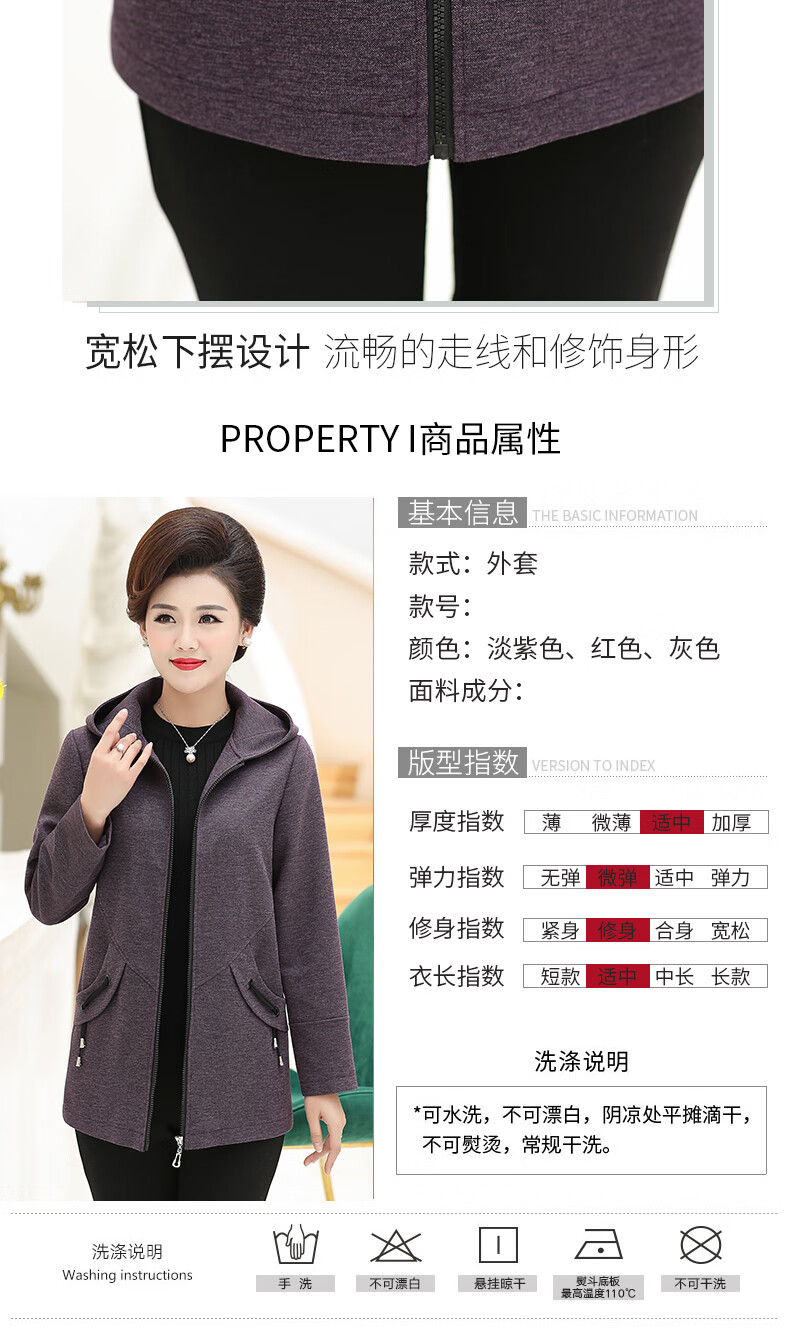 商品名称:艾尚碧丽缇妈妈装春装洋气夹克外套中年妇女短款上衣中老年女装春秋季衣服休闲风衣 灰色 2XL【建议125斤左右】