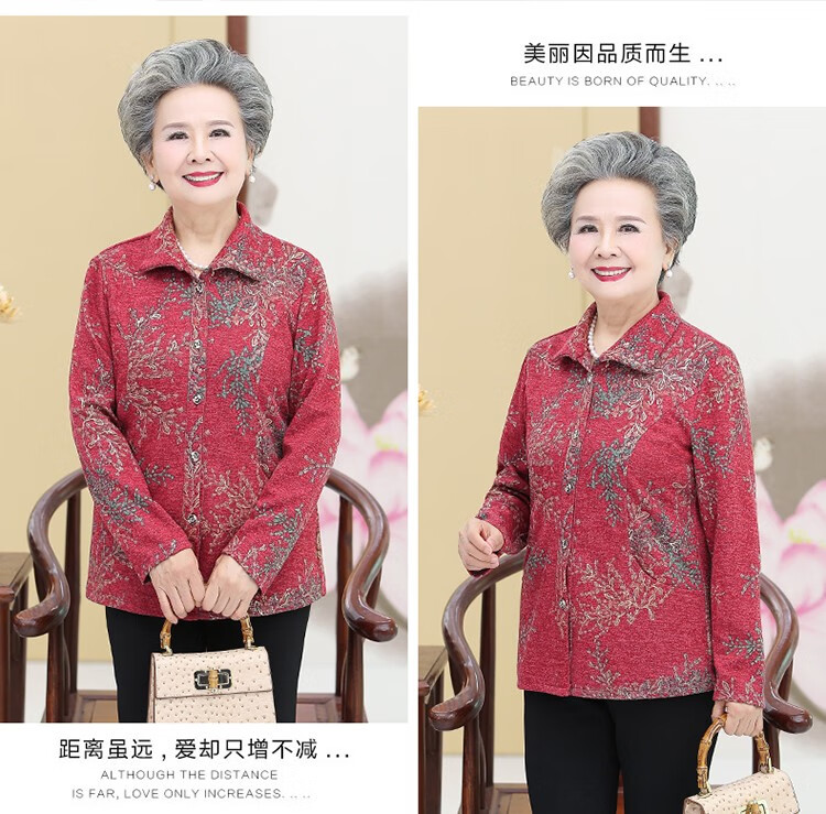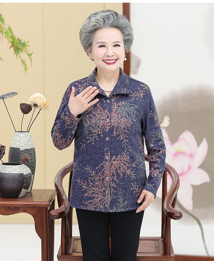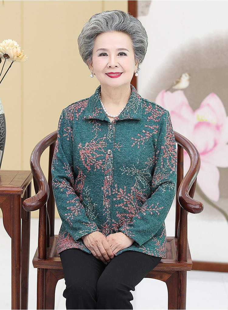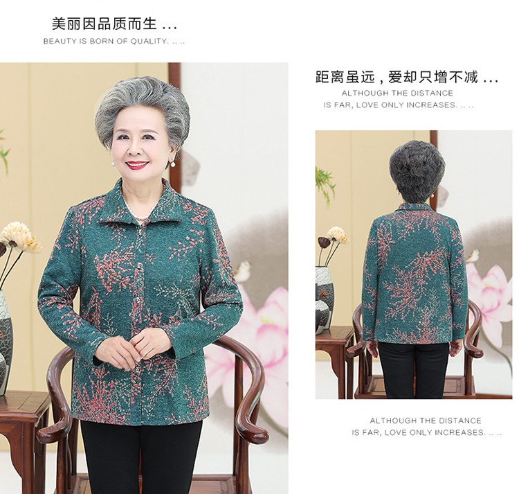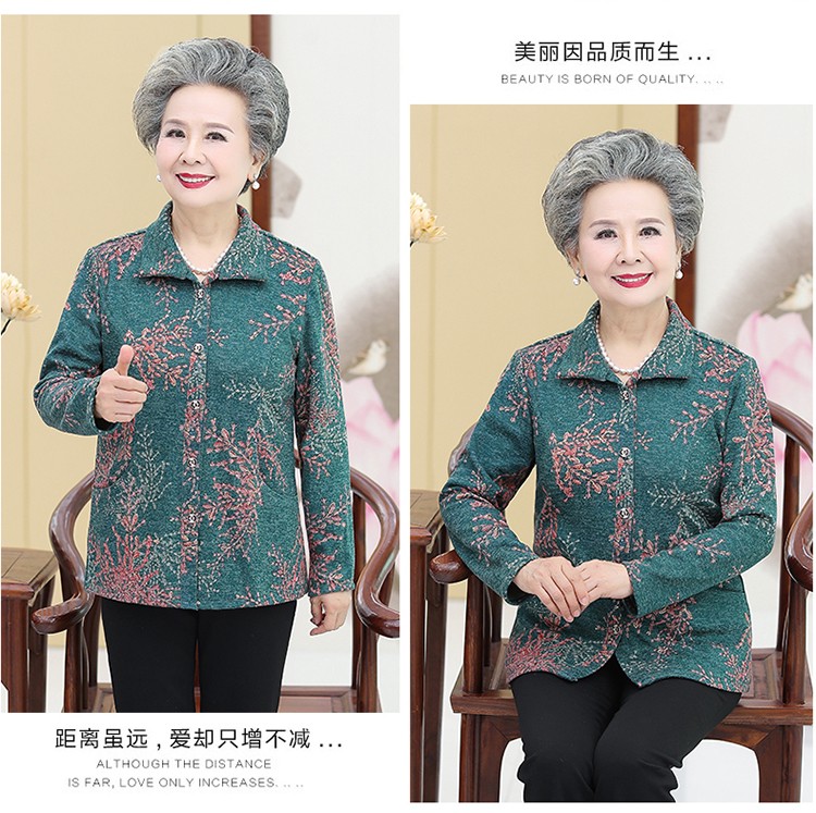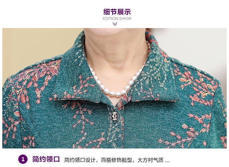 商品名称:汝惜中老年女装老年人衣服女奶奶春装长袖衬衫上衣60-70岁妈妈春秋衬衣T恤开衫 绿色 (上衣) 2XL 建议105-120斤