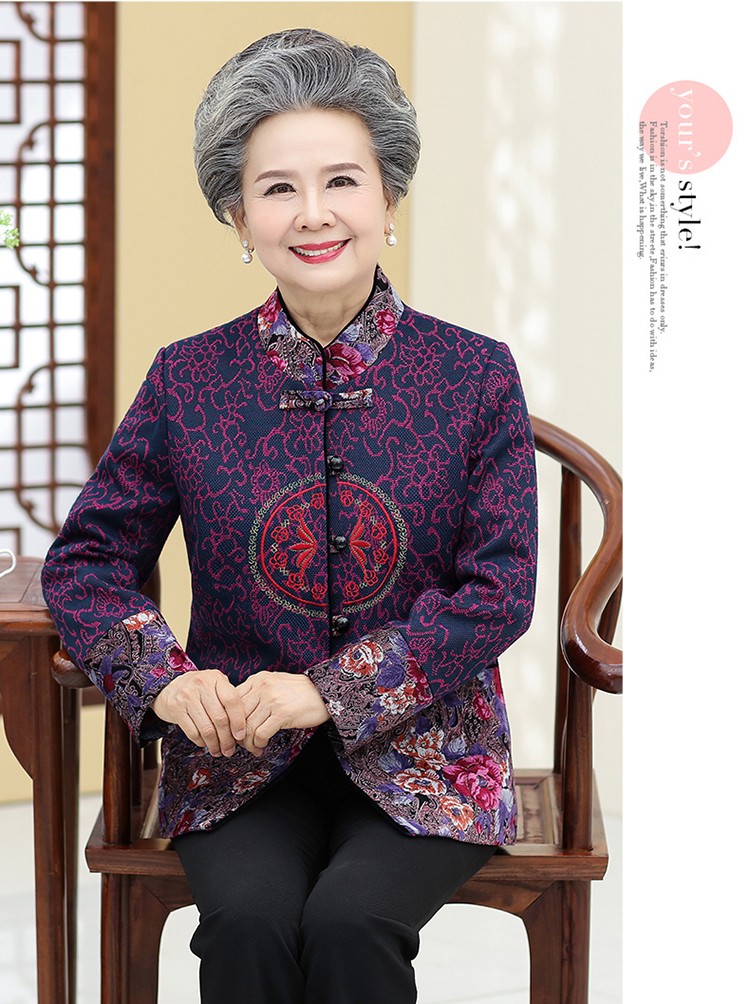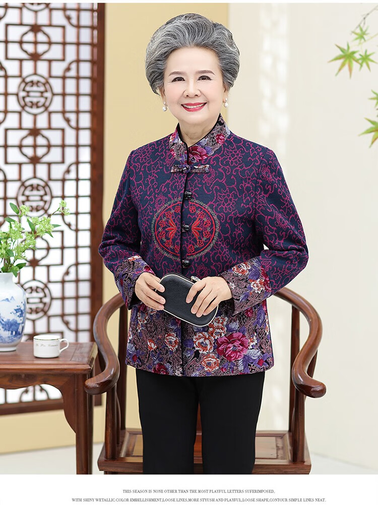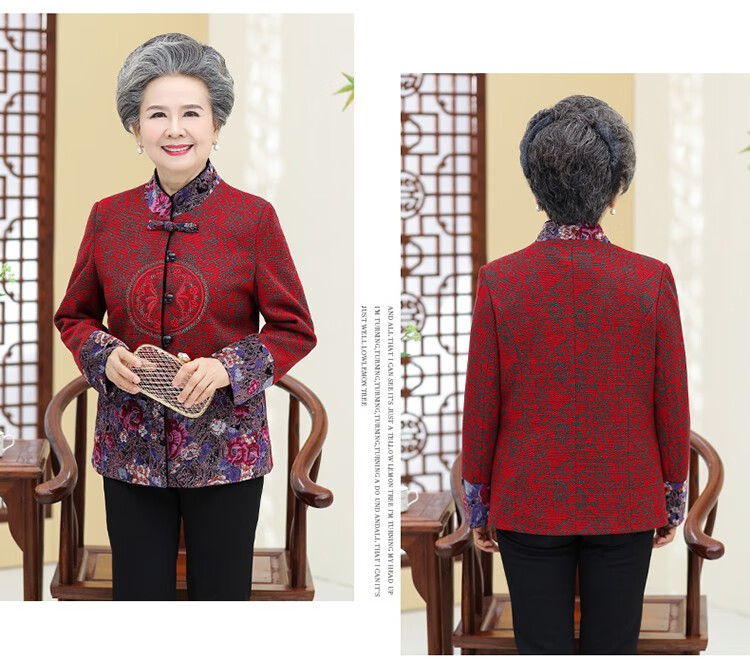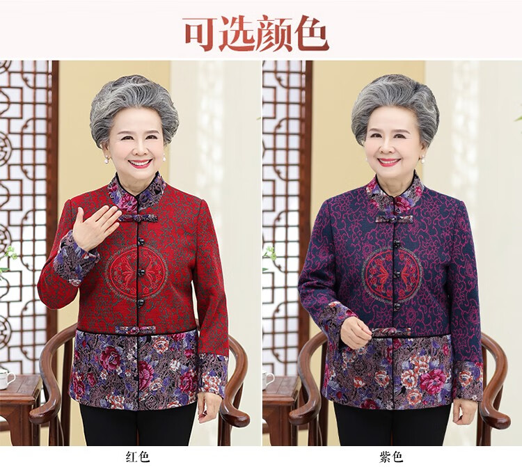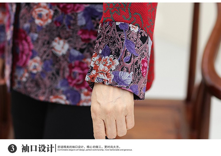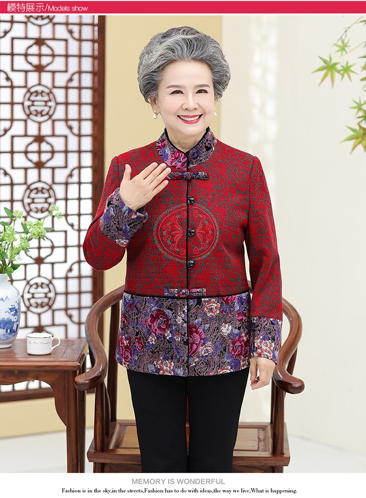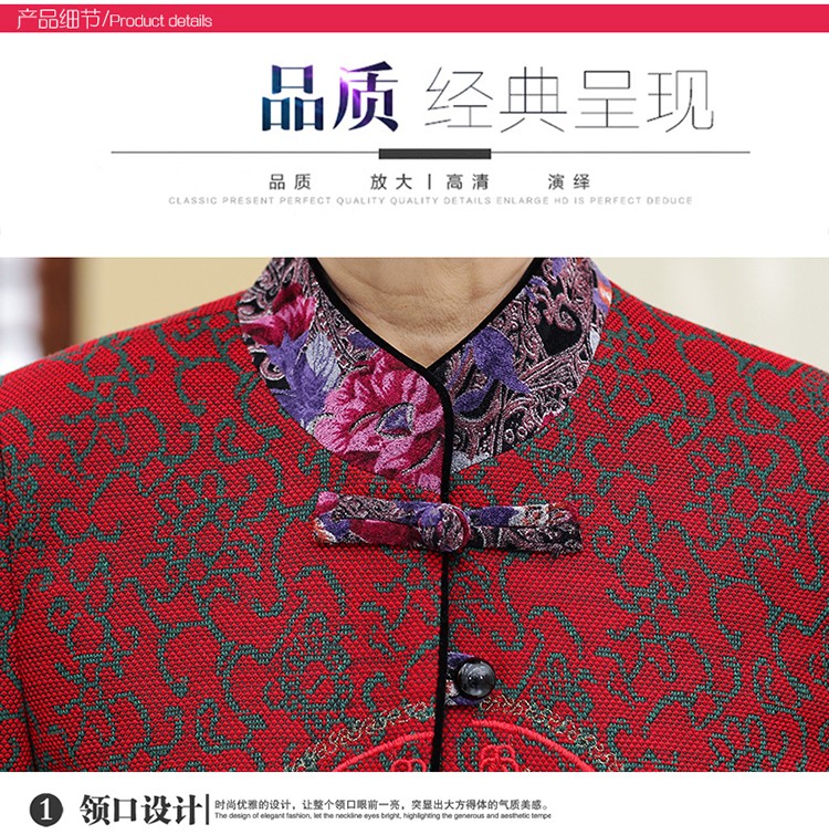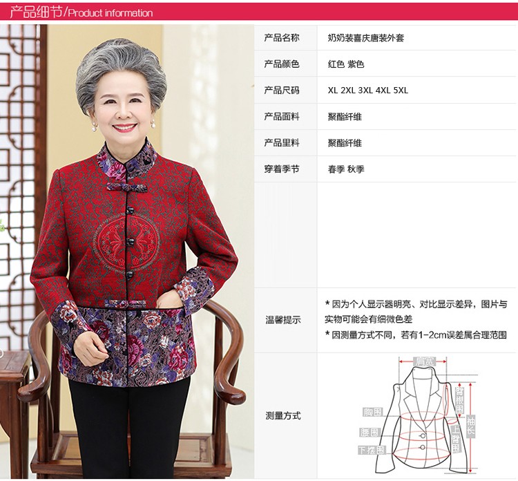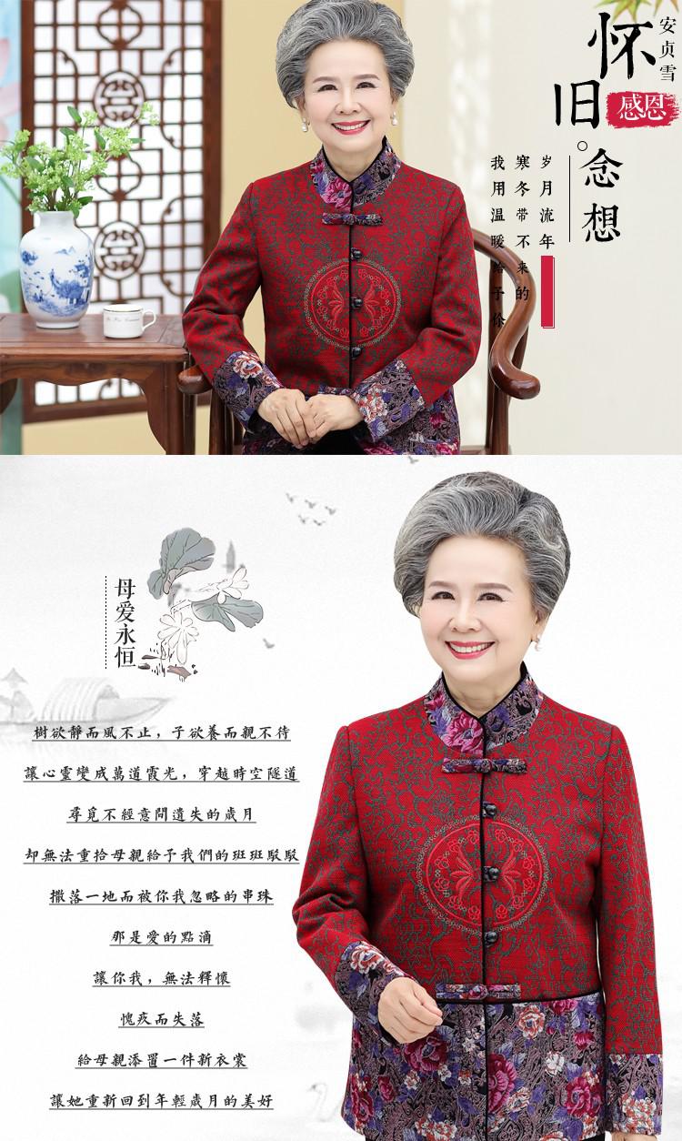 商品名称:安贞雪中老年女装妈妈装春秋装外套2019新品老年人民族风刺绣唐装奶奶装老太太生日过大寿服装W1842 红色 3XL建议120-135斤