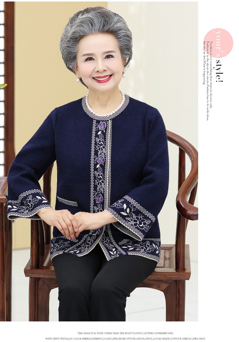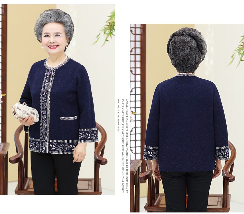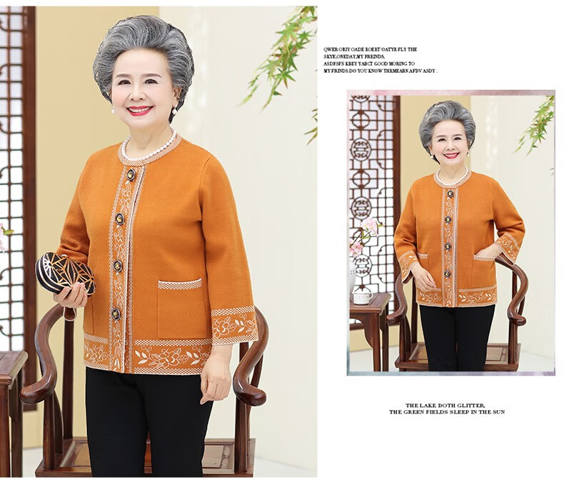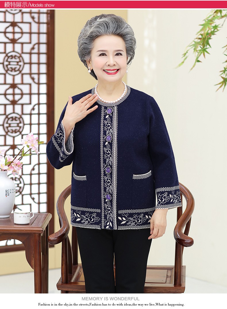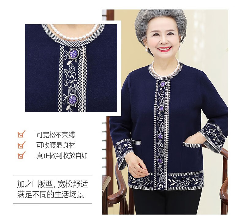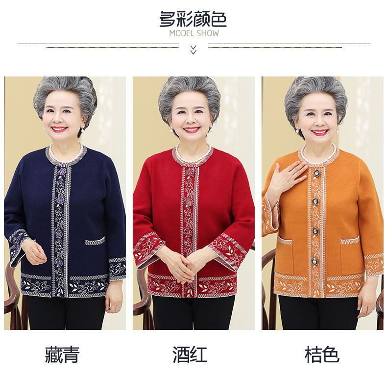 商品名称:俞兆林中老年女装奶奶装秋季针织开衫外套婚宴圆领妈妈装上衣唐装中国风60岁70老人衣服女 酒红单上衣 XL 建议体重100-115斤