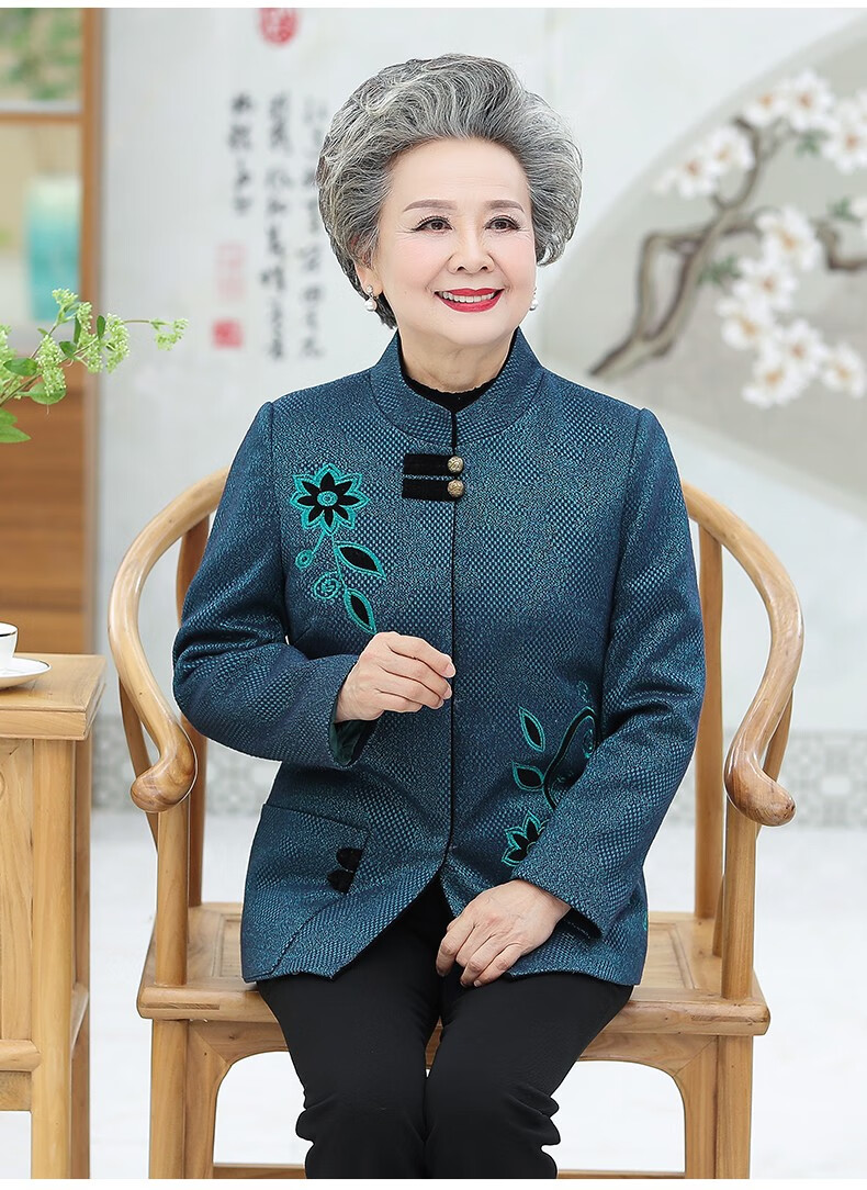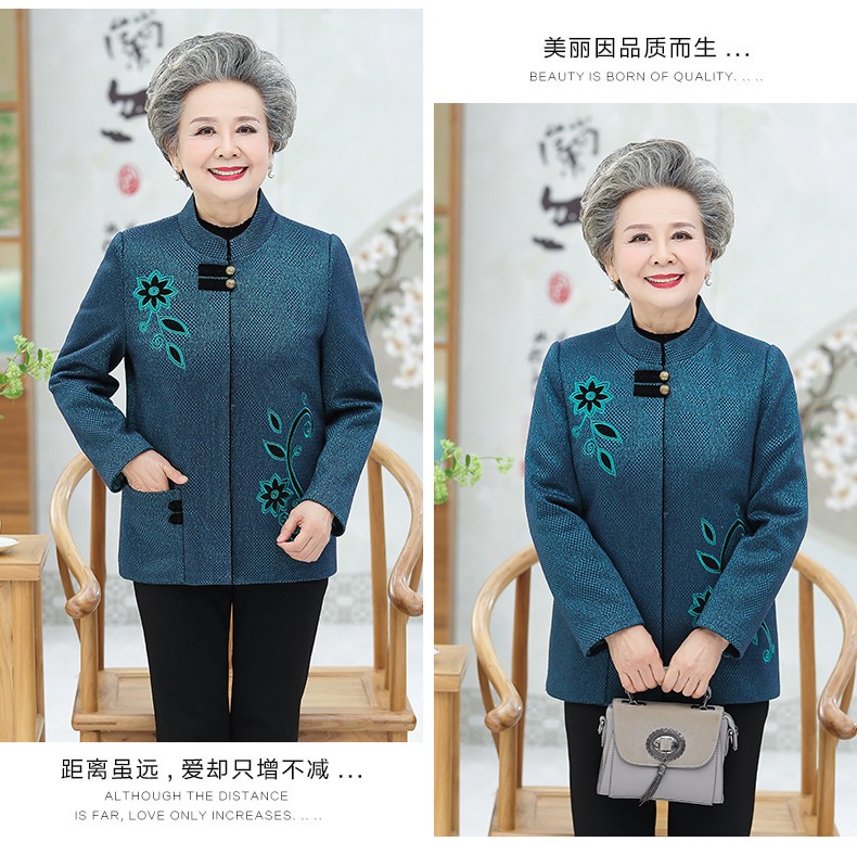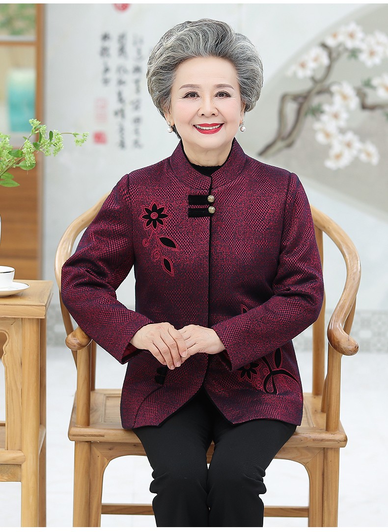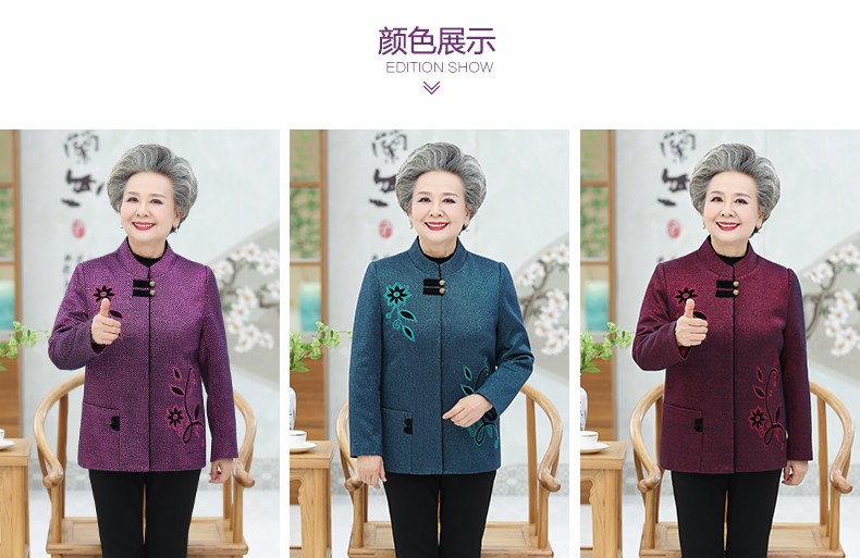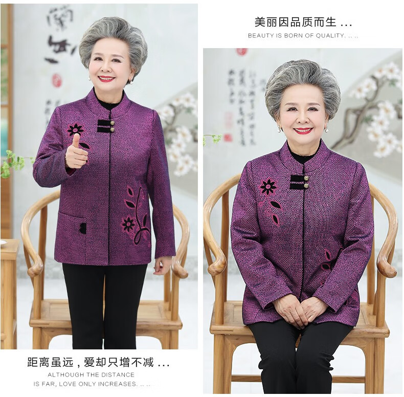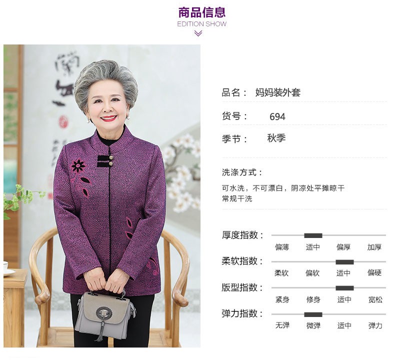 商品名称:北极芳 中老年女装外套妈妈装长袖夹克2019秋装立领宽松大码奶奶装风衣中国风老年人上衣 694 紫色 2XL【105-120斤】