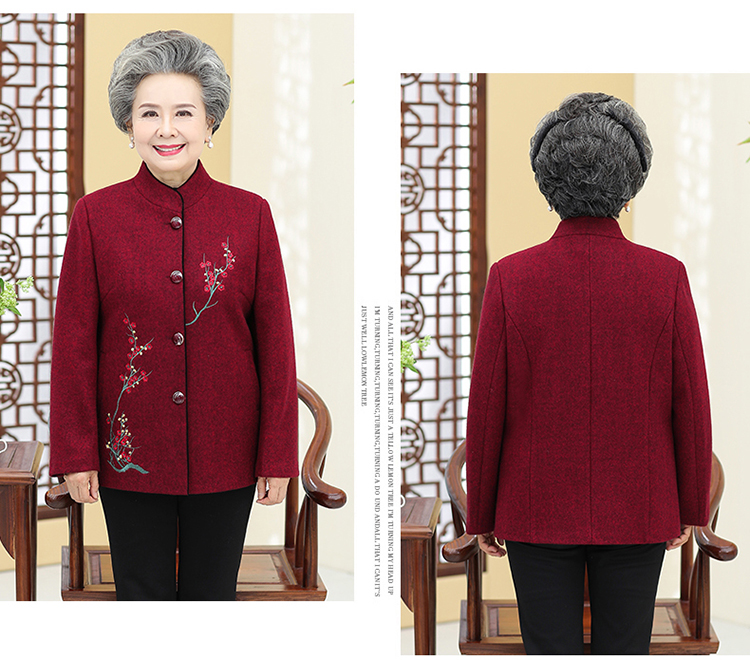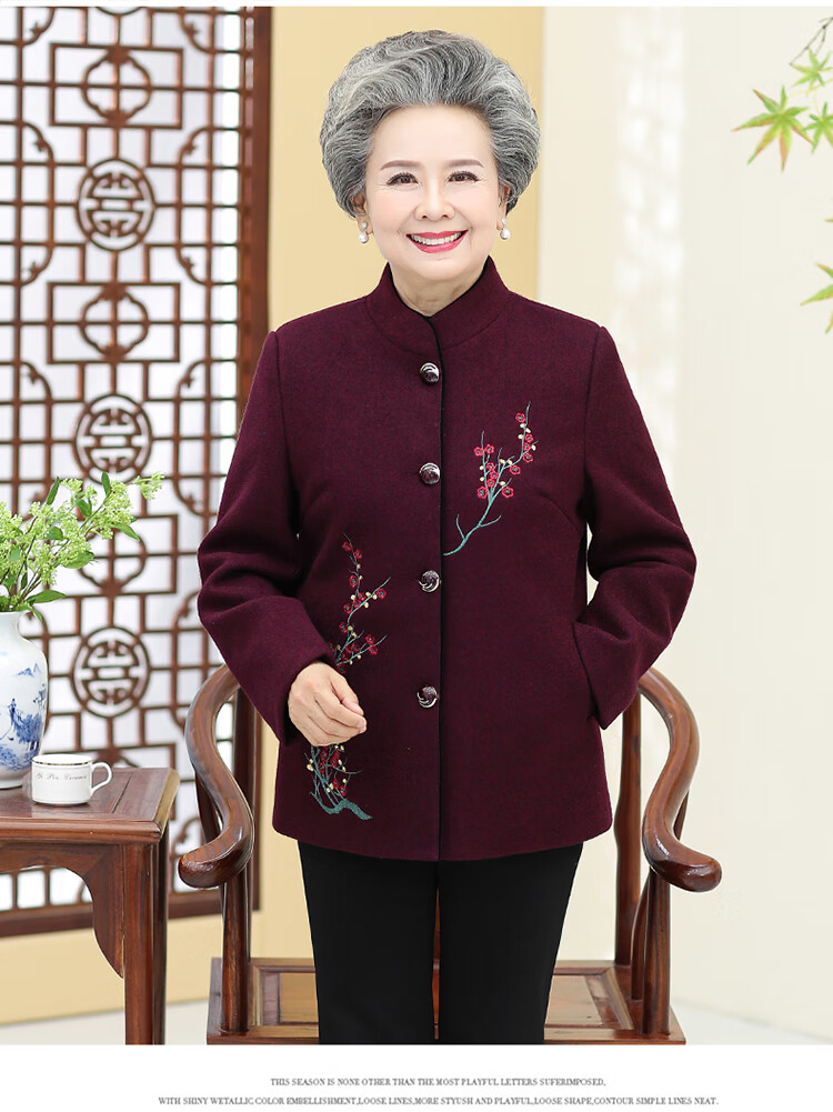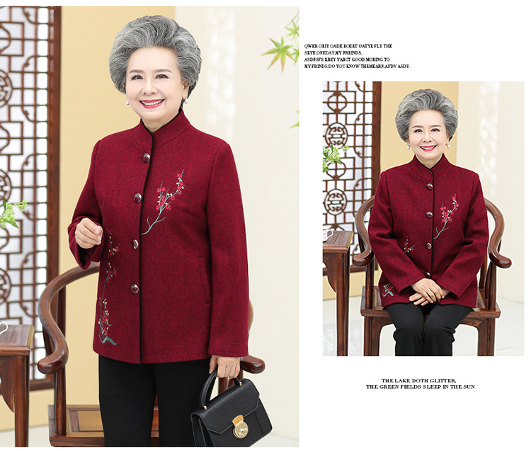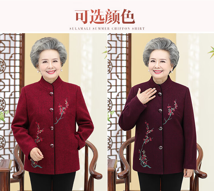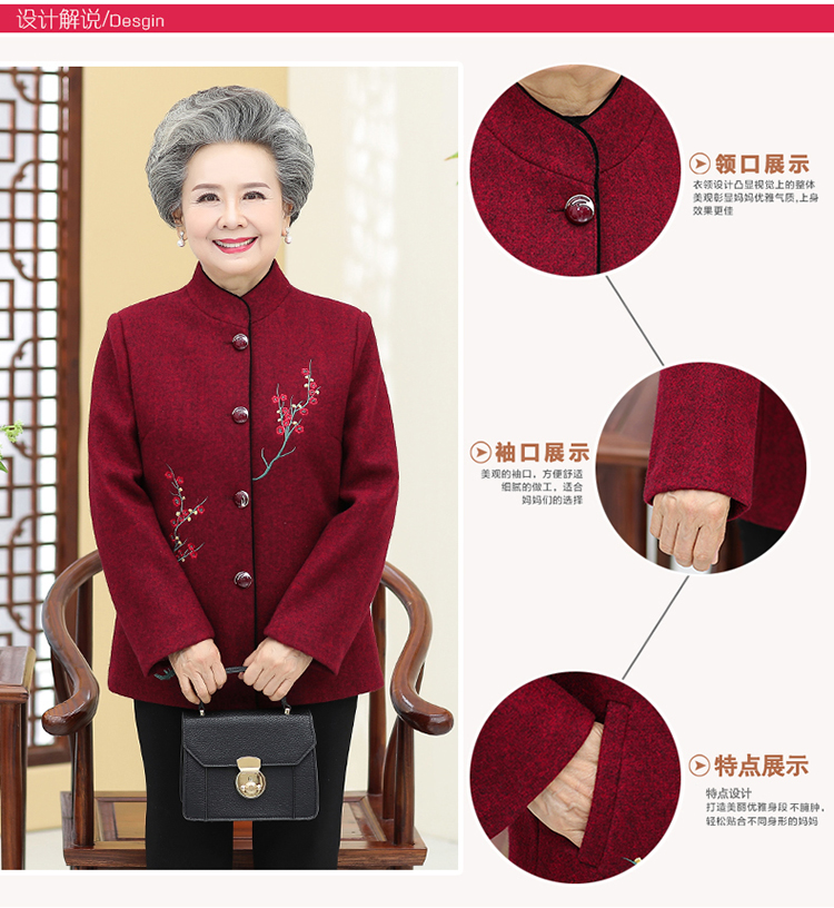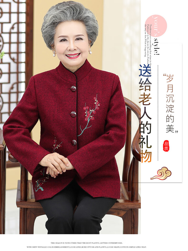 商品名称:孜颜中老年女装老年人妈妈装秋装外套毛呢薄60-70-80岁老人春秋呢子衣服喜庆奶奶装 红色 2XL(建议100-115斤)