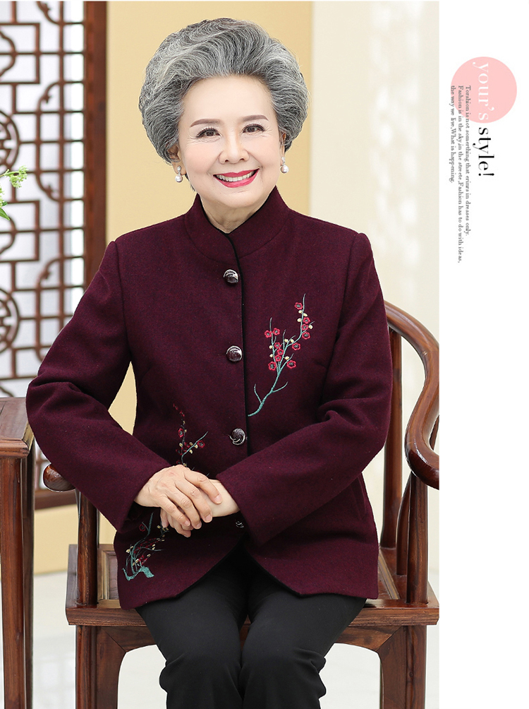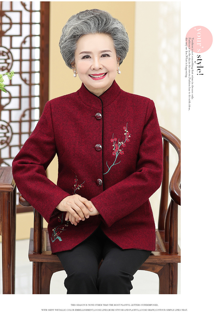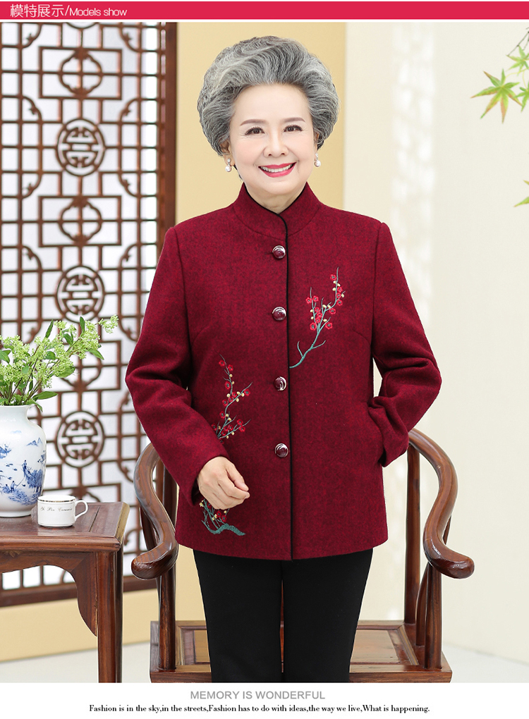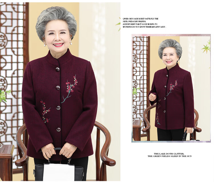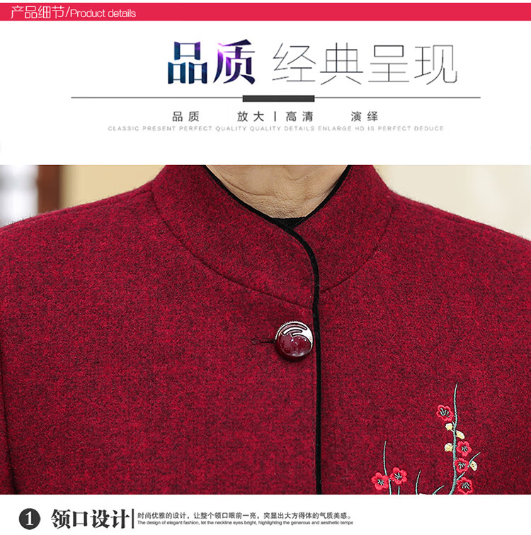 商品名称:孜颜中老年女装老年人妈妈装秋装外套毛呢薄60-70-80岁老人春秋呢子衣服喜庆奶奶装 红色 2XL(建议100-115斤)