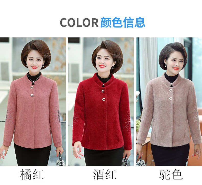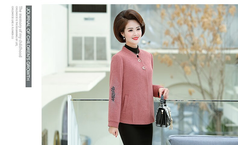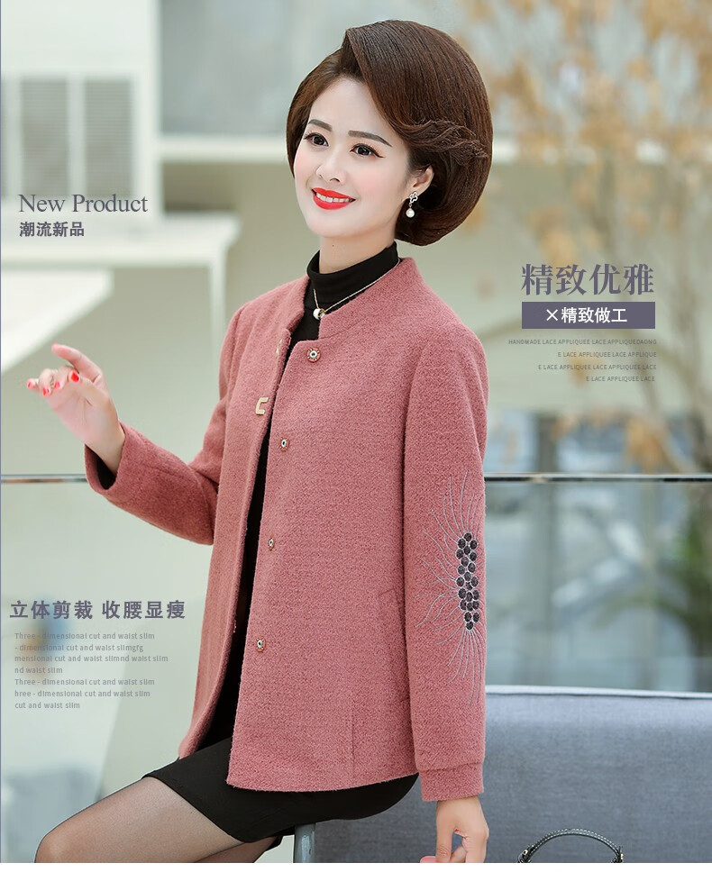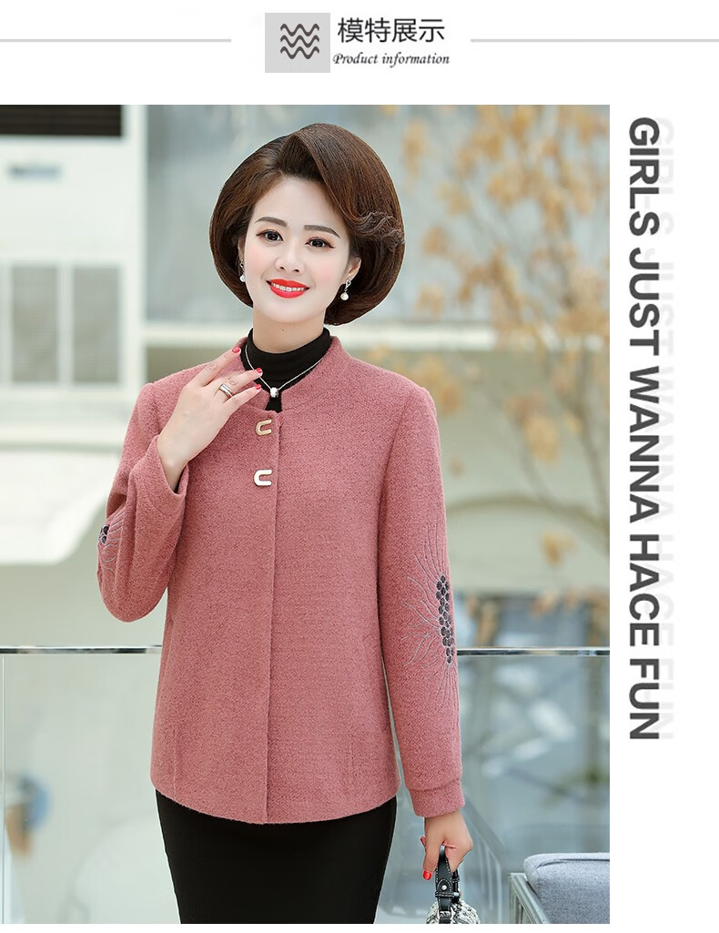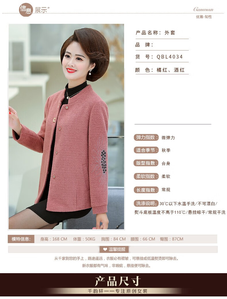 商品名称:中老年女装妈妈装秋装毛呢外套2019新款短款薄呢子夹克秋冬中年女上衣 桔红 L(100斤以内)