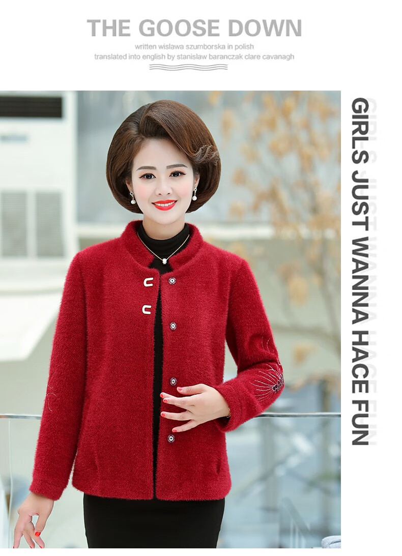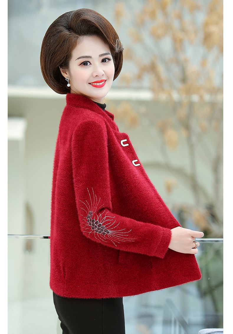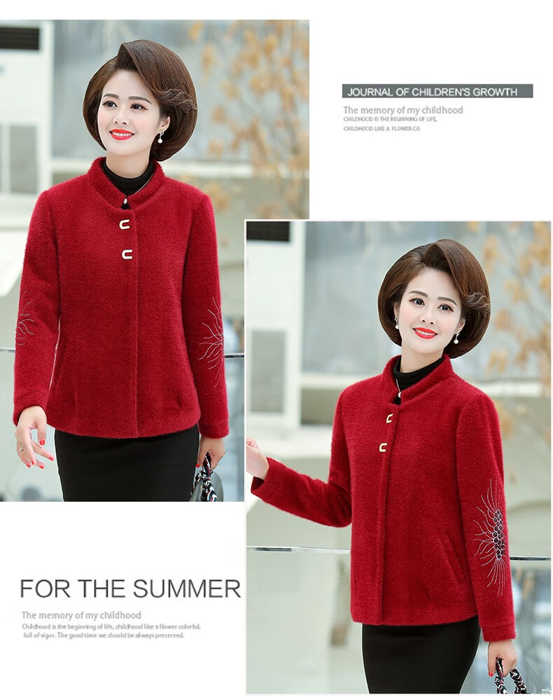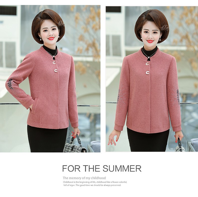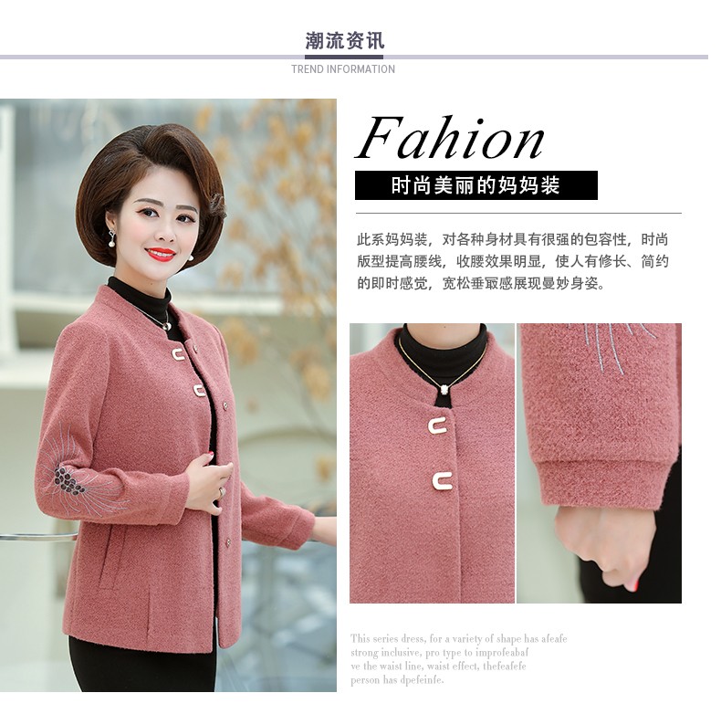 商品名称:中老年女装妈妈装秋装毛呢外套2019新款短款薄呢子夹克秋冬中年女上衣 桔红 L(100斤以内)
