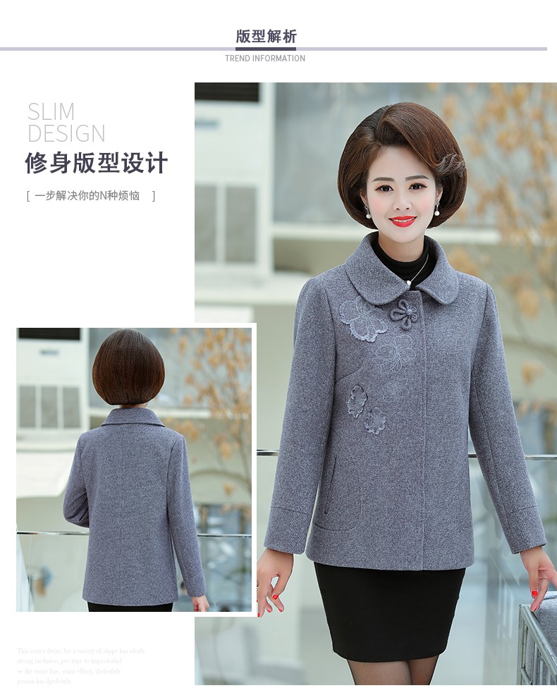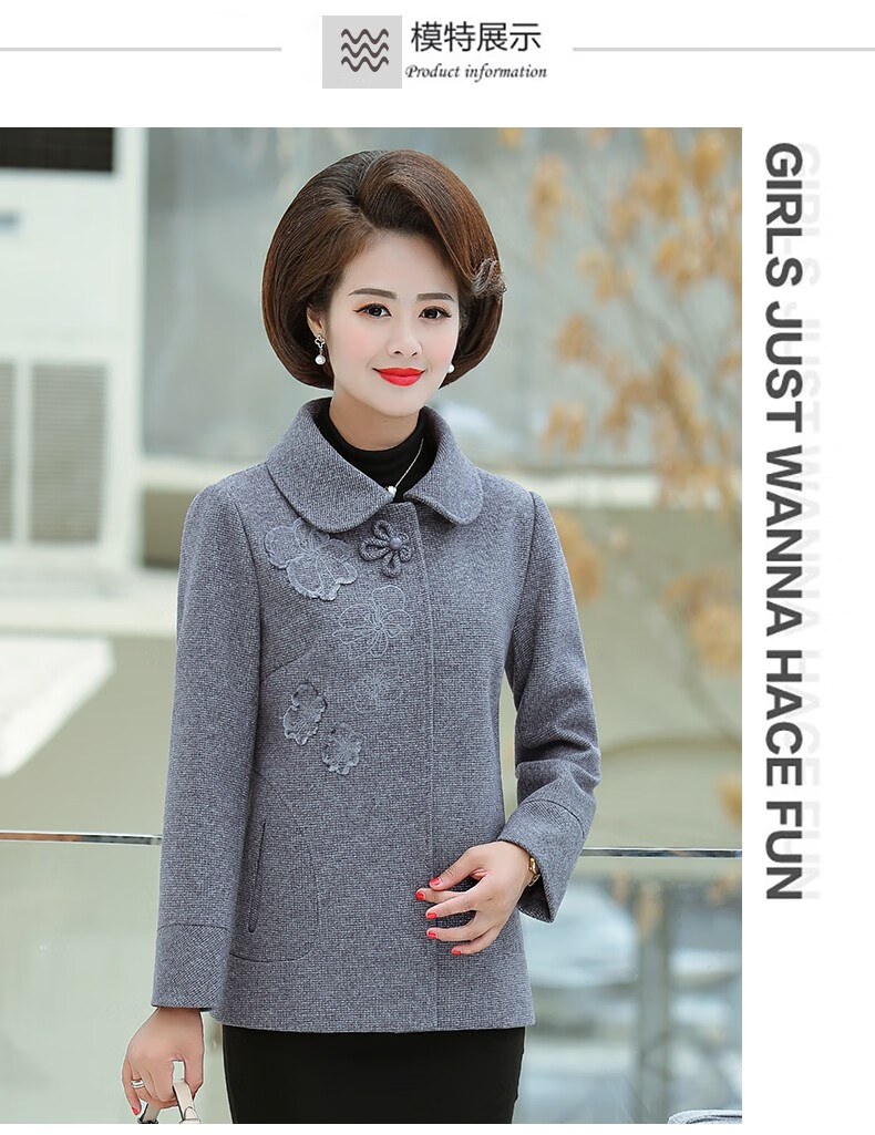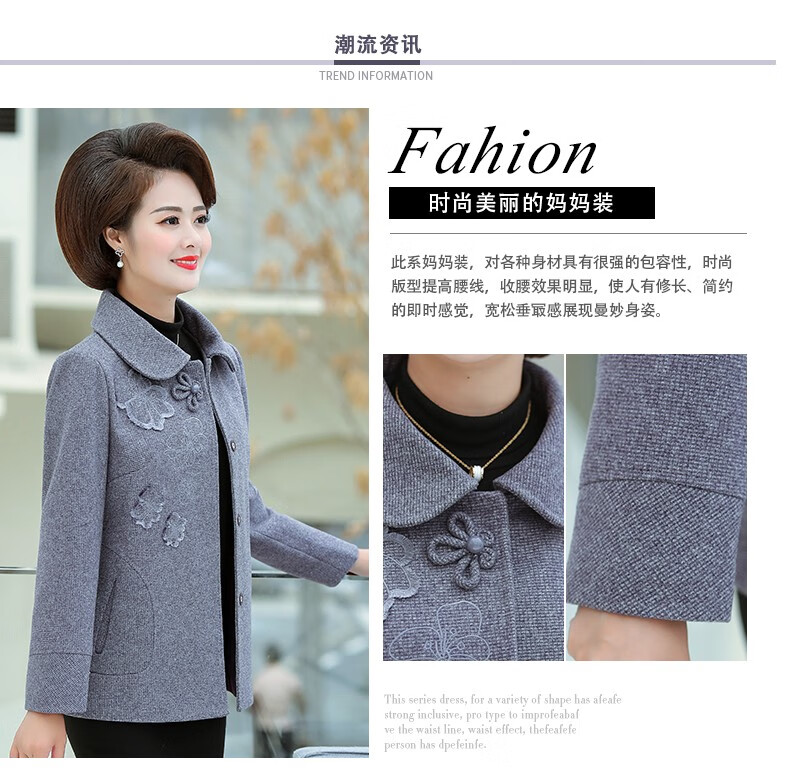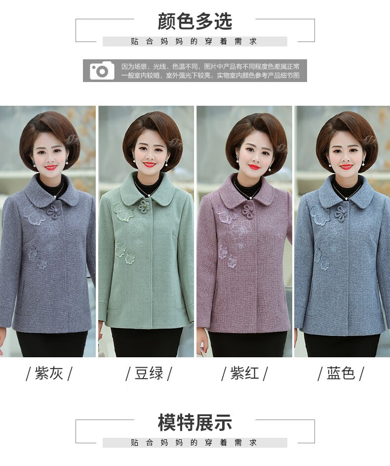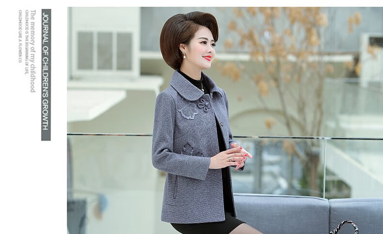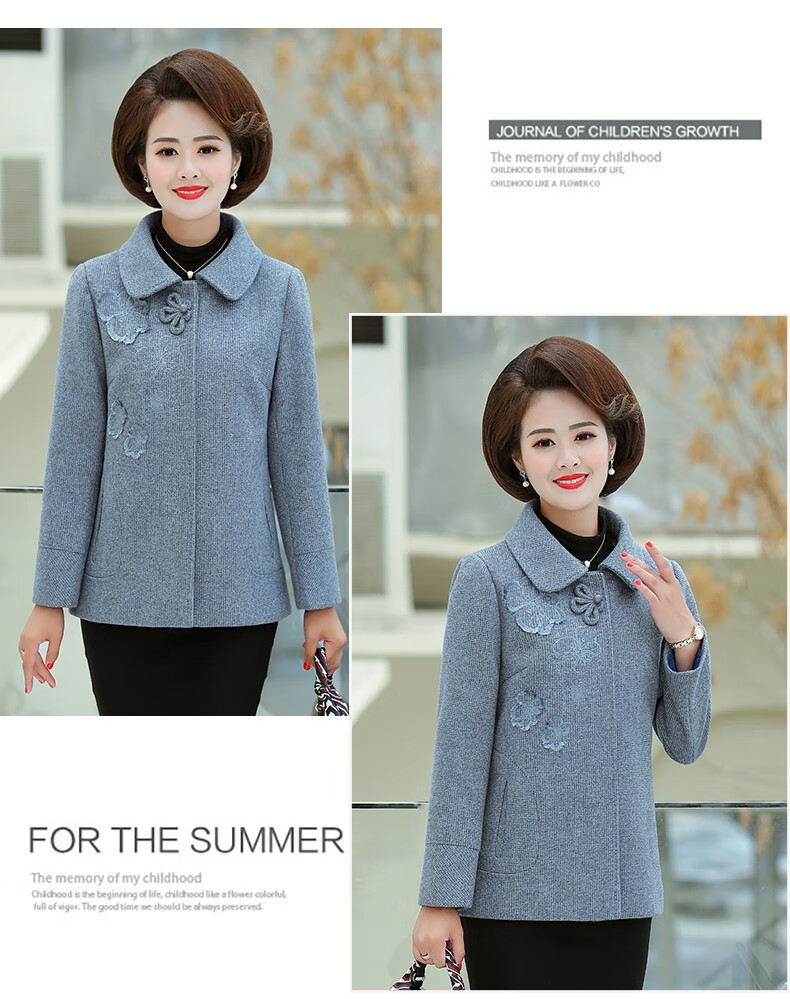 商品名称:中老年人女装秋装毛呢短外套新款宽松大码奶奶装老太太衣服妈妈装秋冬季上衣 蓝色 L(90-105斤)