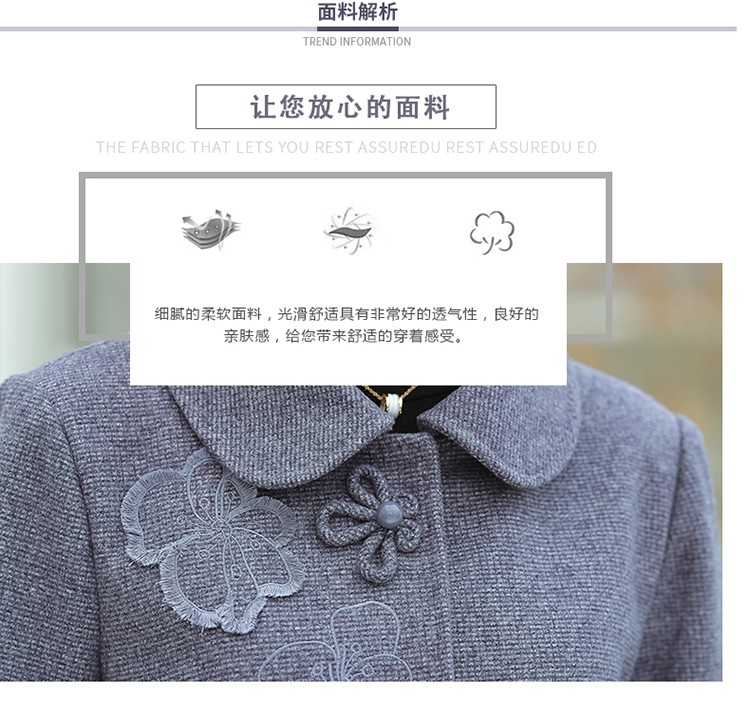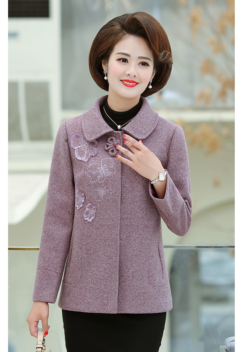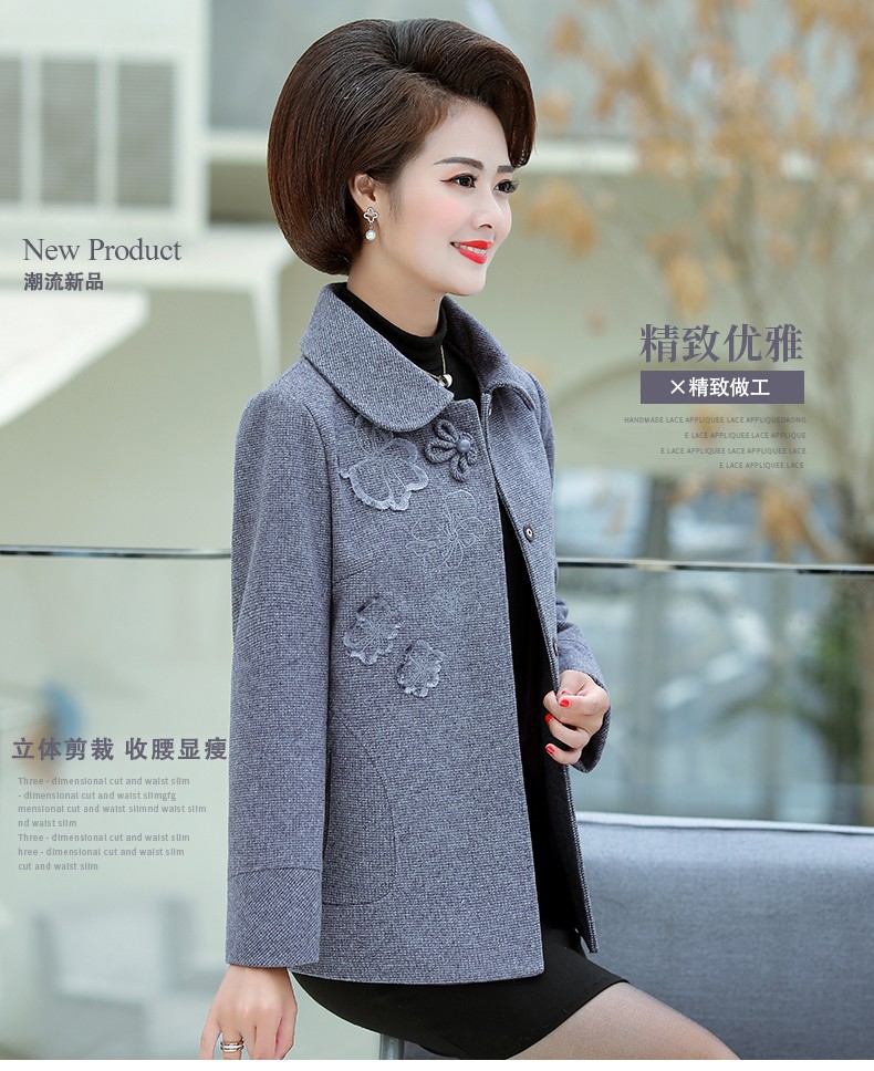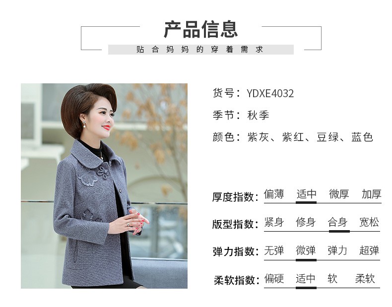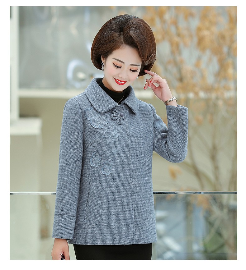 商品名称:中老年人女装秋装毛呢短外套新款宽松大码奶奶装老太太衣服妈妈装秋冬季上衣 蓝色 L(90-105斤)