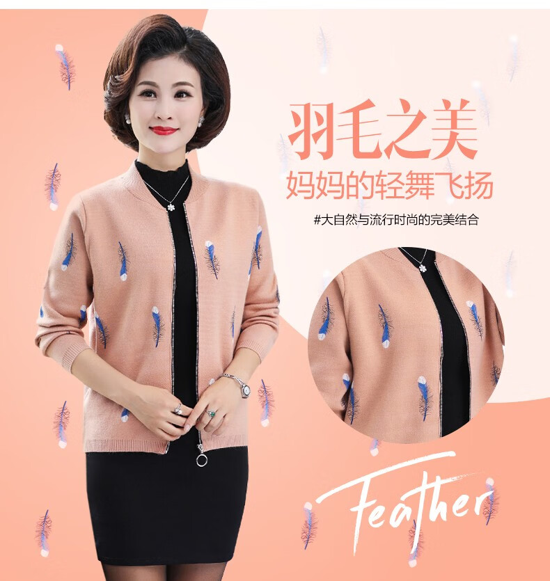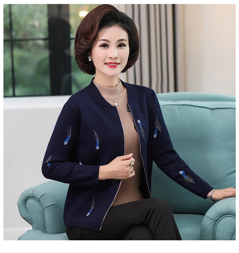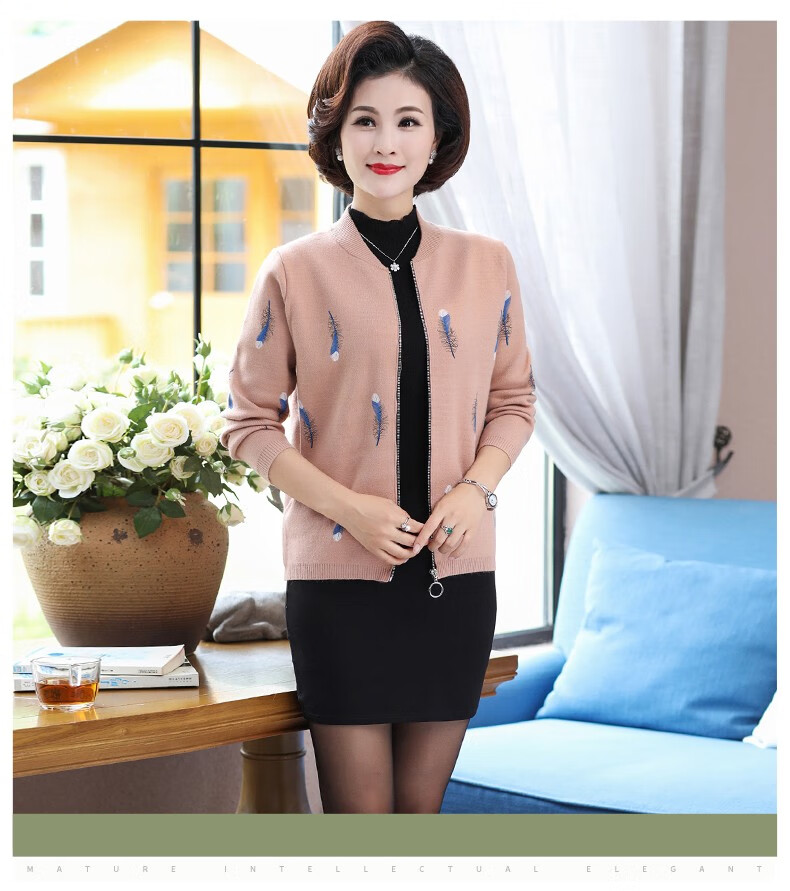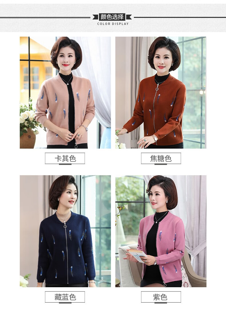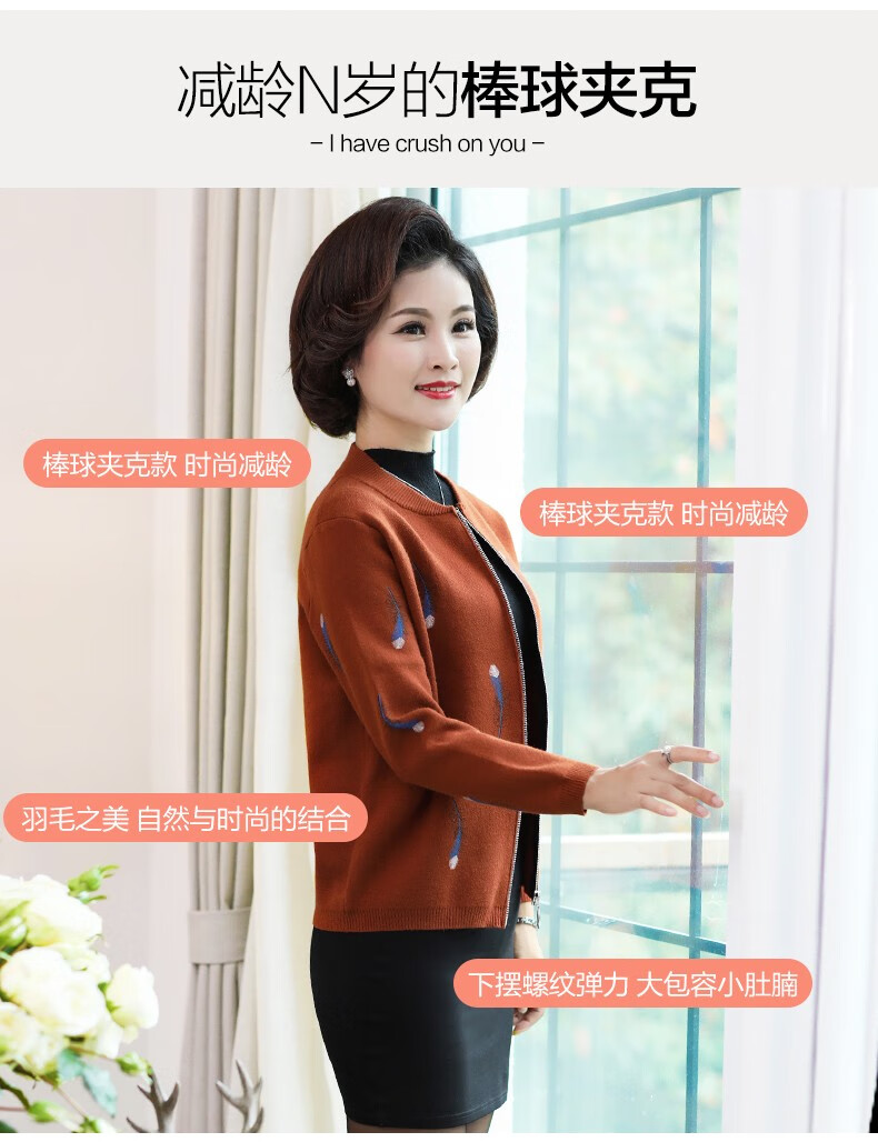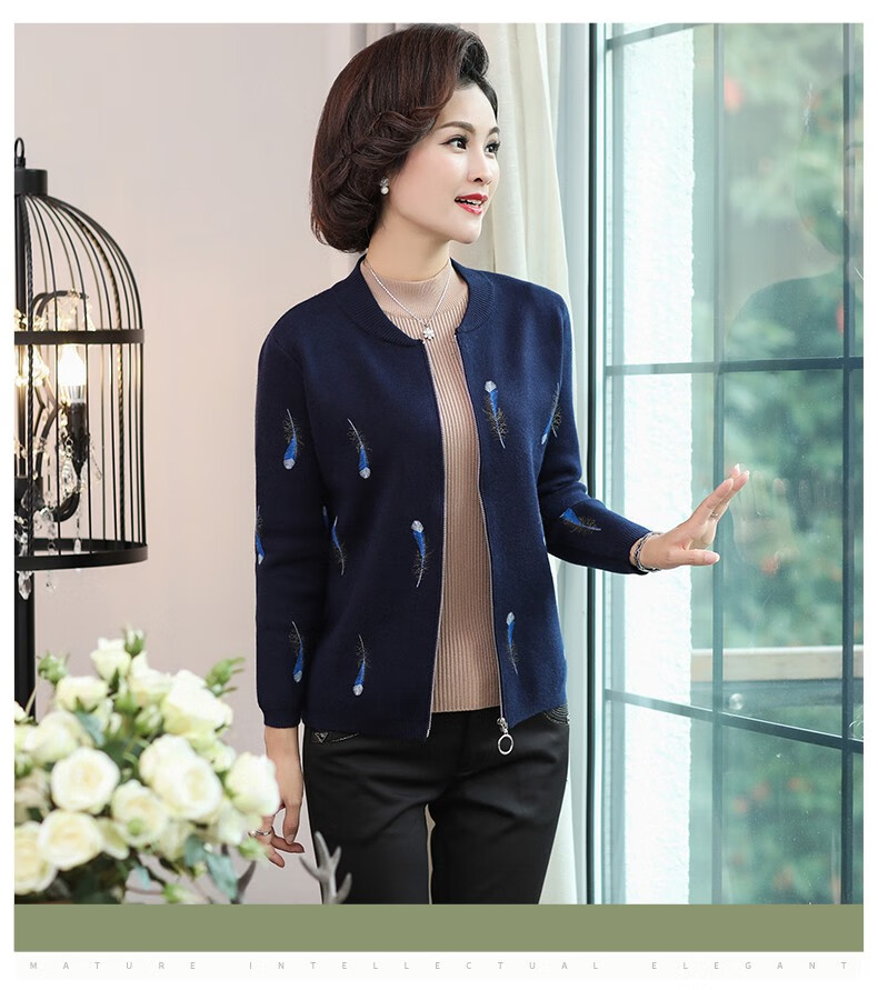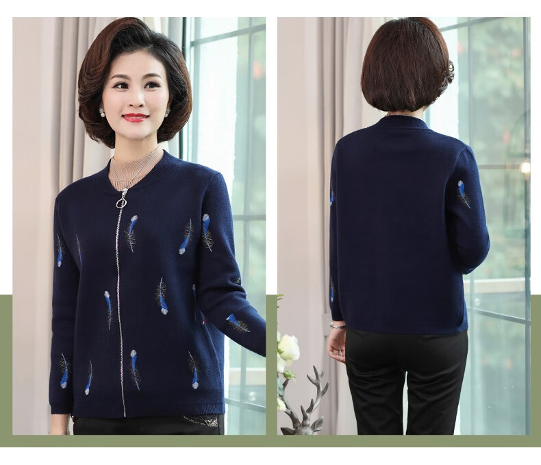 商品名称:芙悦中年妈妈装针织衫外套女春秋开衫中老年人女装2019新款秋装休闲毛衣夹克上衣FY08708 藏青色 2XL【130-140斤】