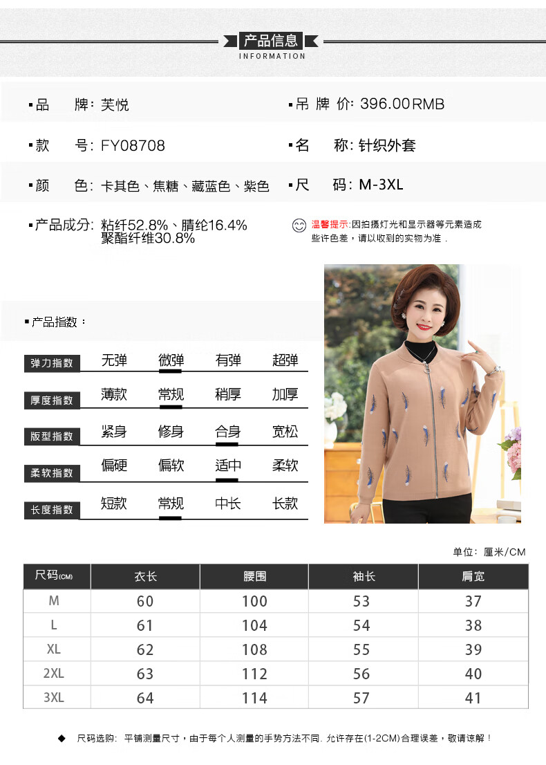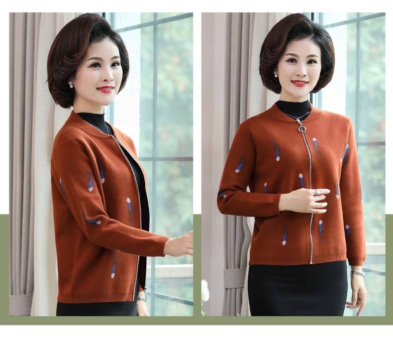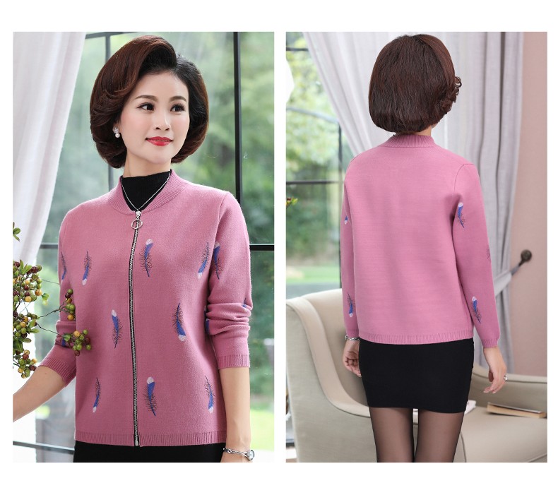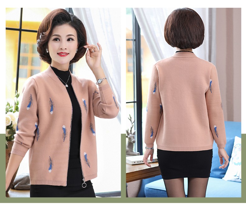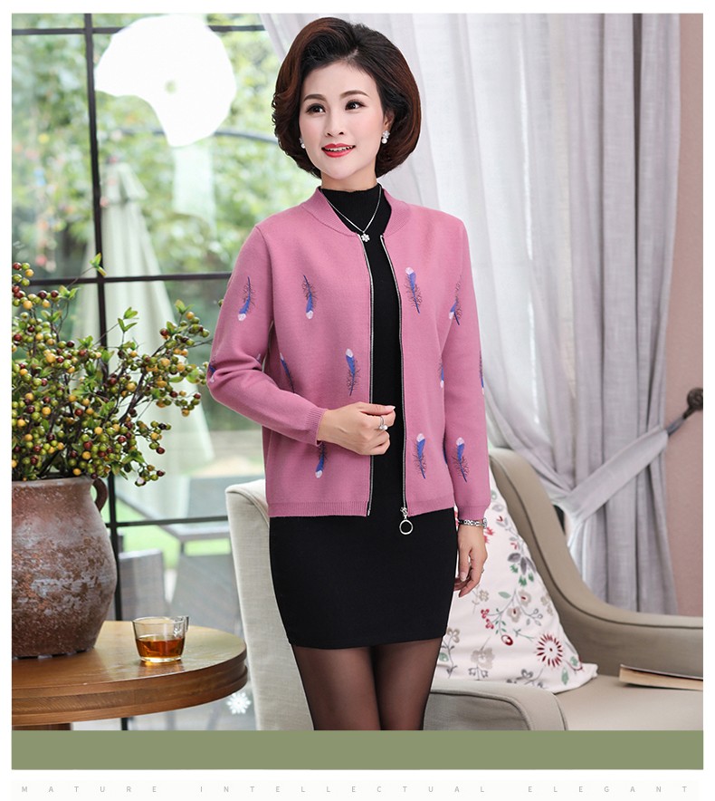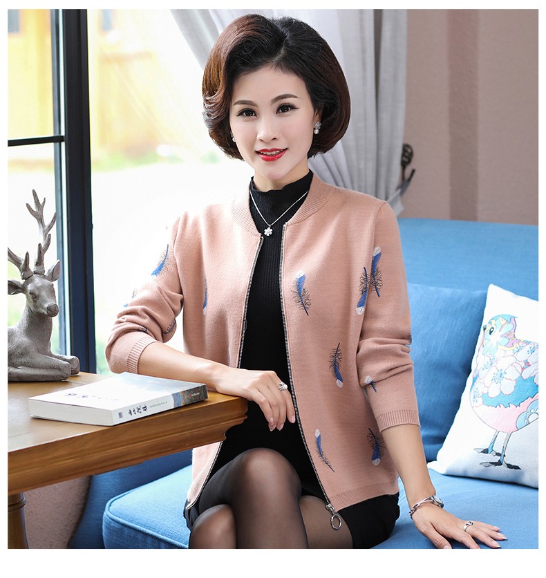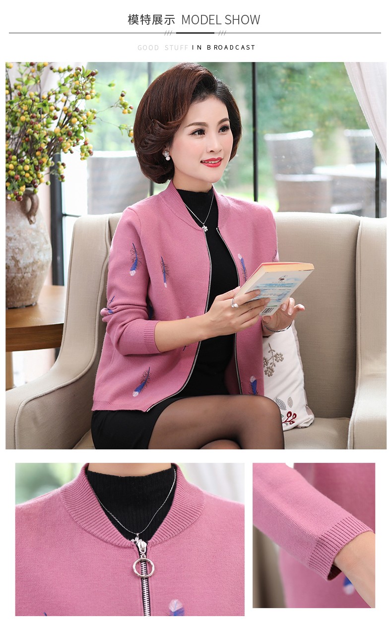 商品名称:芙悦中年妈妈装针织衫外套女春秋开衫中老年人女装2019新款秋装休闲毛衣夹克上衣FY08708 藏青色 2XL【130-140斤】