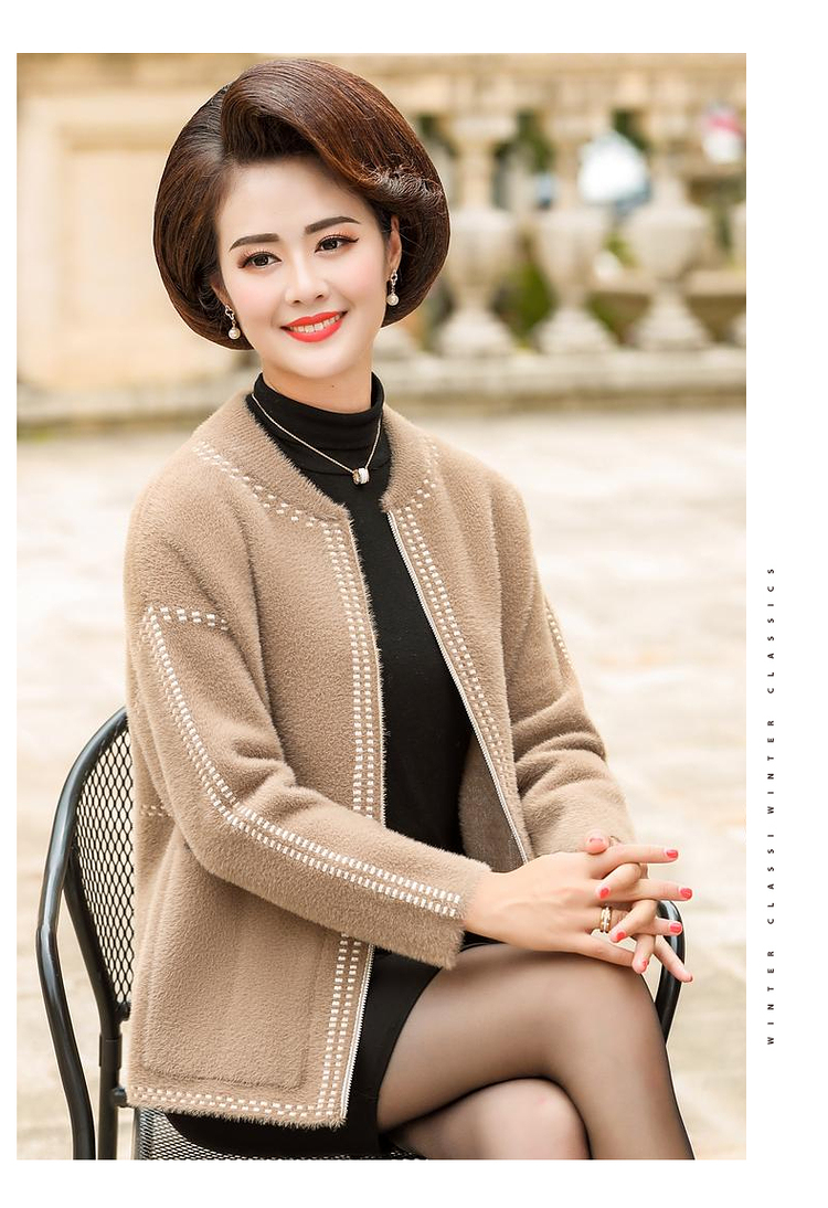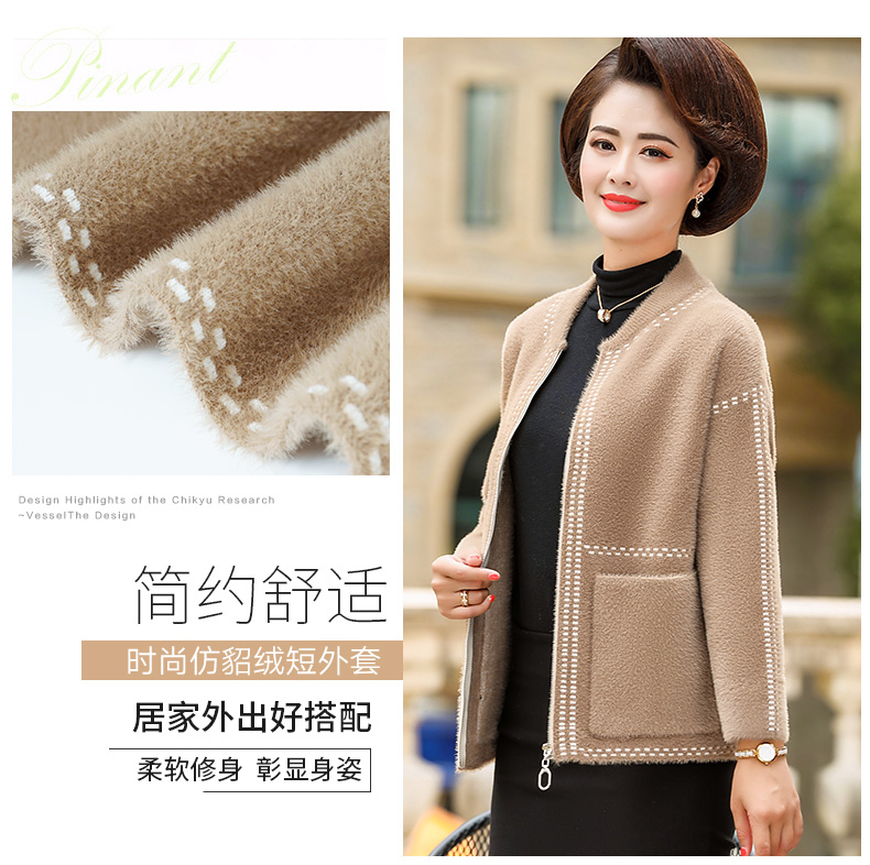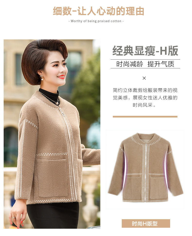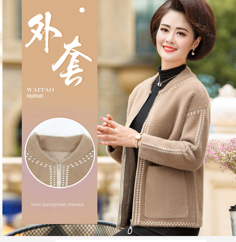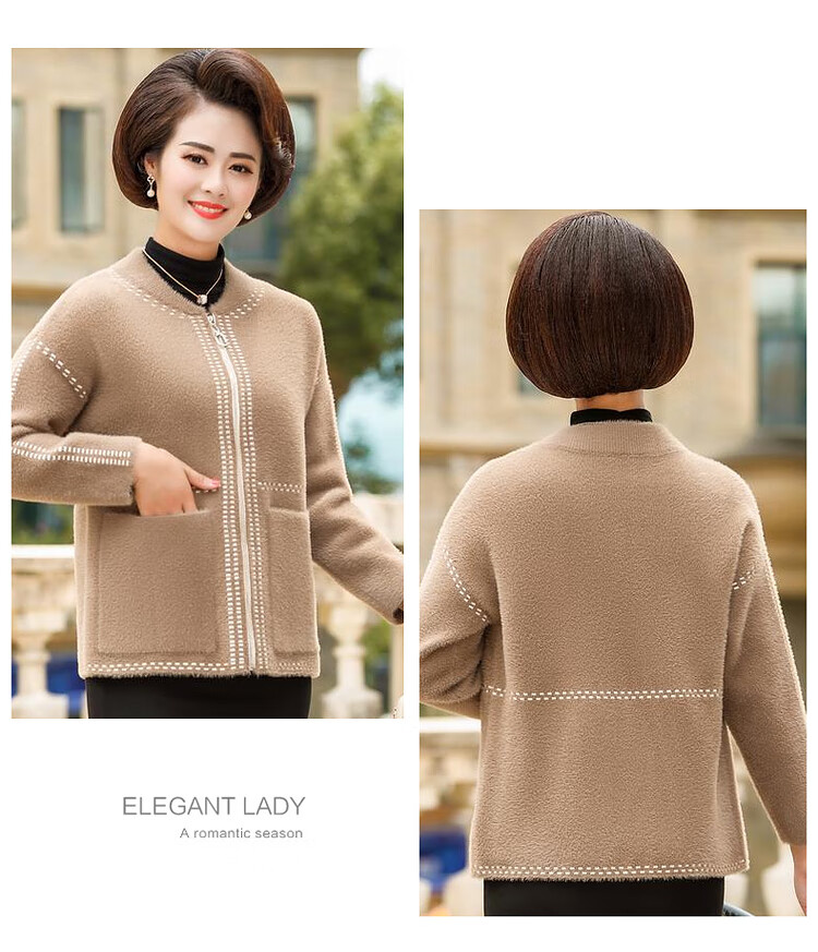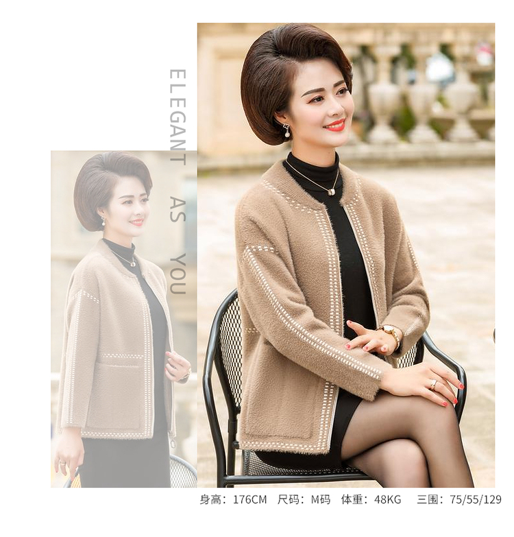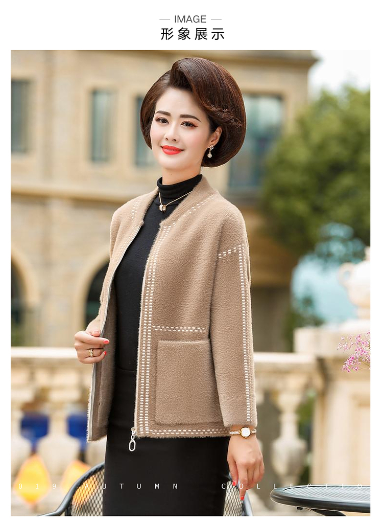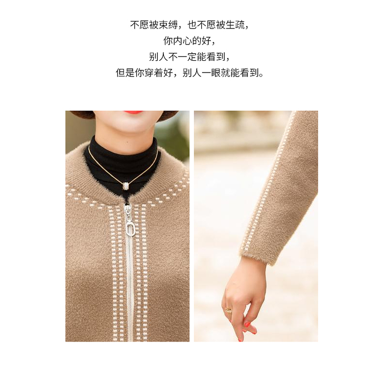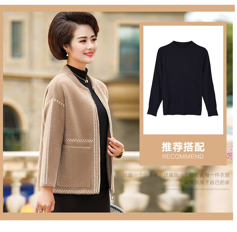 商品名称:阿洛娜中老年女春秋装外套2019新款中年妈妈洋气风衣薄款外穿上衣50岁季 驼色+毛衣 XL(建议120-135斤)