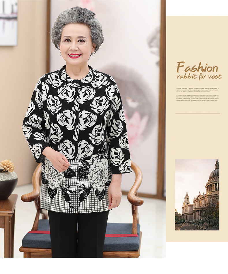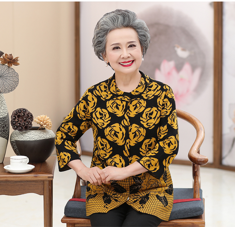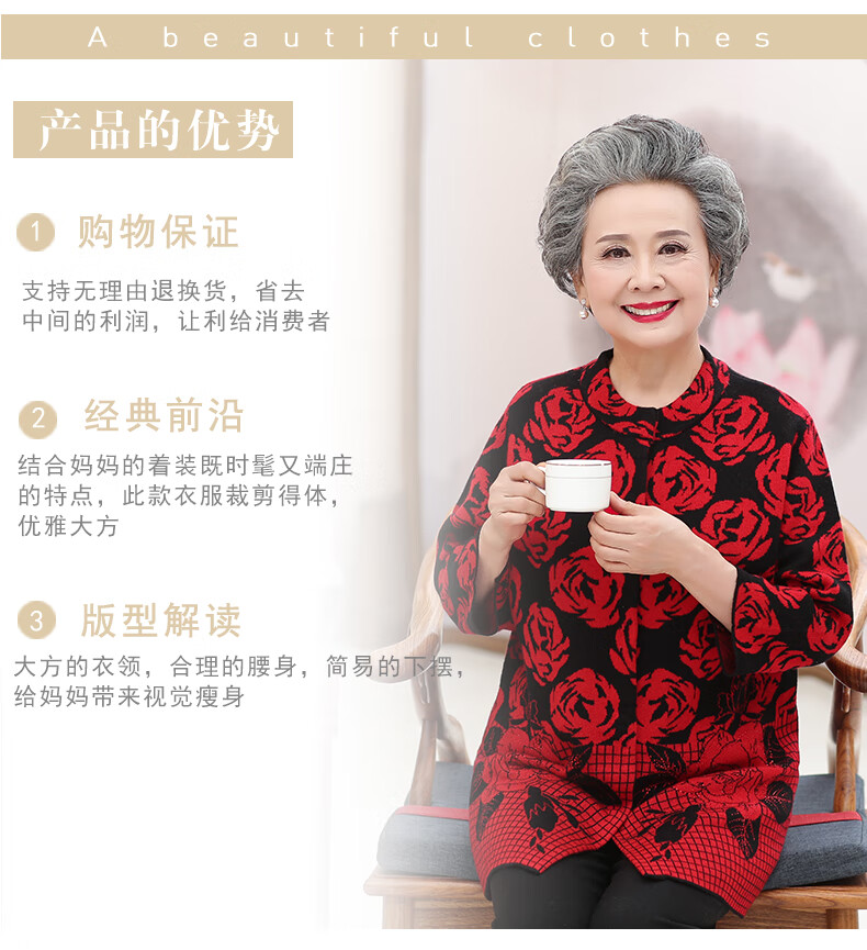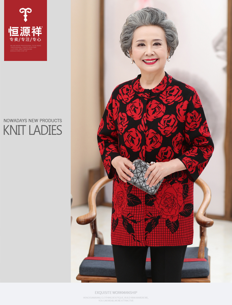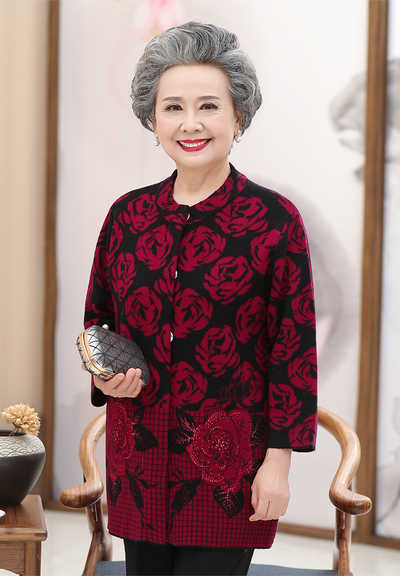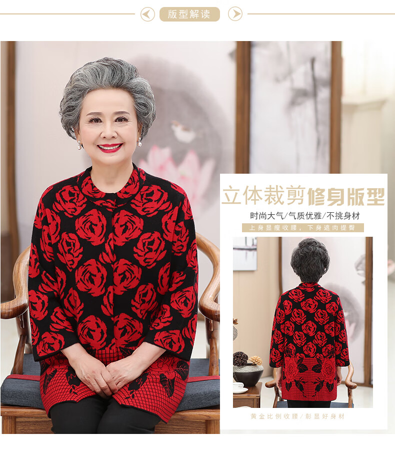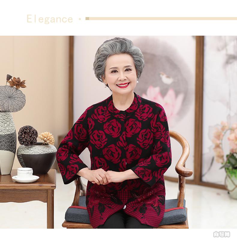 商品名称:中老年人秋冬外套女毛衣开衫奶奶装含羊毛针织衫中长款老太衫 枣红色 XXXXL