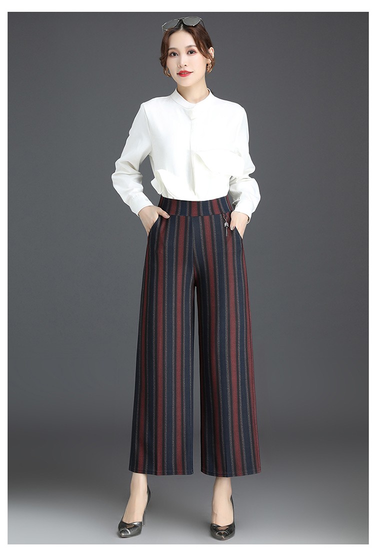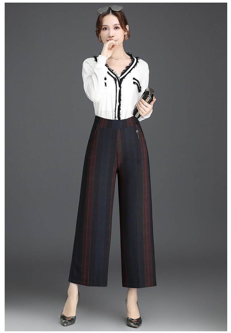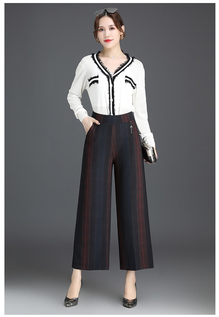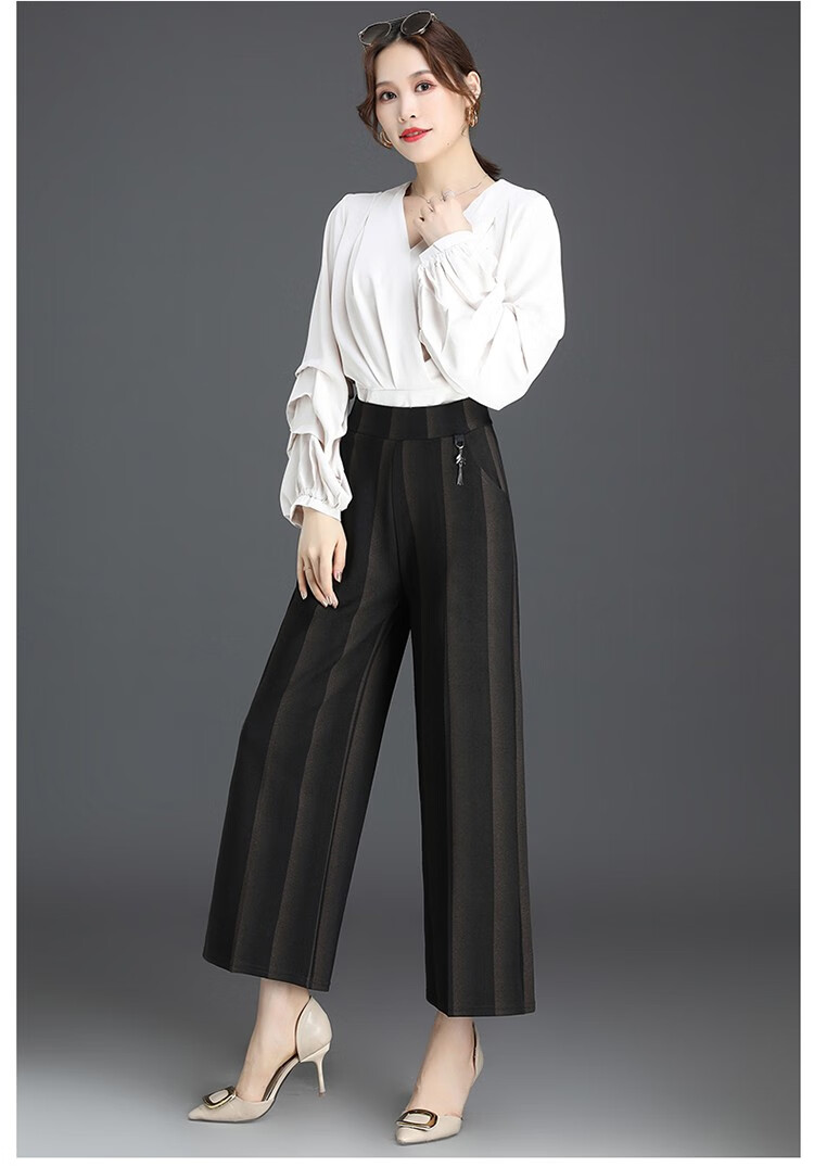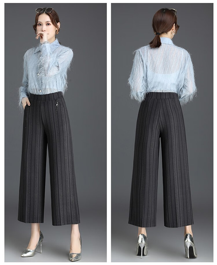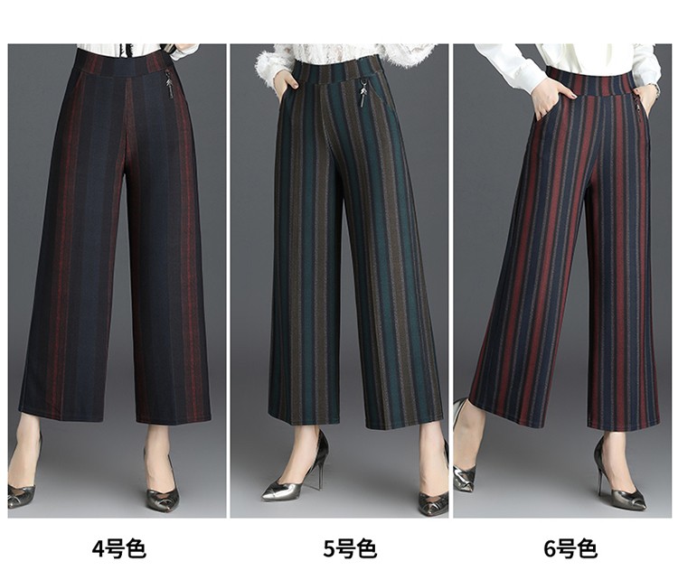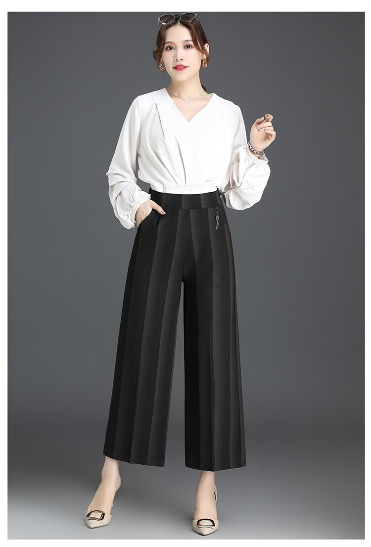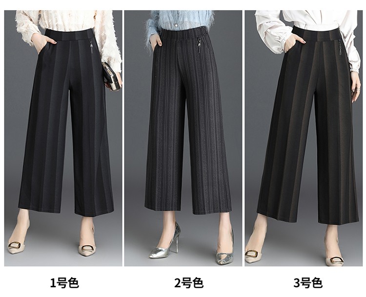 商品名称:妈妈装秋季阔腿裤九分裤大码时尚条纹甩裤2018新款中老年女裤休闲直筒裤大脚裤 2号色 4XL