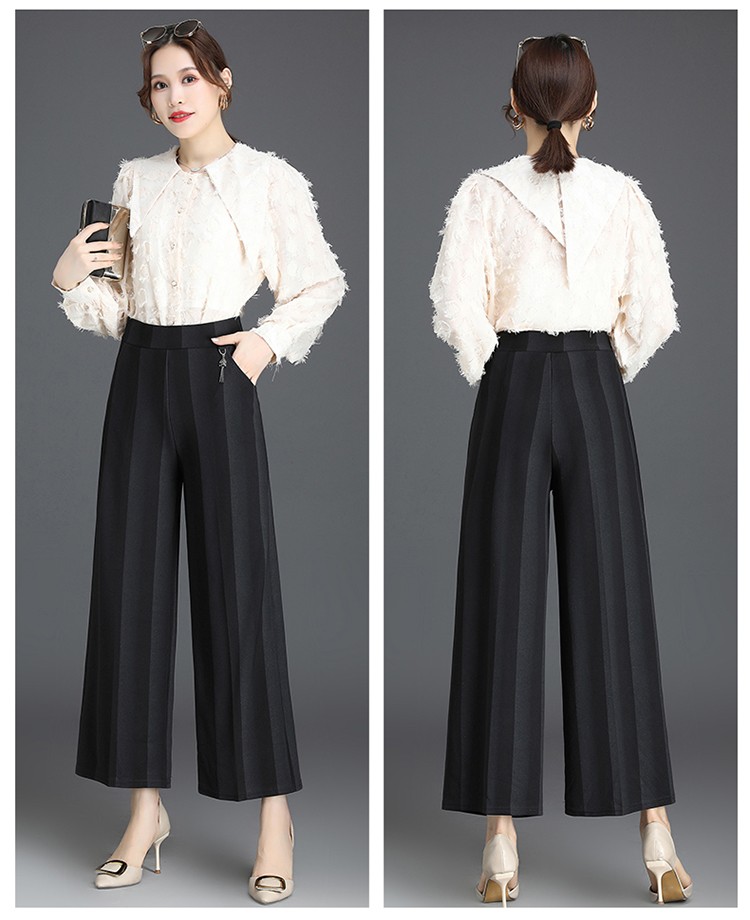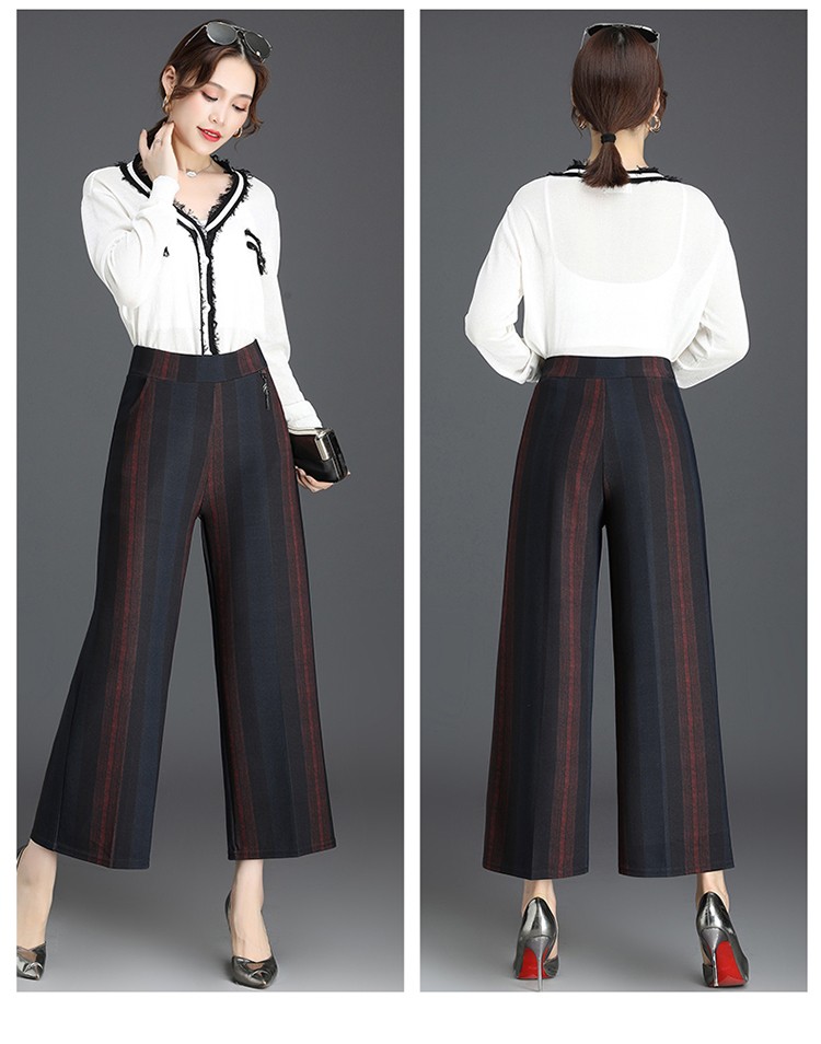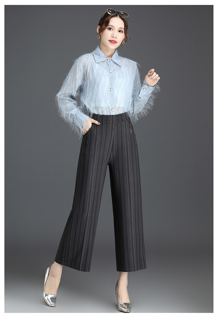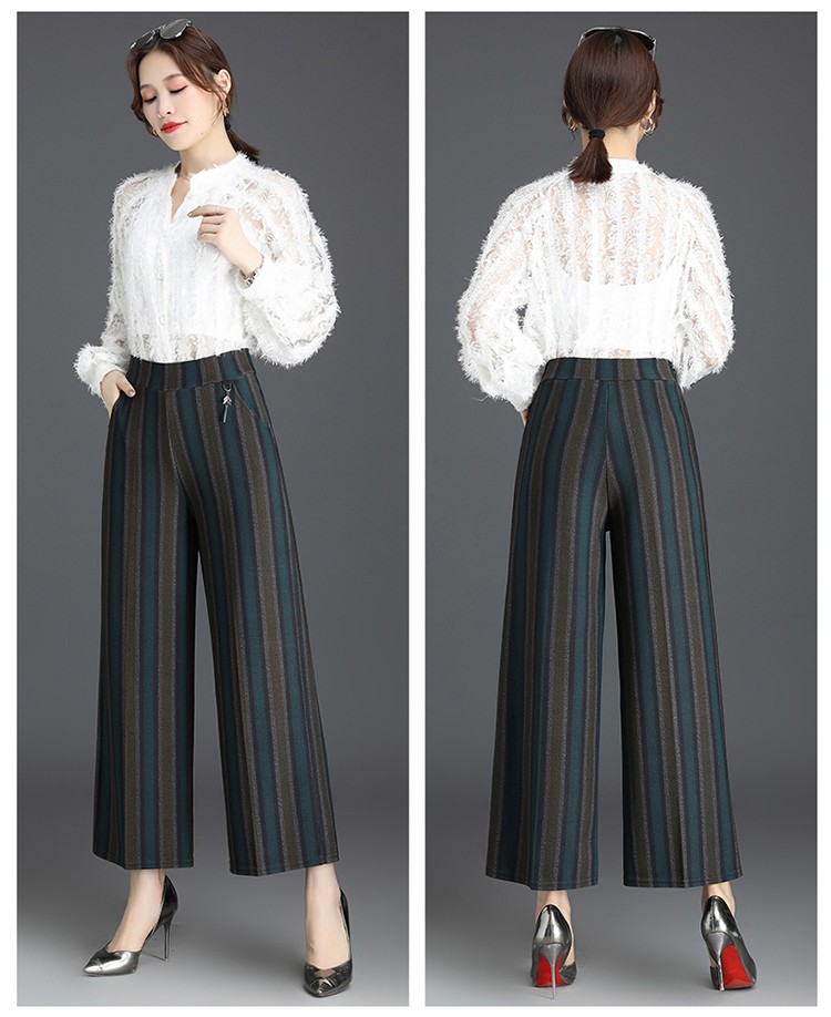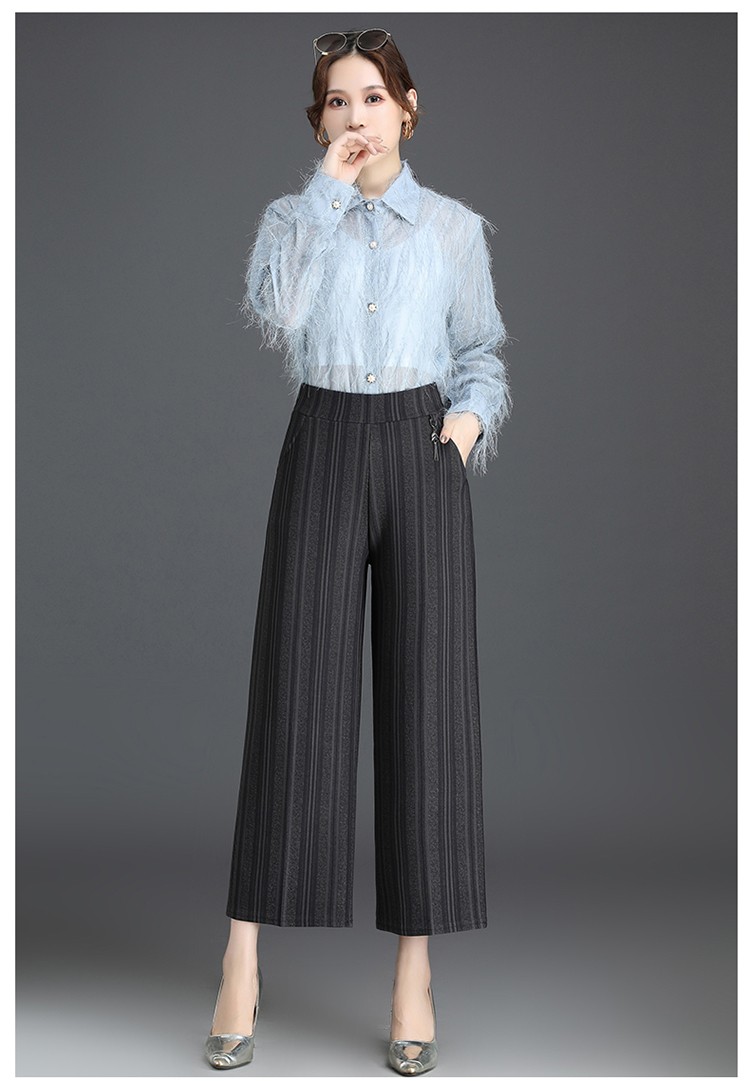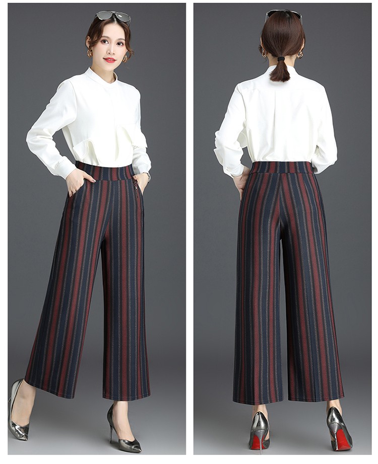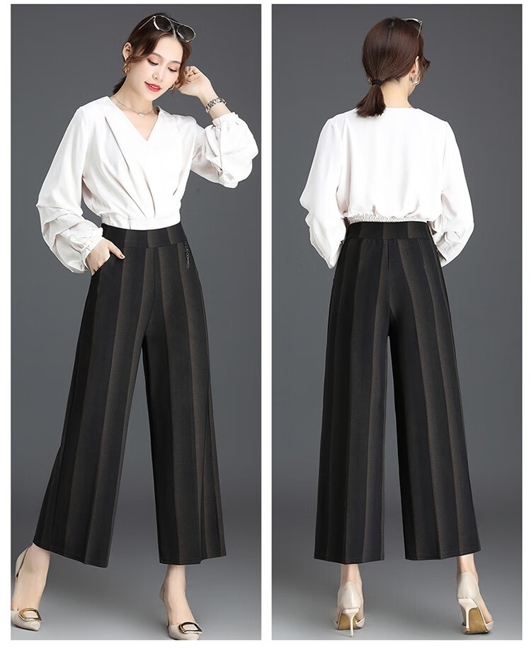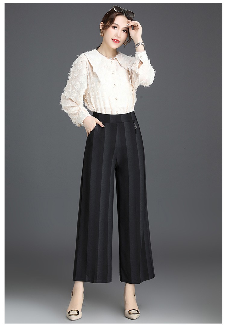 商品名称:妈妈装秋季阔腿裤九分裤大码时尚条纹甩裤2018新款中老年女裤休闲直筒裤大脚裤 2号色 4XL
