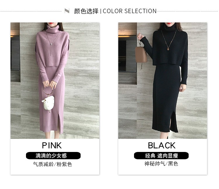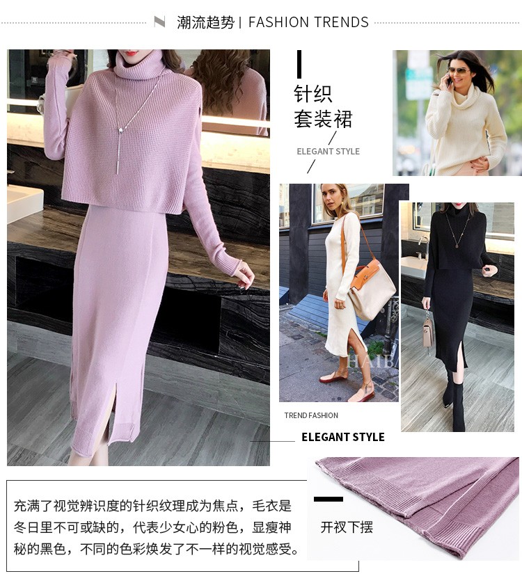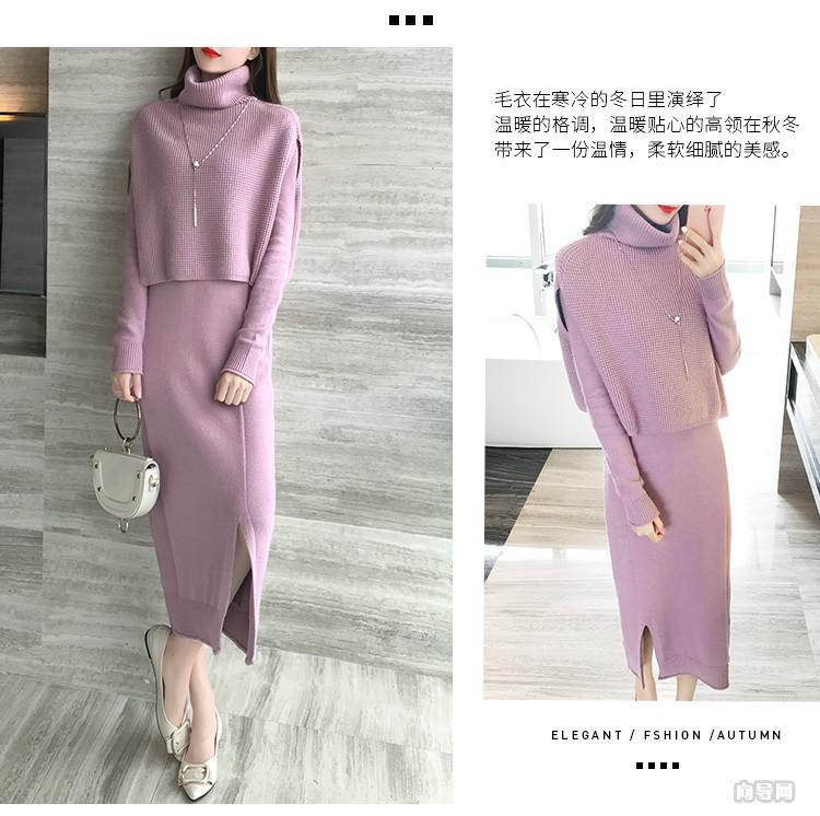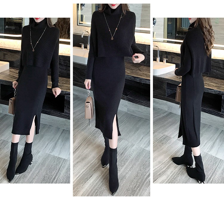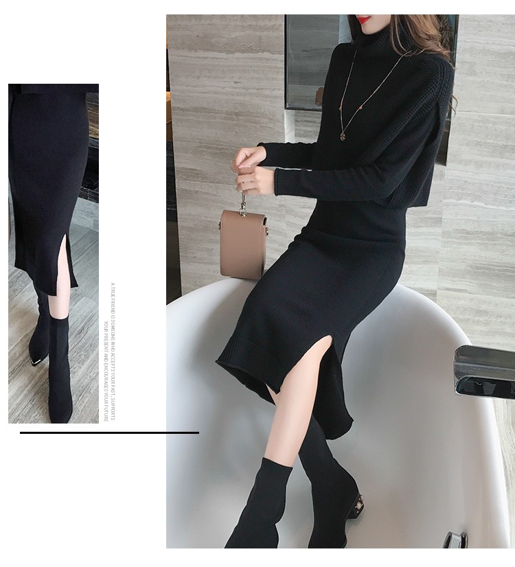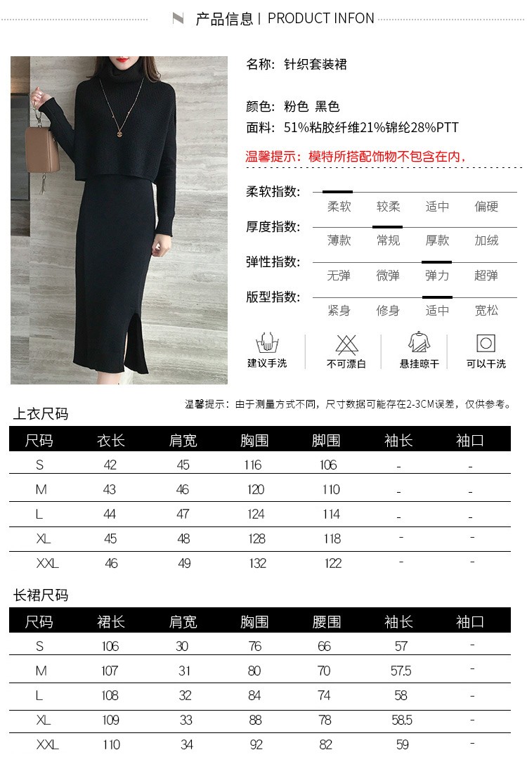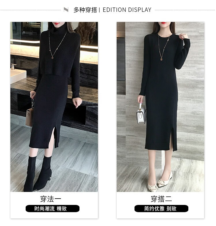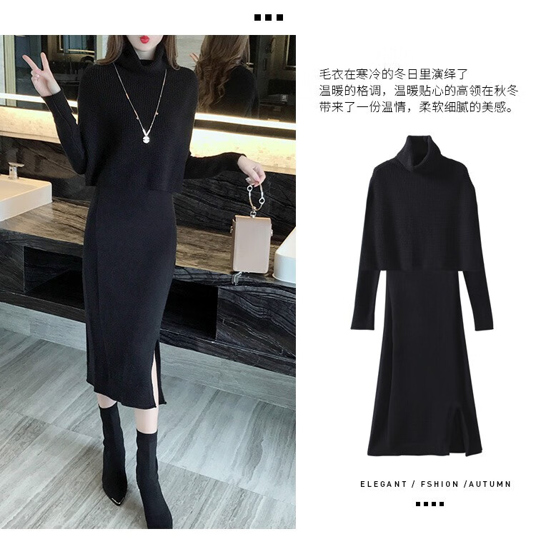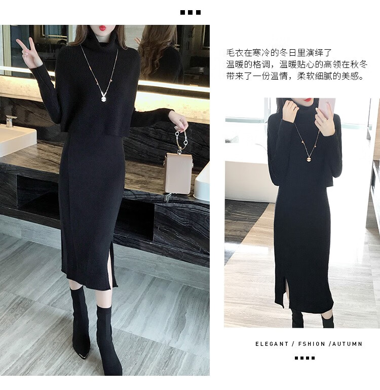 商品名称:针织连衣裙女秋冬2019新款秋季女装时尚套装女韩版加厚中长款毛衣裙子女两件套套装裙 黑色 S【80-100斤】