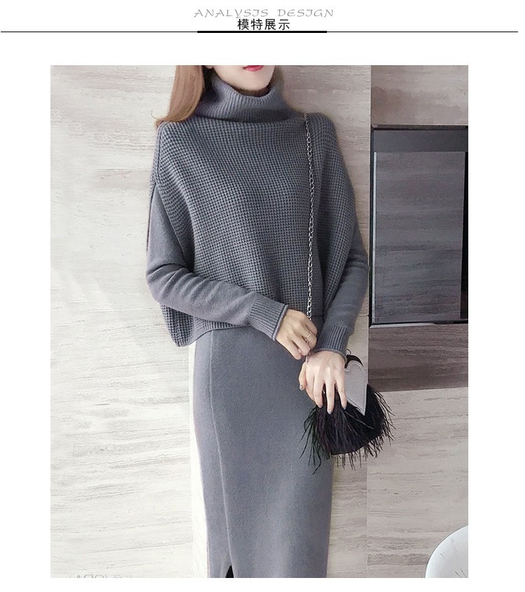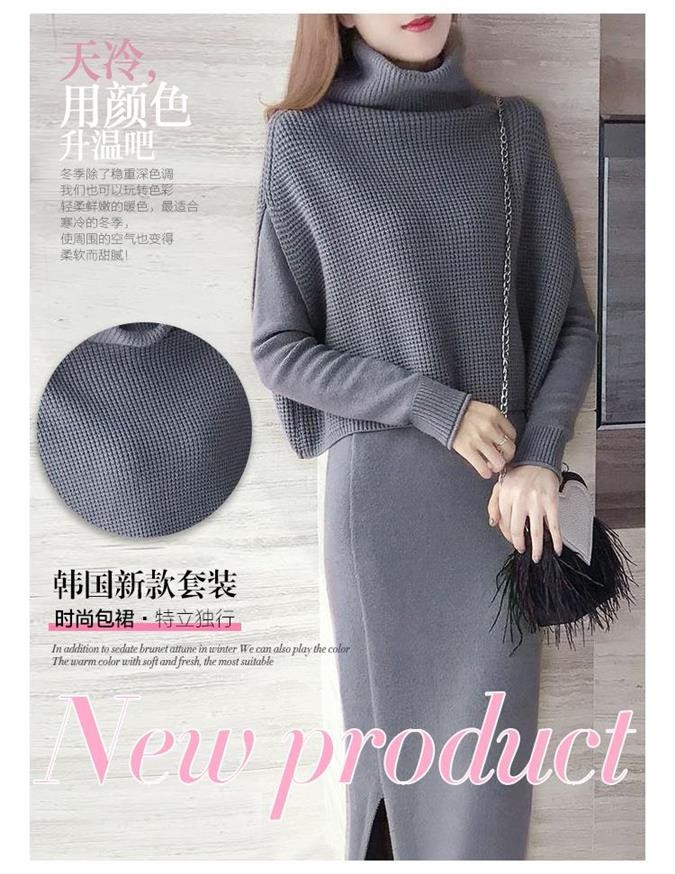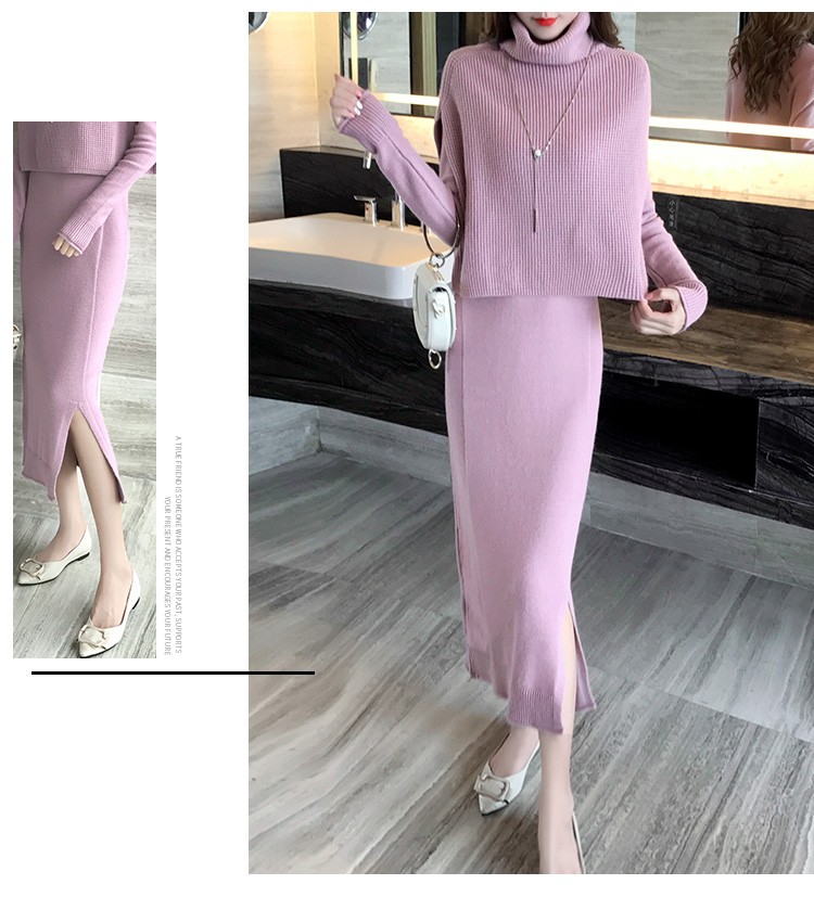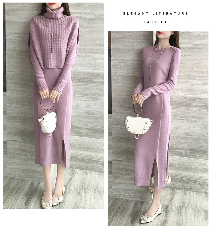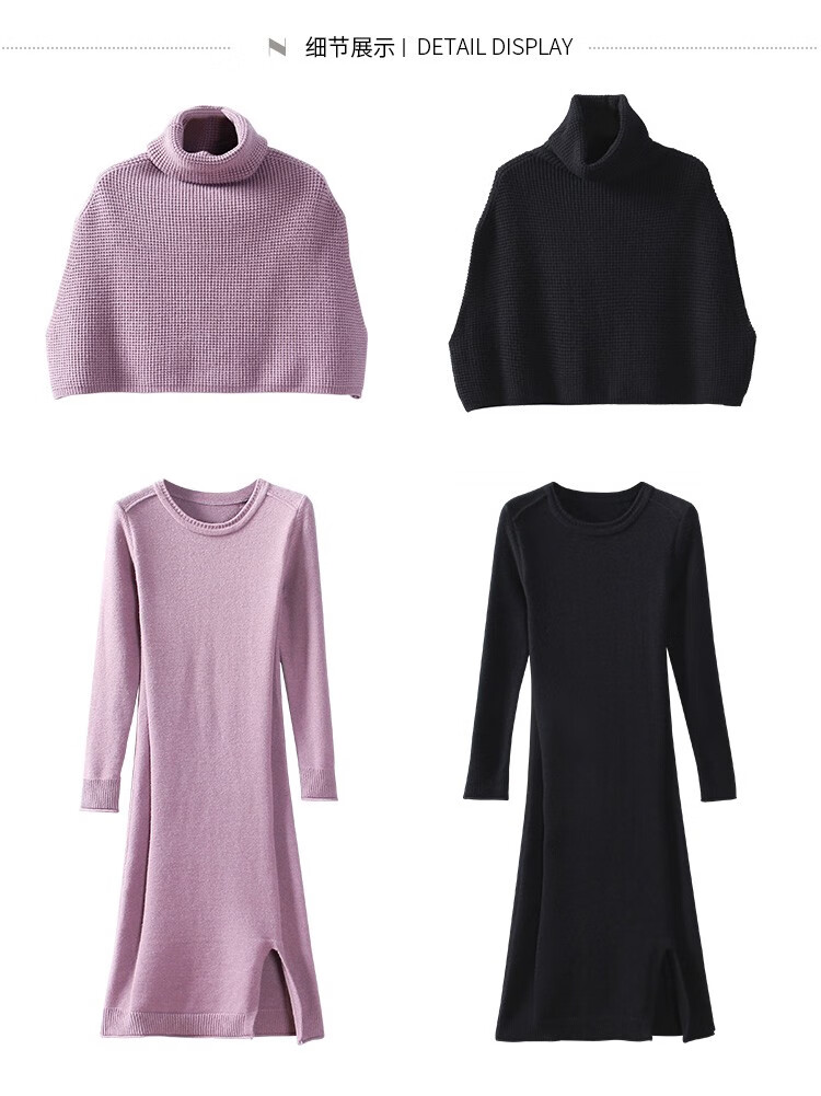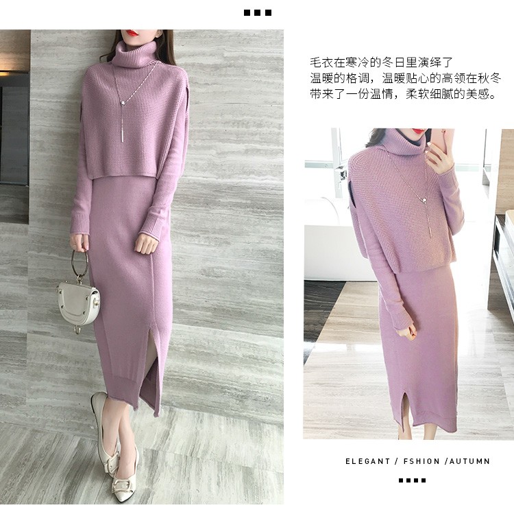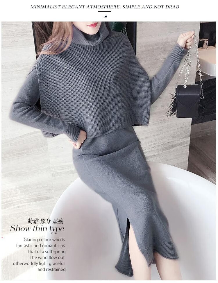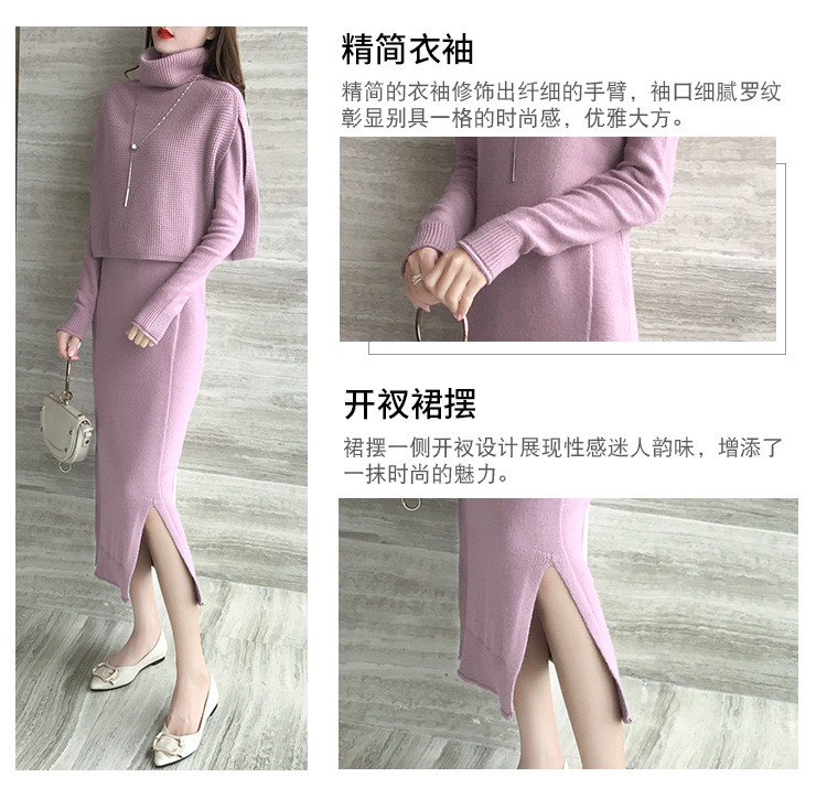 商品名称:针织连衣裙女秋冬2019新款秋季女装时尚套装女韩版加厚中长款毛衣裙子女两件套套装裙 黑色 S【80-100斤】