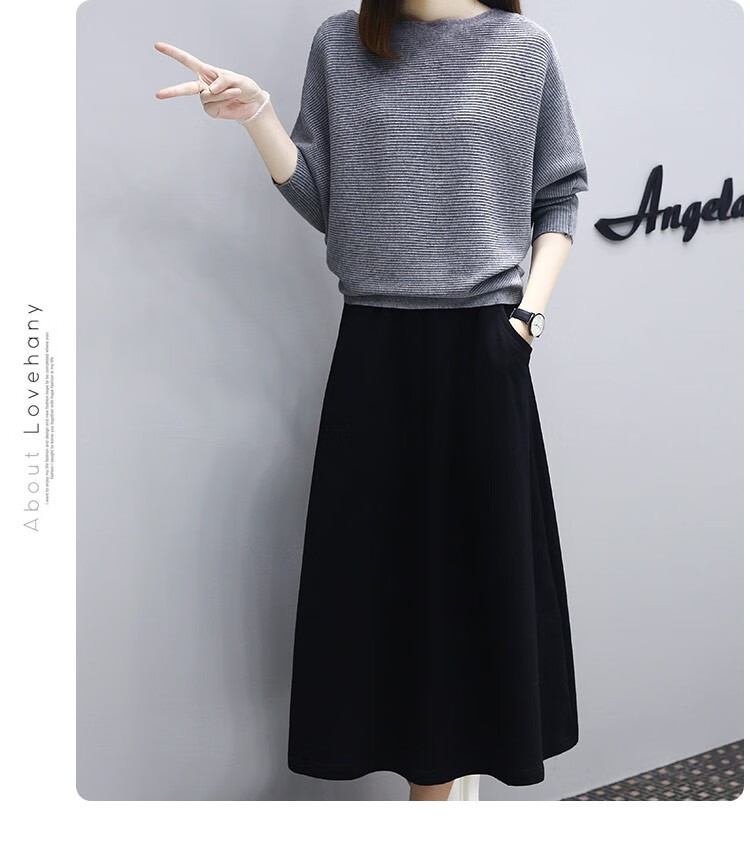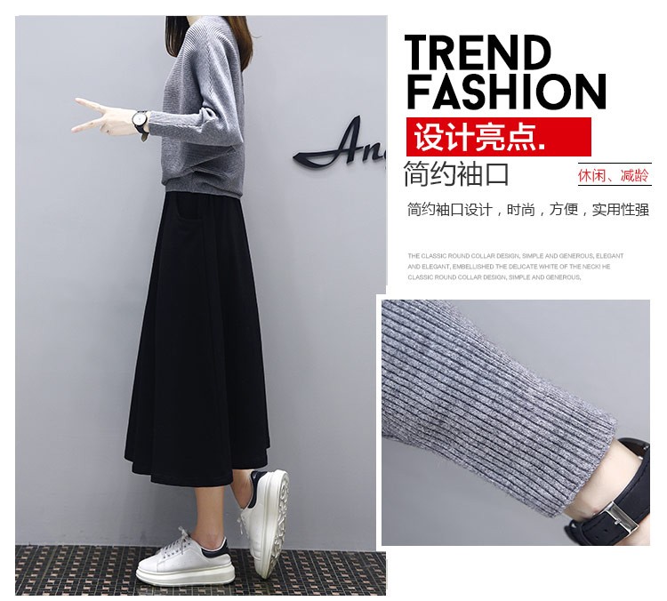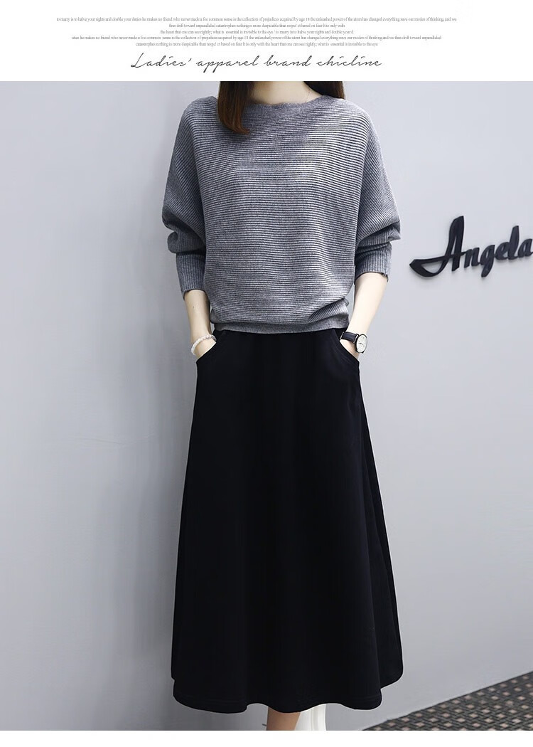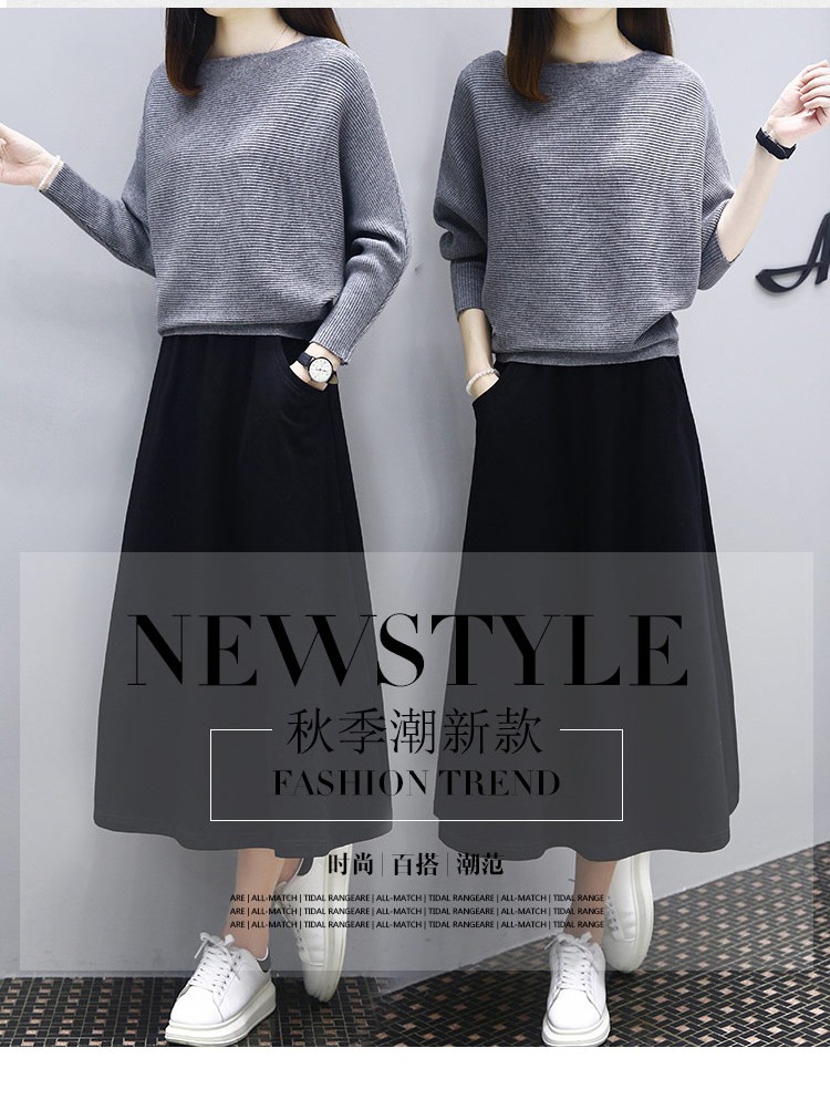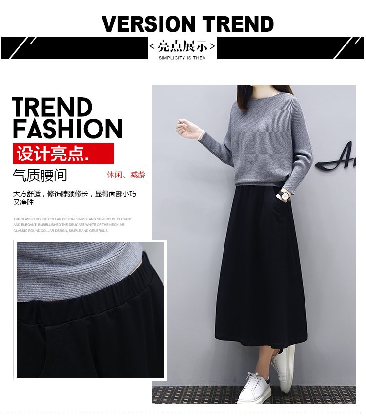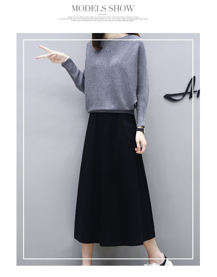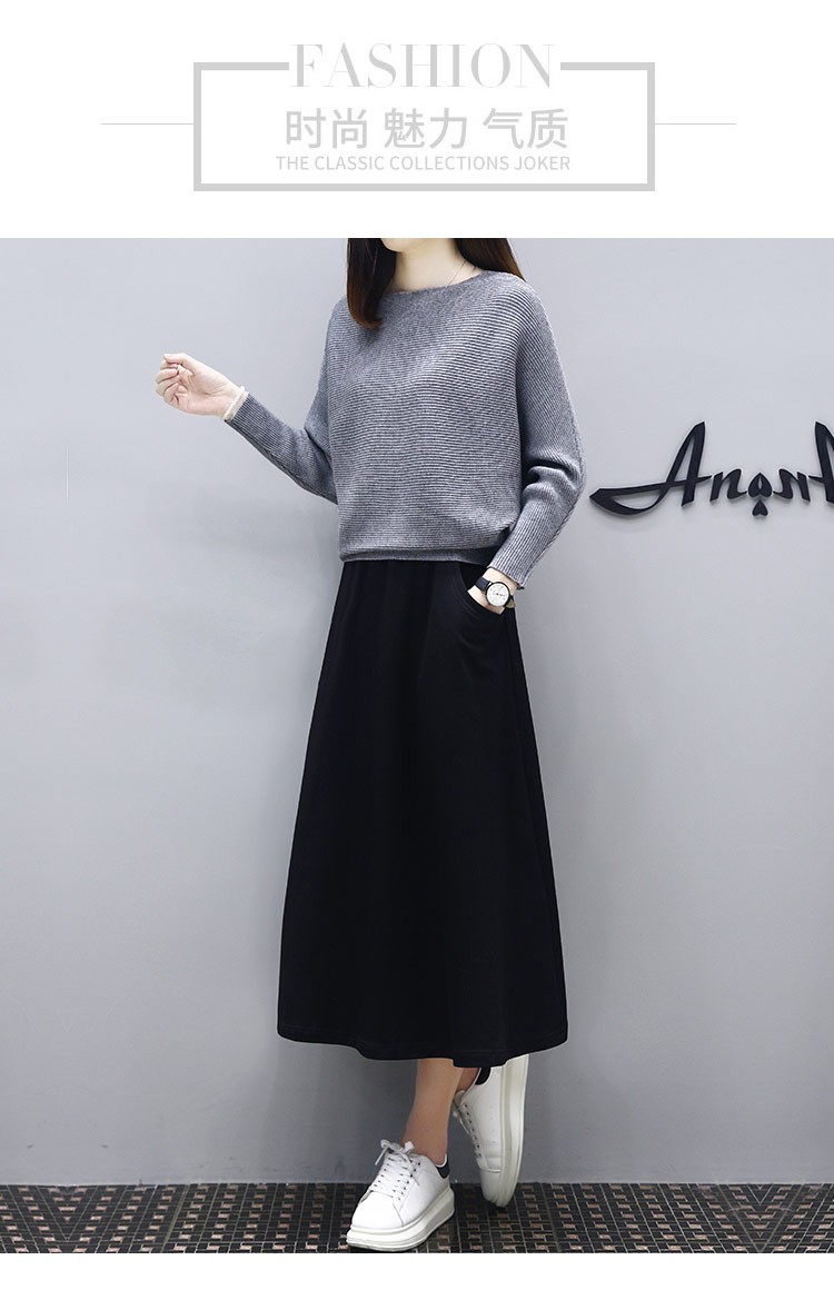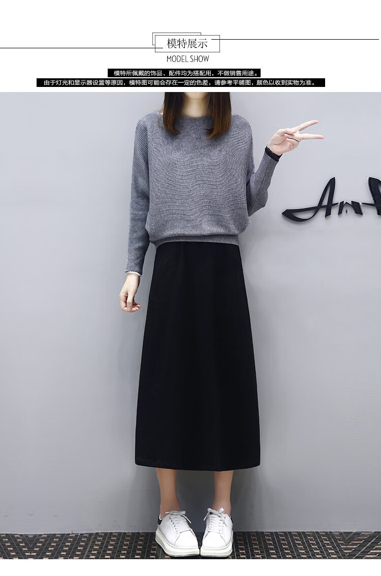 商品名称:连衣裙2019秋季女装新款韩版长袖时尚套装女休闲秋天大码衣服中年女士裙子半身裙针织毛衣两件套装裙 图片色 M