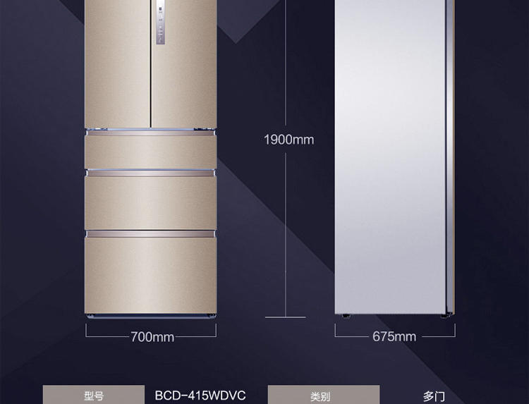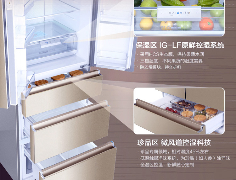 海尔(Haier) BCD-415WDVC 415升 多门冰箱 干湿分储 变频1级能效 全温区变温 香槟金
