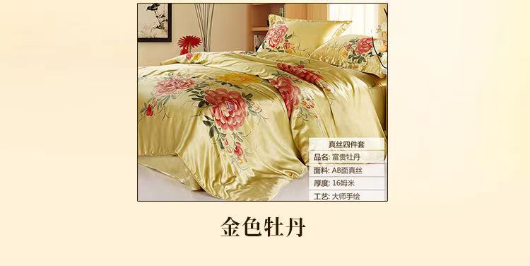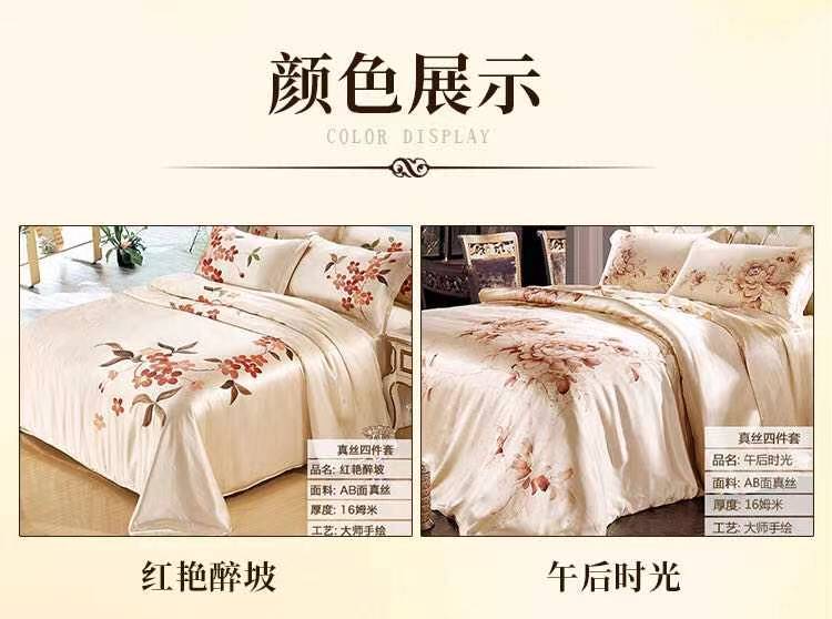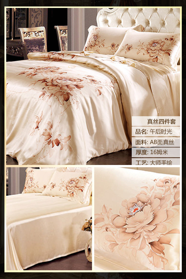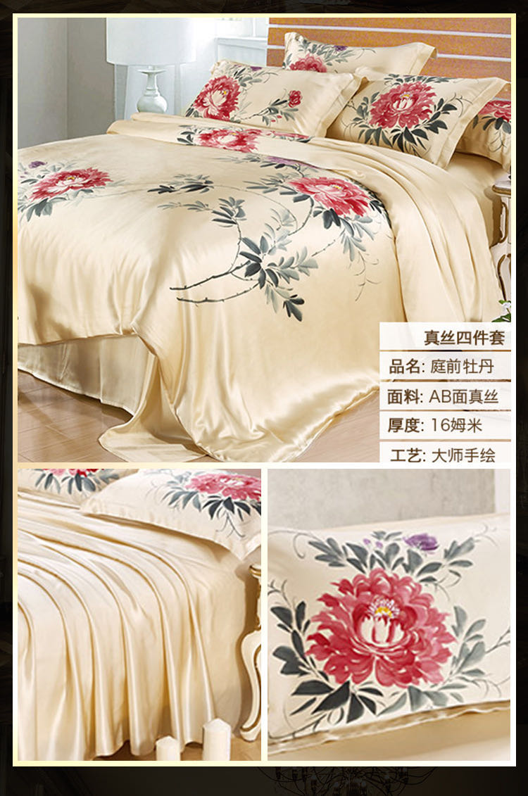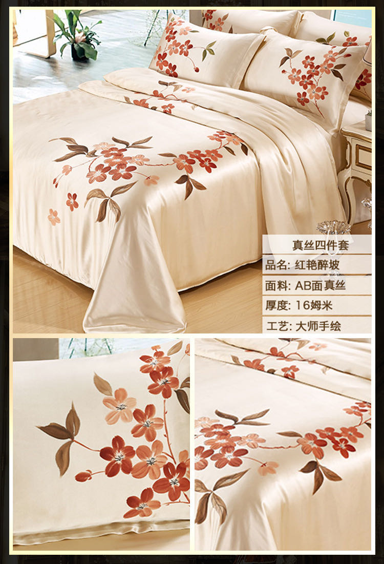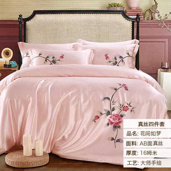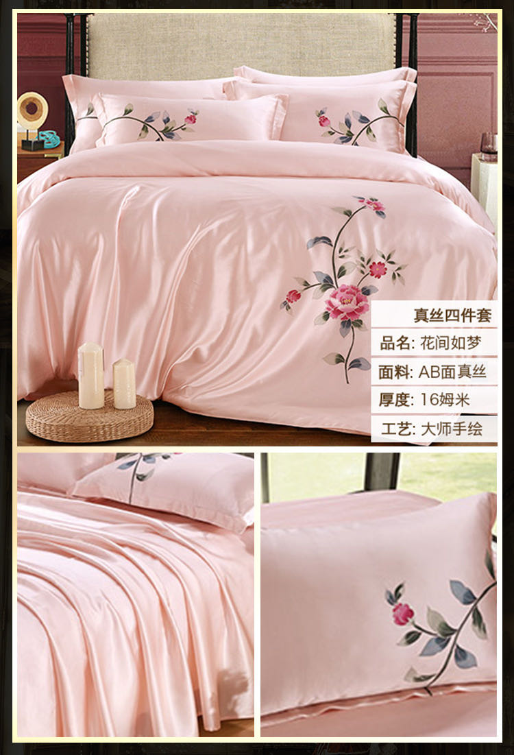 花卉花边桑蚕丝四件套 手绘真丝四件套床上用品厂家供货代发