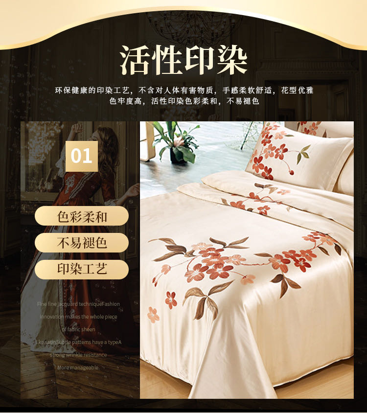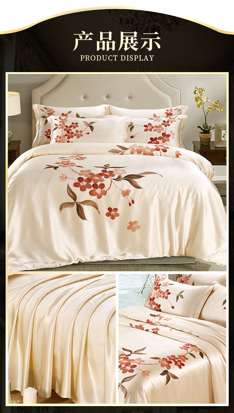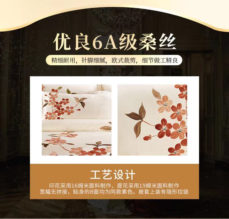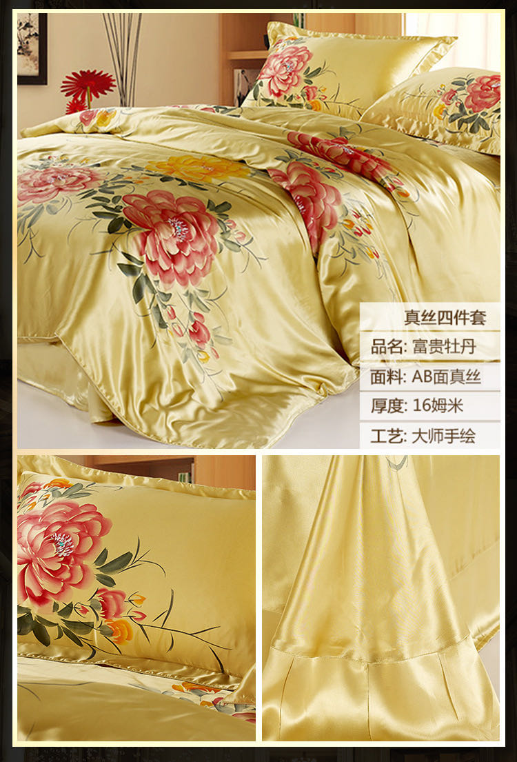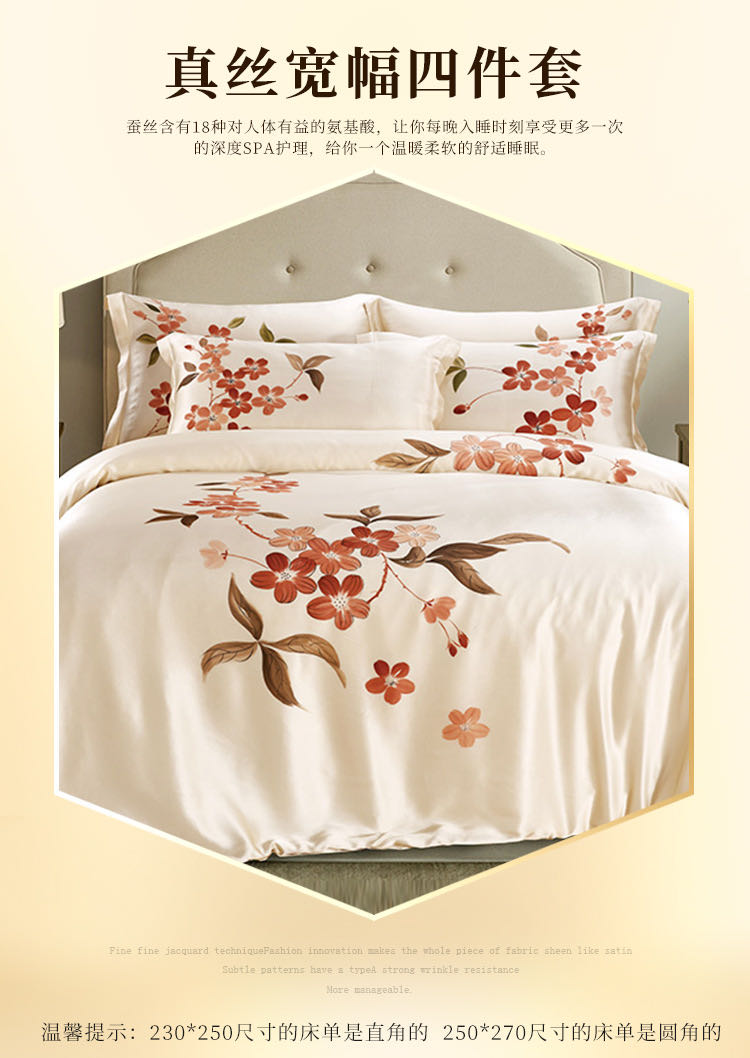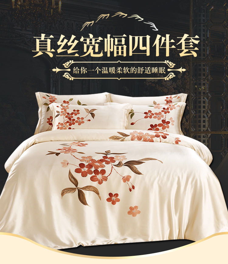 花卉花边桑蚕丝四件套 手绘真丝四件套床上用品厂家供货代发