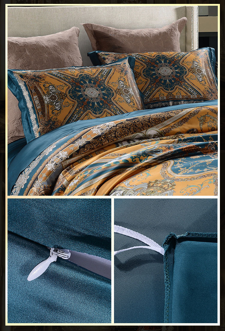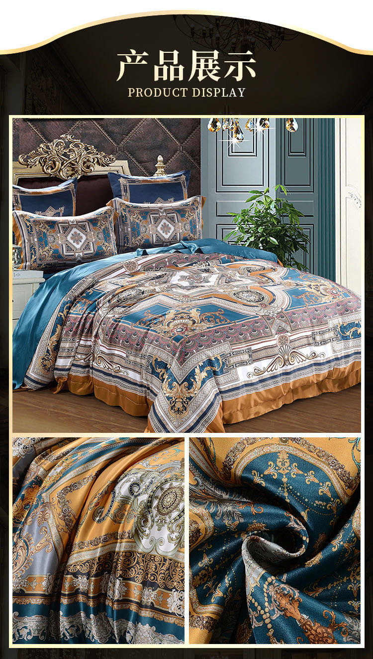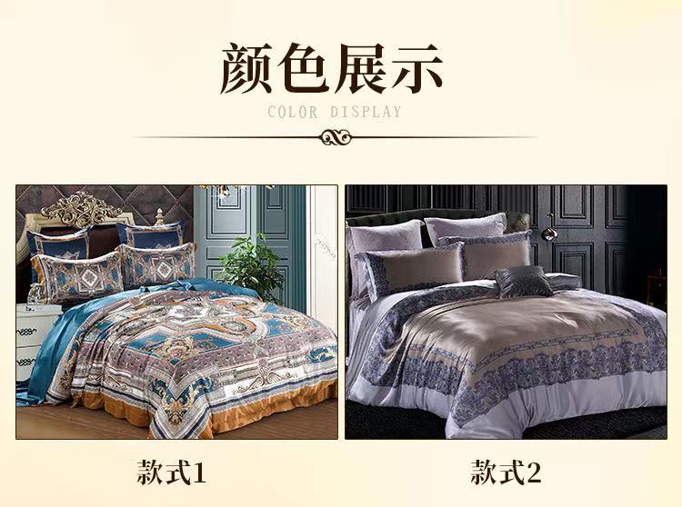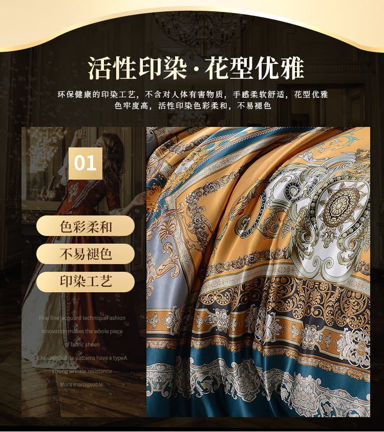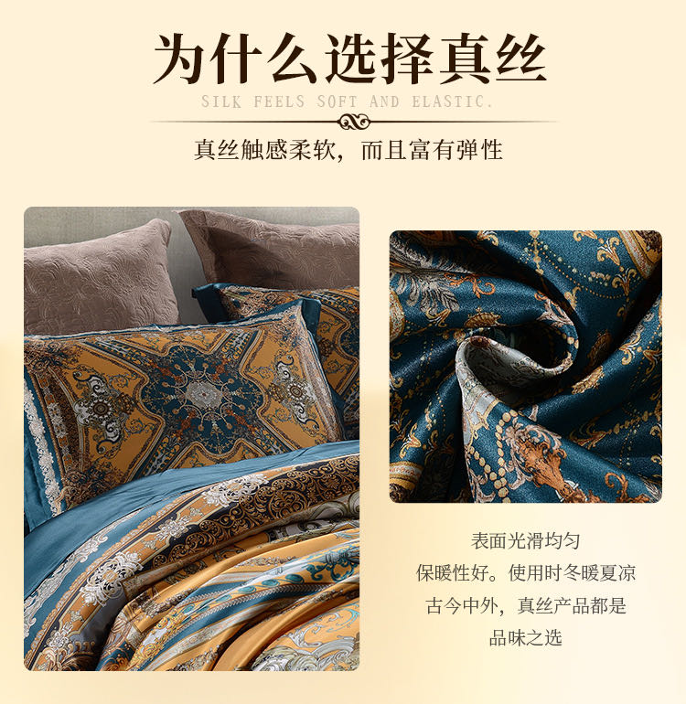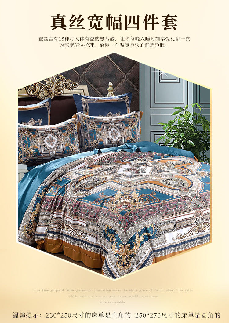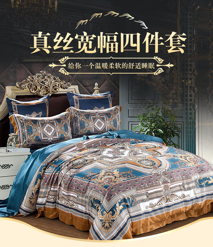 真丝喷绘四件套简约床上用品桑蚕丝真丝四件套厂家供货代发