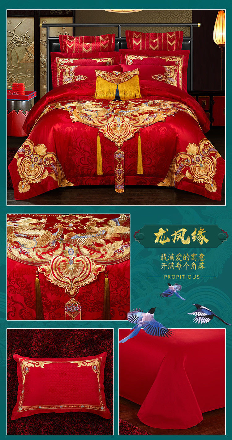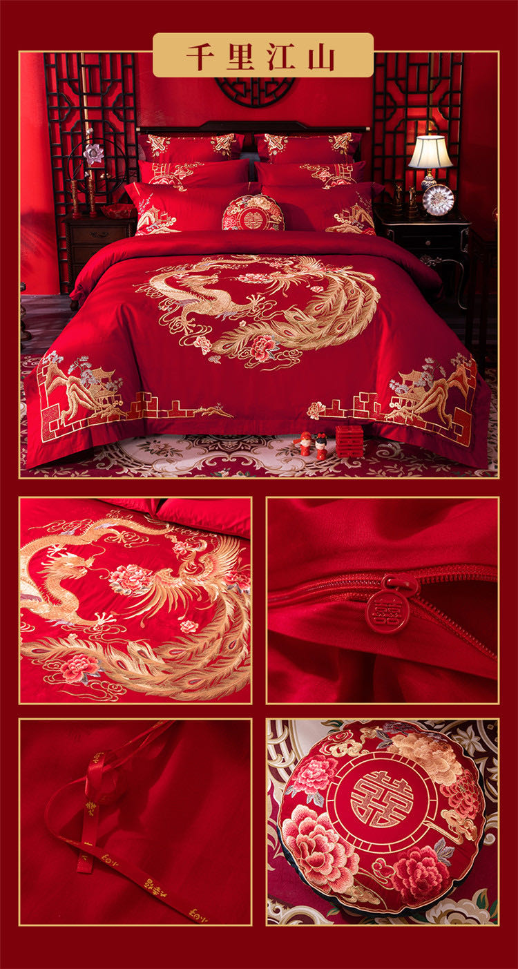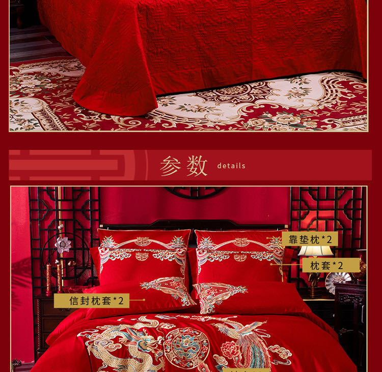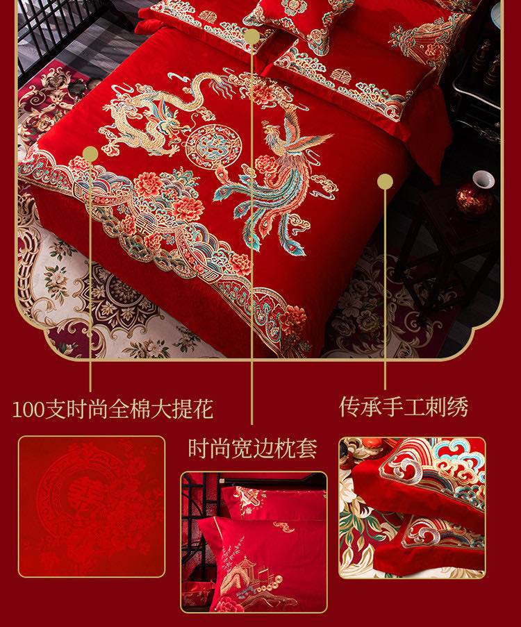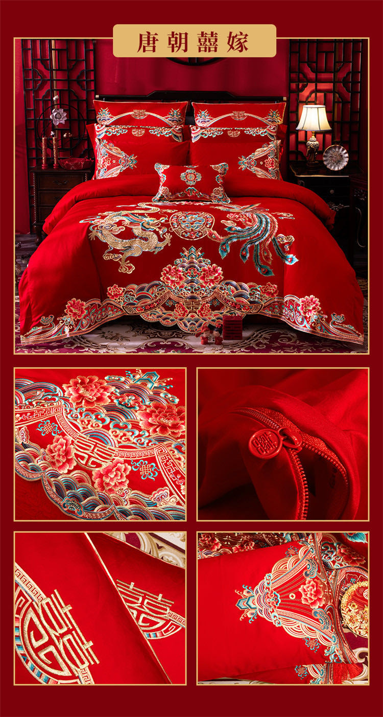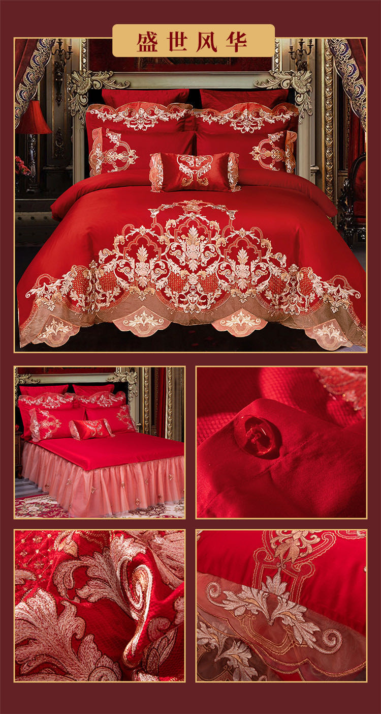 大红全棉刺绣婚庆四件套纯棉绣花结婚多件套厂家供货代发