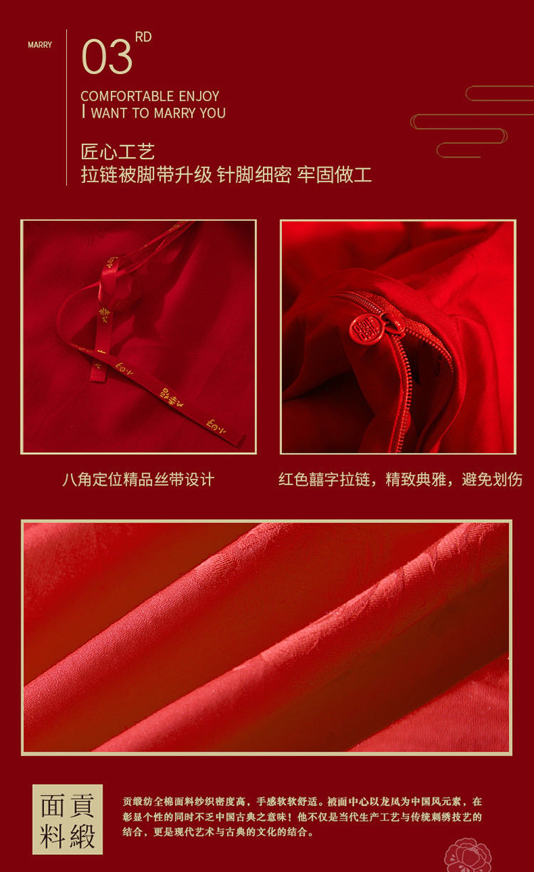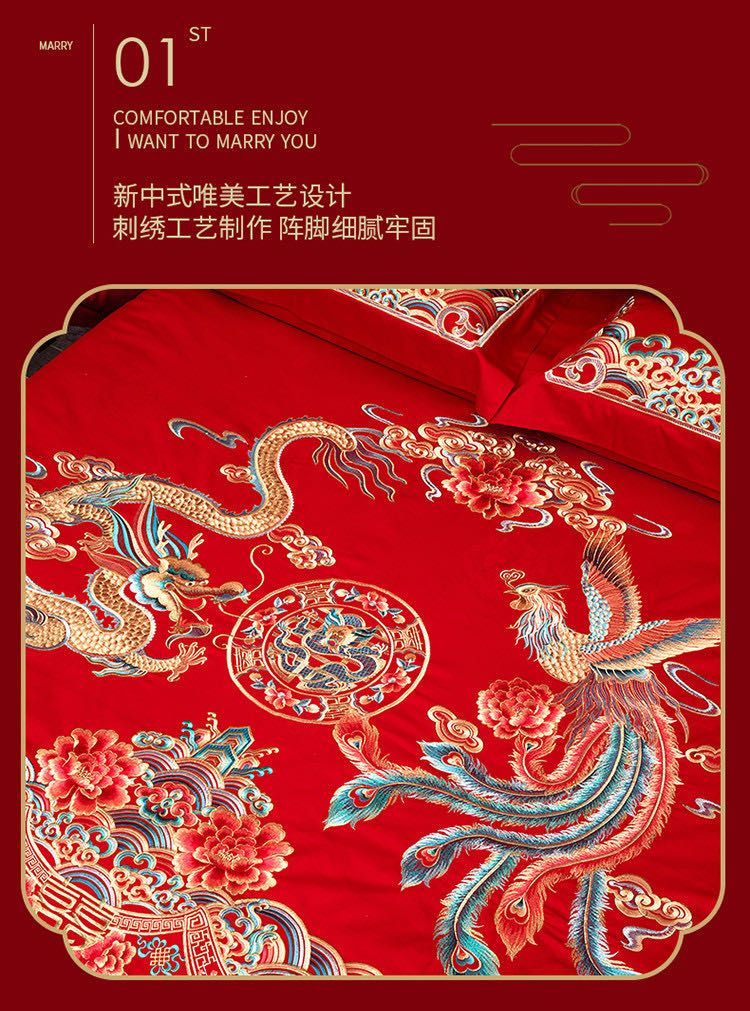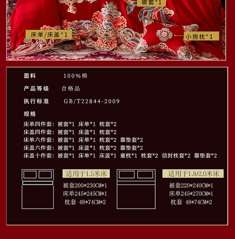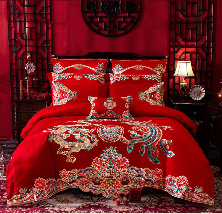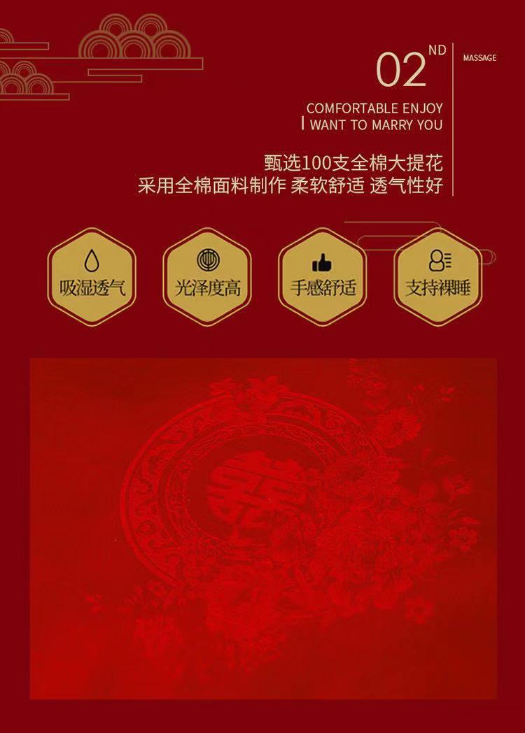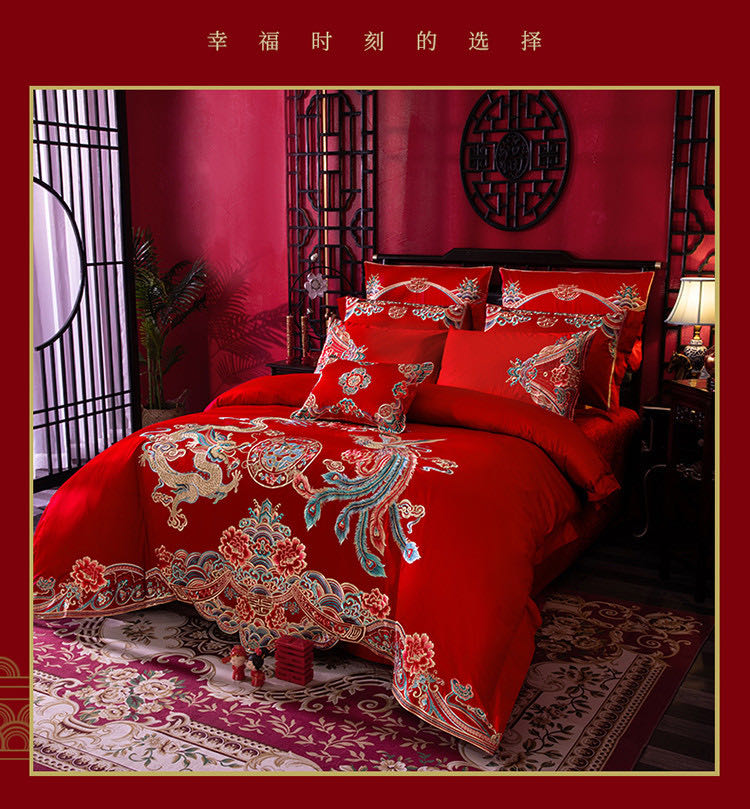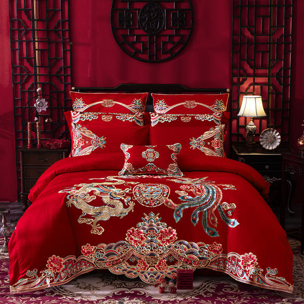 大红全棉刺绣婚庆四件套纯棉绣花结婚多件套厂家供货代发