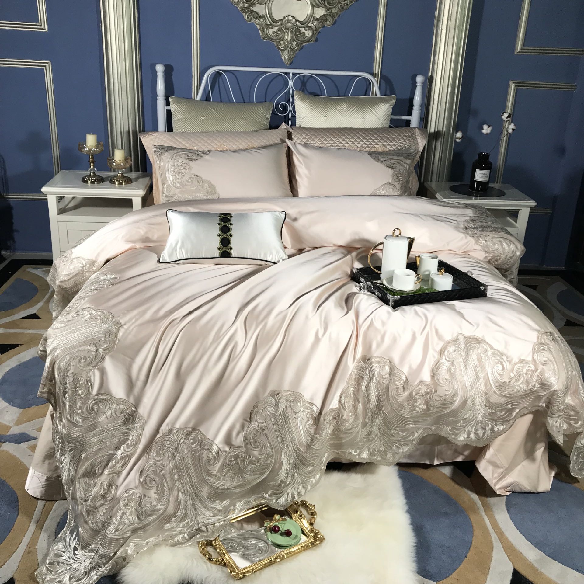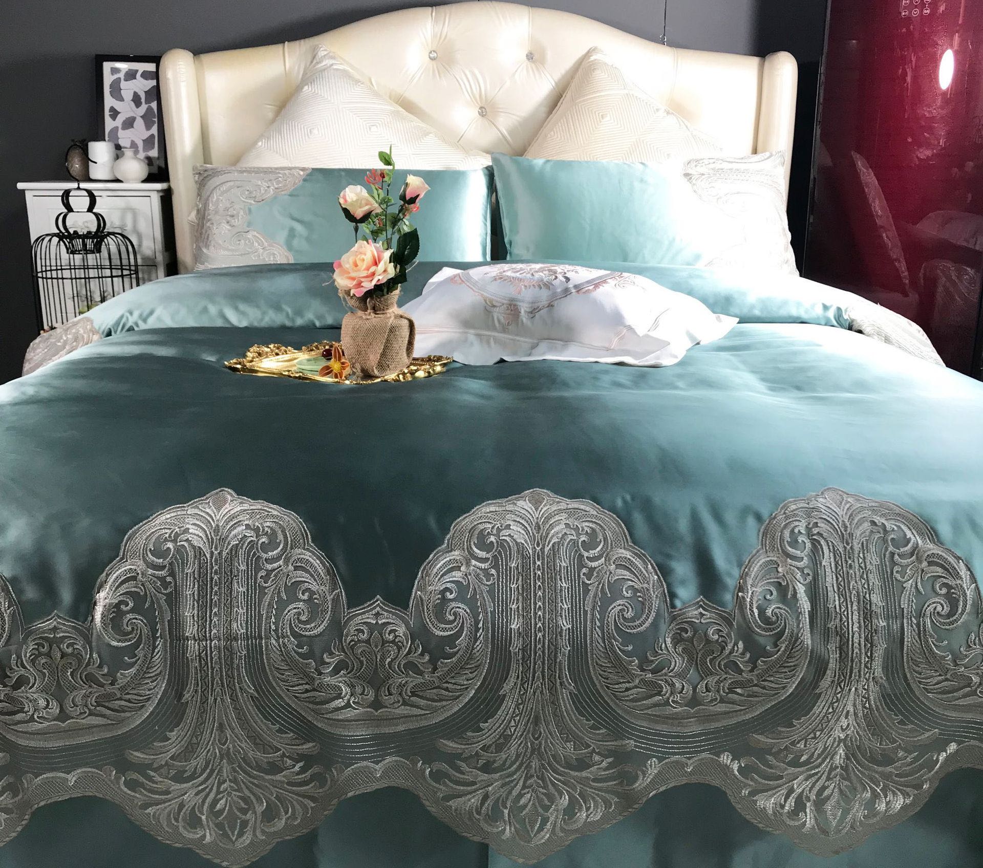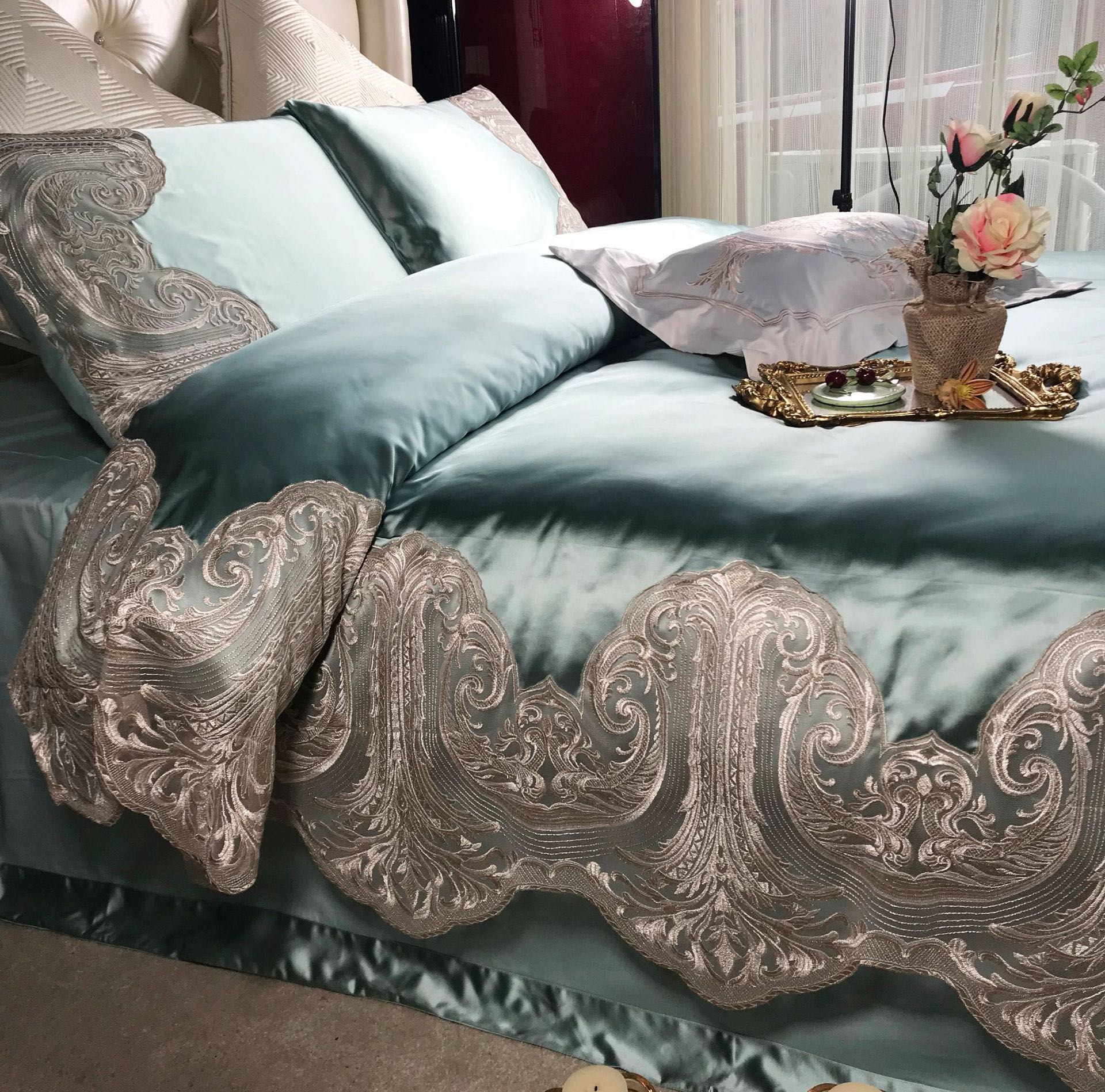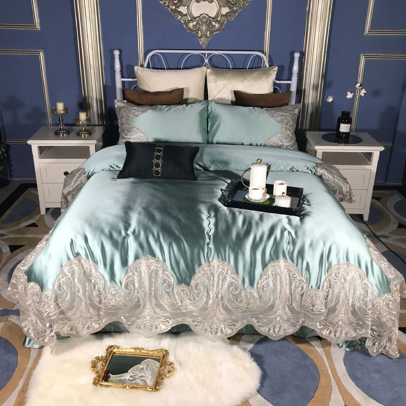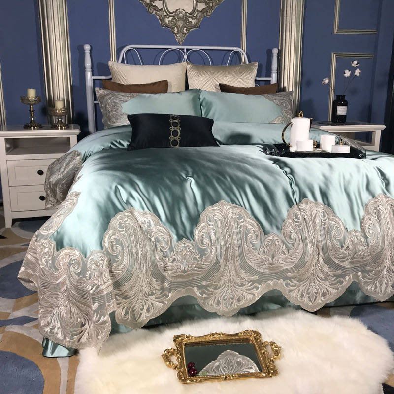欧式真丝棉四件套全棉纯棉贡缎蕾丝花边定制家纺床厂家供货代发