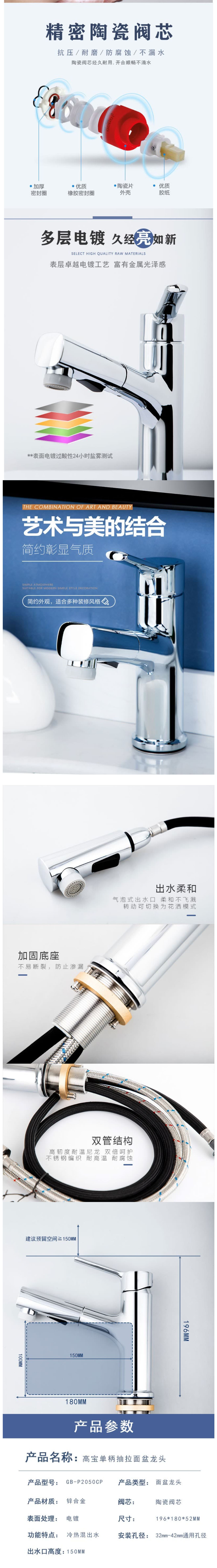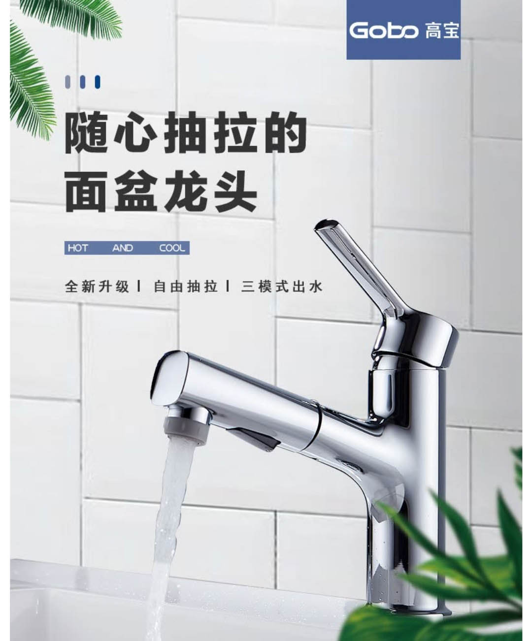 Gobo面盆水龙头防溅水龙头单孔多功能冷热水龙头抽拉式洗手盆自由旋转卫生间家用 B款三功能出水
