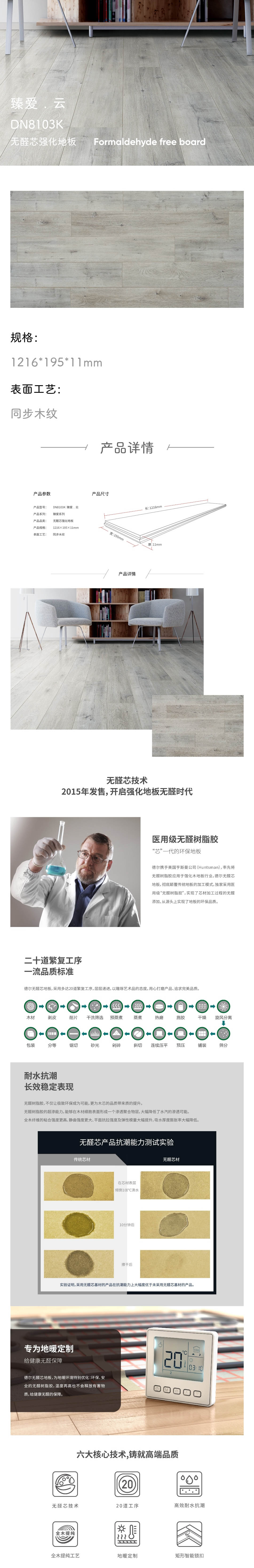臻爱﹒云 DN8103K 无醛芯强化地板 Formaldehyde free board