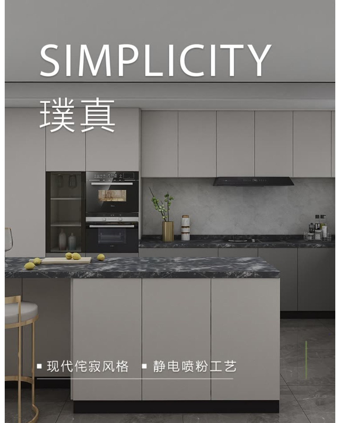 我乐 璞真系列厨柜定制 厨房整体橱柜 石英石台面简约开放灶台一体式单米价 1米地柜+1米台面+0.5米吊柜