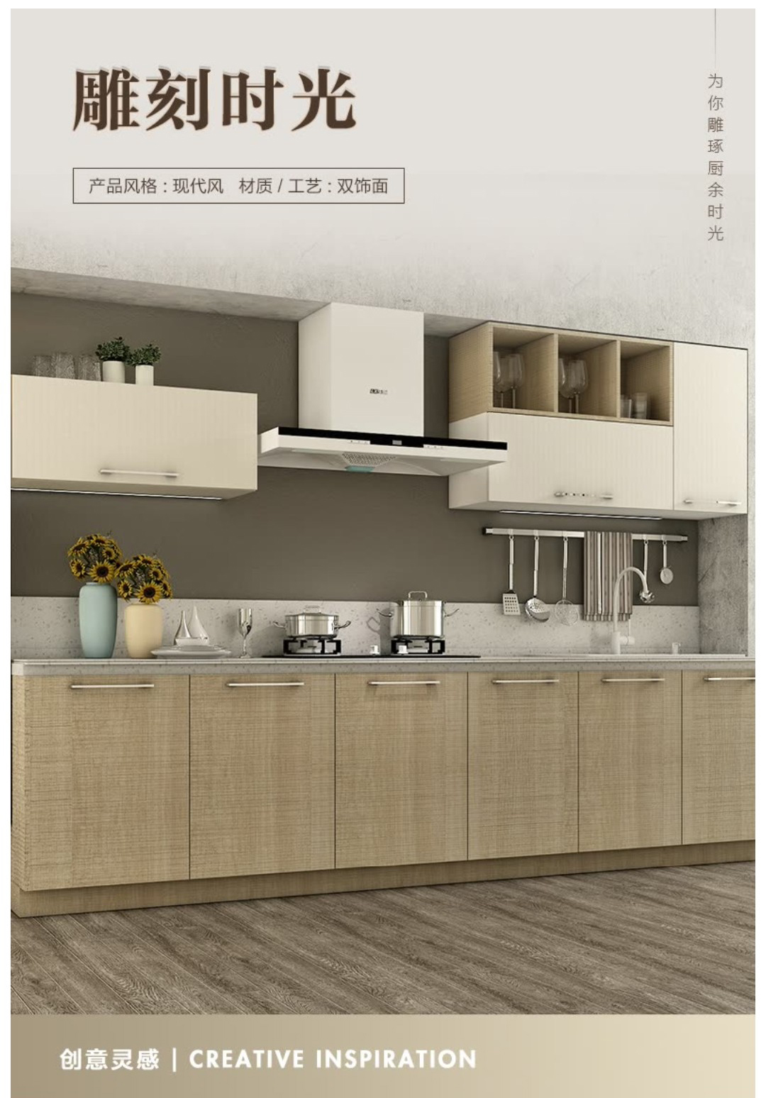 我乐橱柜定制 雕刻时光 现代简约田园 家用厨房厨柜定制套装 3米套餐