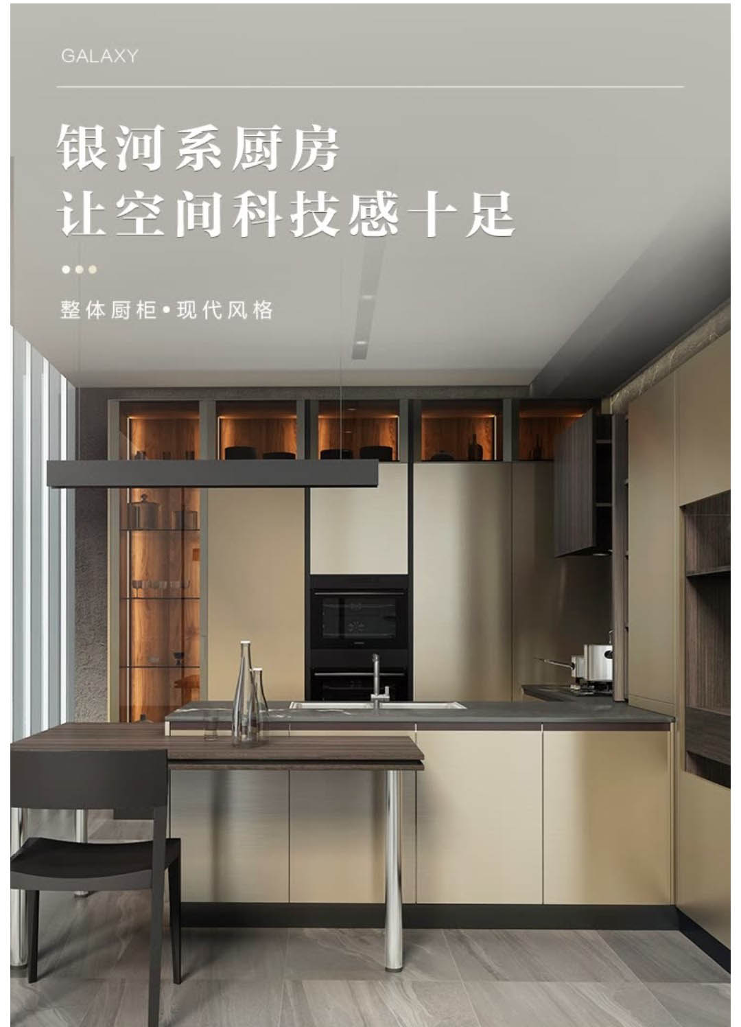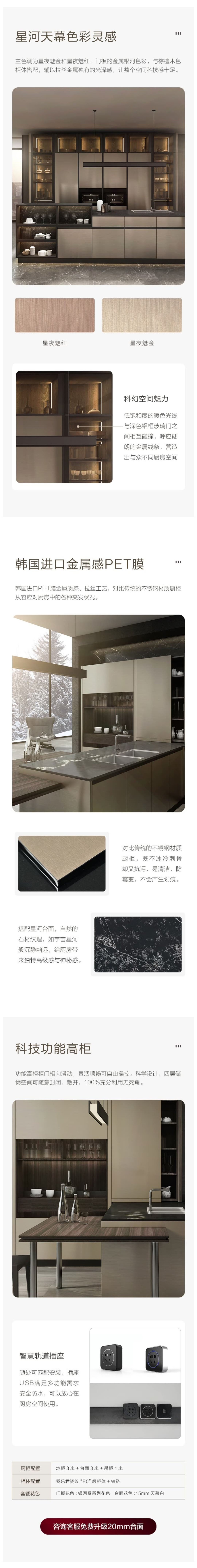 我乐橱柜定制 银河系 科技未来风现代极简厨房厨柜定制套餐 3米厨柜+3米台面+1米吊柜
