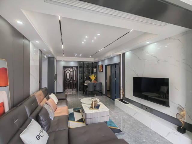 水晶郦城24楼住房出售,面积85平米,三室两厅,精装带家具家电,金牛管质保50年,价格56万